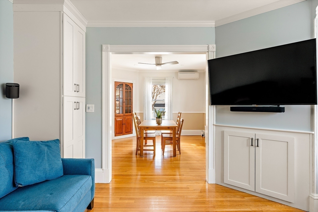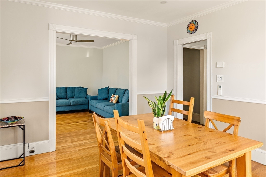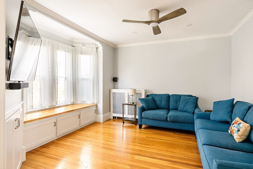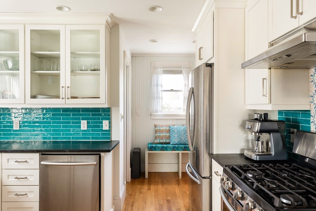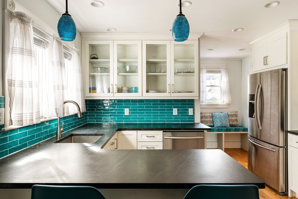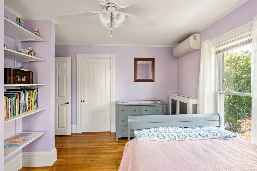 Enjoy suburban comfort & city convenience in 4 bed, 2 bath updated Colonial under a mile from bustling Malden Ctr w/ MBTA Orange line station, bus routes, vibrant dining & shopping! Beautiful hardwd floors, high ceilings, energy saving mini-splits A/C-heat & solar panels. Bright & airy kitchen w/ glass front white cabinetry, stone countertop, peninsula bar seating & gas range w/ exterior vent. Organized walk-in pantry leads to convenient laundry room. Full bath off mud-room. Dining room w/ elegant hutch has open floor plan to living room w/ cozy built-in storage window bench. Enclosed porch bonus space, perfect for office or sitting area. 2nd flr w/ 3 bedrms & full bath. Delightful knotty pine staircase leads up to 3rd flr w/ views of Boston skyline adding 4th bedrm & family room w/ stylish accent walls & built-in shelves. Fenced yard w/ Trex deck, shed, plantings & birdlife is ideal spot for relaxing. Off street parking driveway. Make this well-loved home yours!