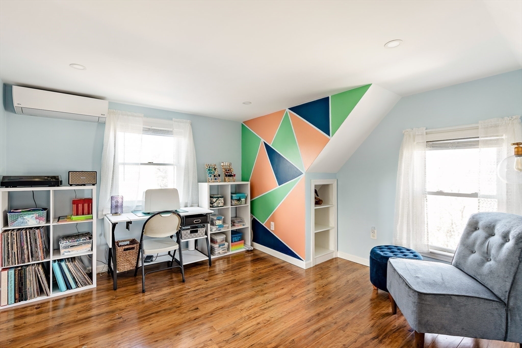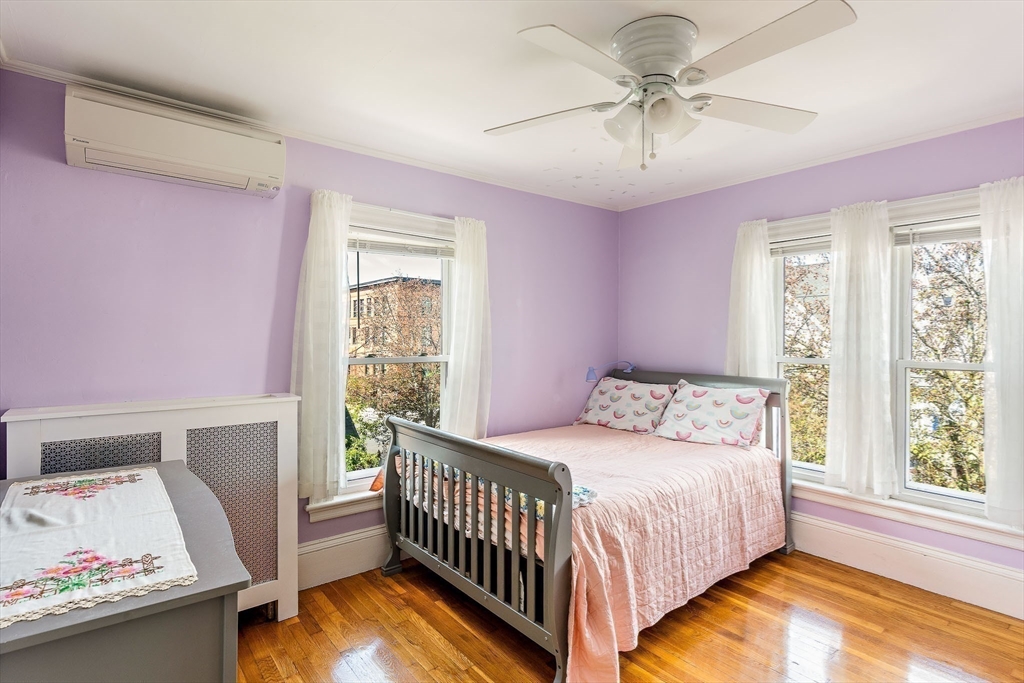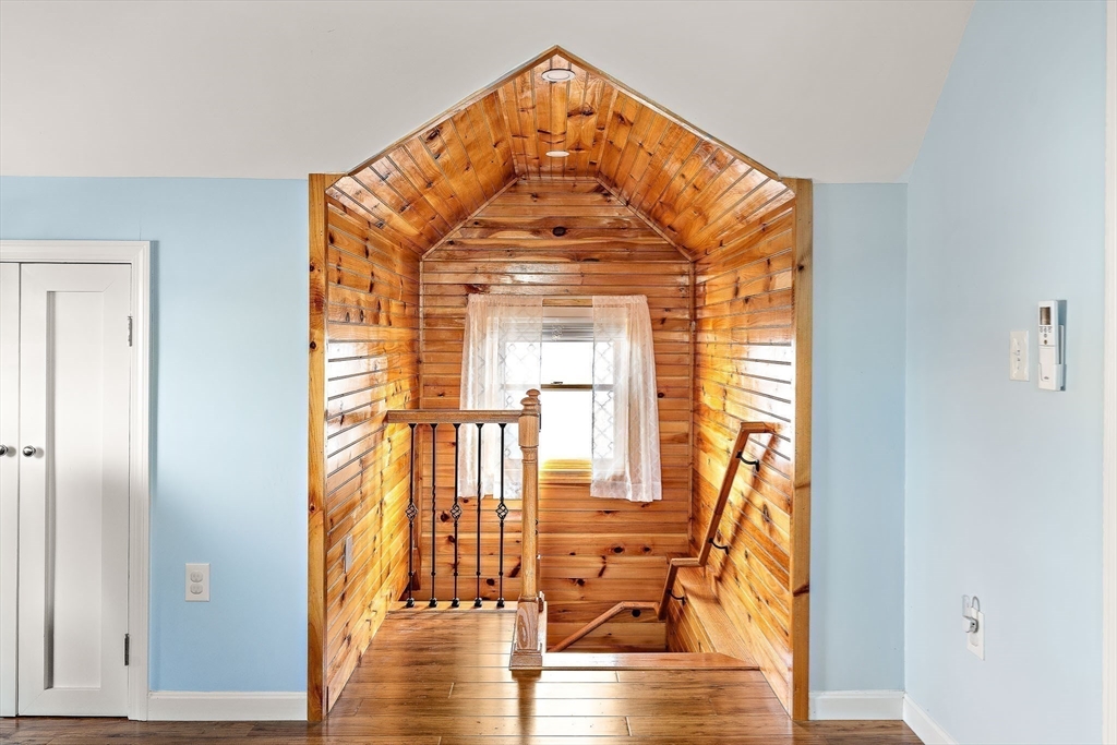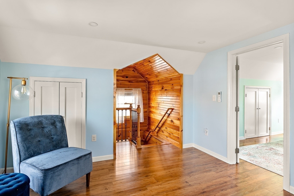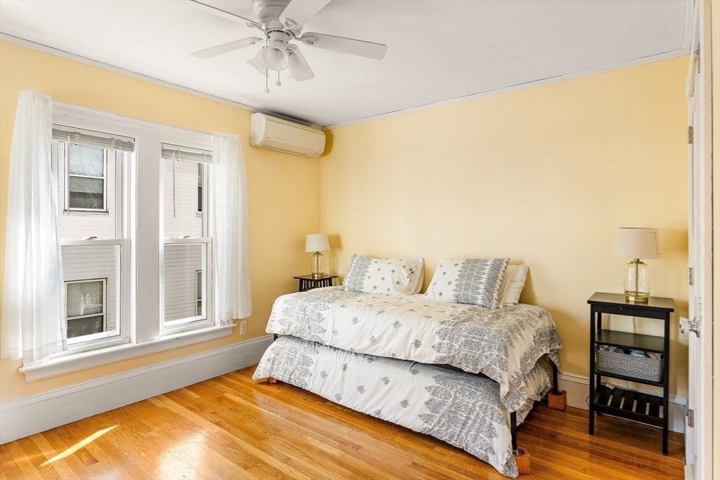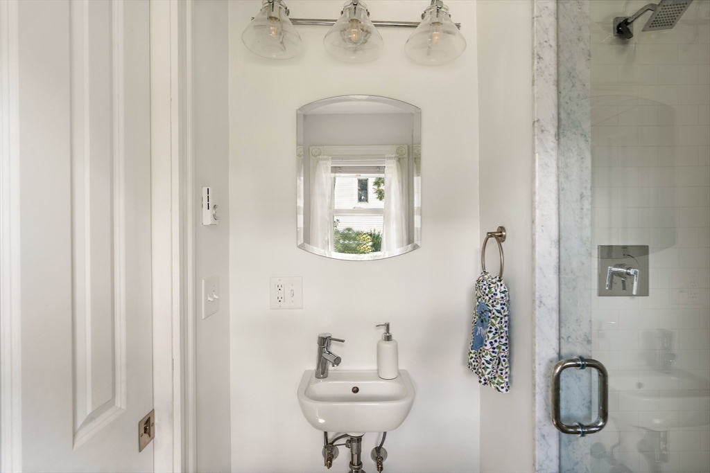 Enjoy suburban comfort & city convenience in 4 bed, 2 bath updated Colonial under a mile from bustling Malden Ctr w/ MBTA Orange line station, bus routes, vibrant dining & shopping! Beautiful hardwd floors, high ceilings, energy saving mini-splits A/C-heat & solar panels. Bright & airy kitchen w/ glass front white cabinetry, stone countertop, peninsula bar seating & gas range w/ exterior vent. Organized walk-in pantry leads to convenient laundry room. Full bath off mud-room. Dining room w/ elegant hutch has open floor plan to living room w/ cozy built-in storage window bench. Enclosed porch bonus space, perfect for office or sitting area. 2nd flr w/ 3 bedrms & full bath. Delightful knotty pine staircase leads up to 3rd flr w/ views of Boston skyline adding 4th bedrm & family room w/ stylish accent walls & built-in shelves. Fenced yard w/ Trex deck, shed, plantings & birdlife is ideal spot for relaxing. Off street parking driveway. Make this well-loved home yours!