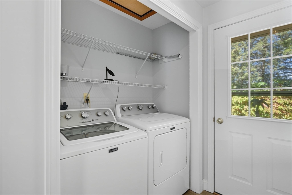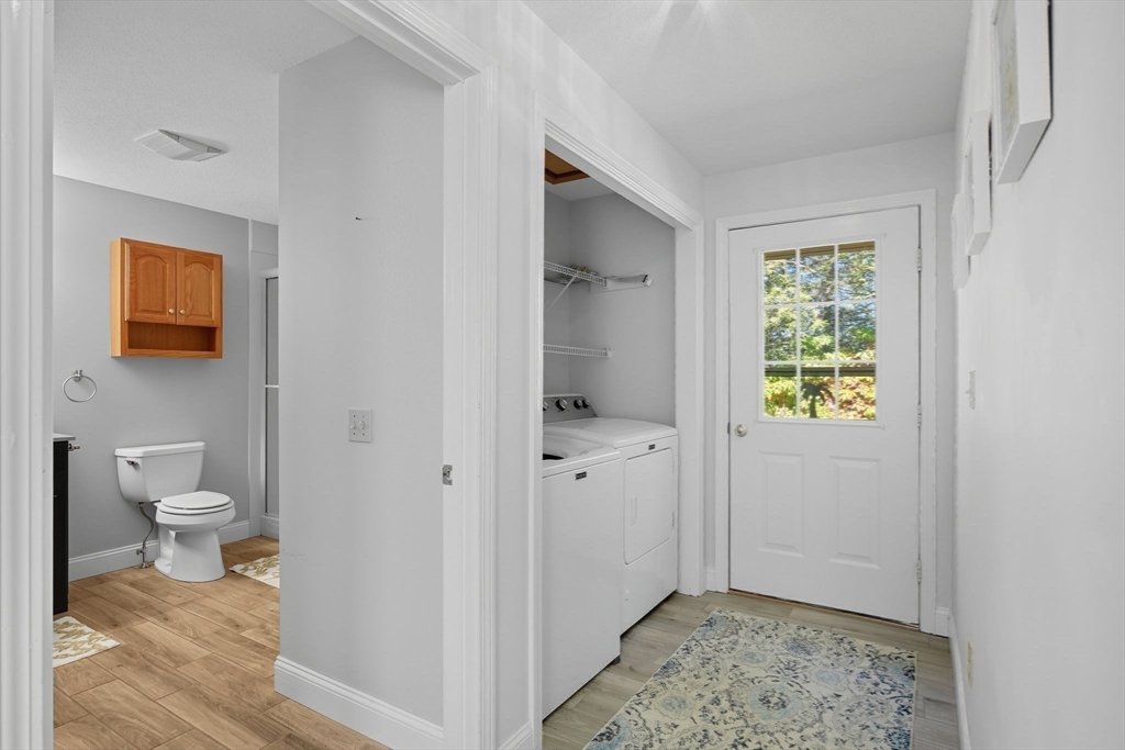 ROSEWOOD ESTATES! Indulge in a new standard of effortless living owning this MOVE-IN READY GARDEN UNIT in a desirable 55+ CONDO COMMUNITY! Enjoy a sun-filled LIVING ROOM with SOARING VAULTED CEILING with ceiling/fan lighting and gleaming HARDWOOD FLOORS, seamlessly flowing into an OPEN-CONCEPT KITCHEN with APPLIANCES and a pantry for added storage. The ceramic-tiled entryway includes a coat closet for convenience. A spacious FULL BATHROOM features a WALK-IN SHOWER, linen closet and CERAMIC FLOORING. FIRST-FLOOR LAUNDRY includes full-size washer & dryer to remain. The full basement offers endless possibilities—ideal for storage, hobbies, or additional living space. Updates include a new HOT WATER TANK (2022), furnace (2011), and A/C unit (2017). Enjoy community amenities like a clubhouse, and benefit from a prime location close to everything. THIS WON'T LAST LONG!