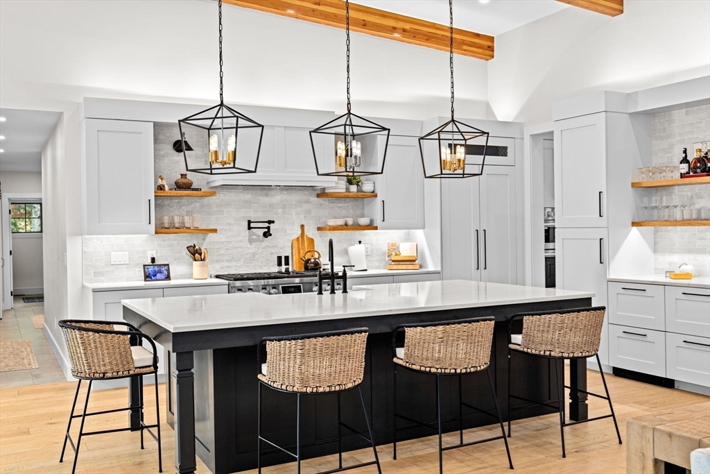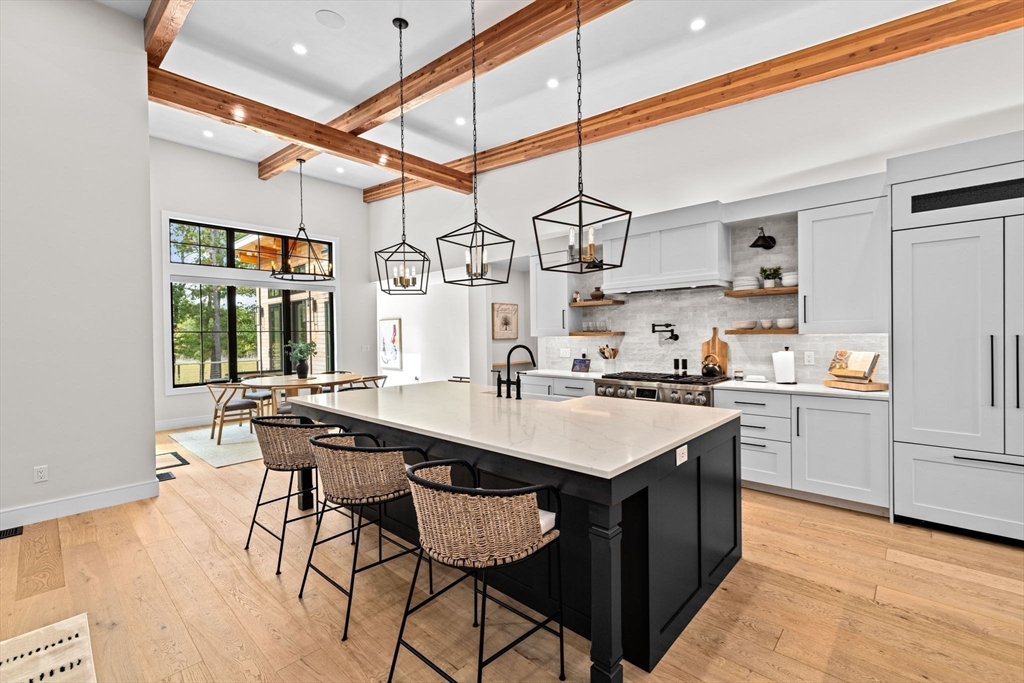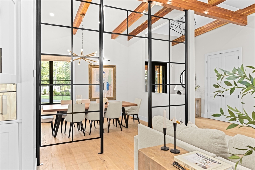 Step into timeless elegance reimagined through modern Scandinavian design. Nestled on two private acres with sweeping views of a cranberry bog, this newly built residence by TM Zell Development Design/Build combines natural beauty with masterful craftsmanship. Designed by a talented architect, the home features soaring ceilings with exposed beams, wide-plank oak flooring, and a sun-filled open layout with floor-to-ceiling windows. A chef’s kitchen with premium appliances and custom cabinetry anchors the main living space, while spa-inspired baths, a private gym, and flexible living areas offer comfort and sophistication. Outdoors, a spacious back deck provides the perfect backdrop for entertaining or simply soaking in the tranquility. From morning coffee to evening sunsets, this Scandinavian Farmhouse defines luxury living in harmony with nature.