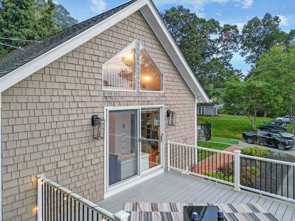 Discover unparalleled tranquility at your breathtaking, lakefront retreat. Custom-built and meticulously maintained. This 3 bedroom, 2 bath home offers the perfect blend of modern elegance, relaxation, natural beauty and fun! Featuring hardwood floors, a completely reimagined kitchen with quartz countertops, stainless steel appliances, and updated lighting throughout. The expansive wall of windows perfectly frames the panoramic views of South Watuppa Pond. Custom built cabinets in the living room, create the perfect backdrop for entertaining! The serene primary suite boasts soaring vaulted ceilings, a scenic loft, and a private balcony with peaceful water views. The massive composite decks will extend your living space outside, offering amazing water views and first-class sunsets. The finished, walkout lower level, and beautifully landscaped lot are perfect for entertaining. This is more than a home; it's a year-round vacation. Don't miss this rare opportunity for exclusive lake living