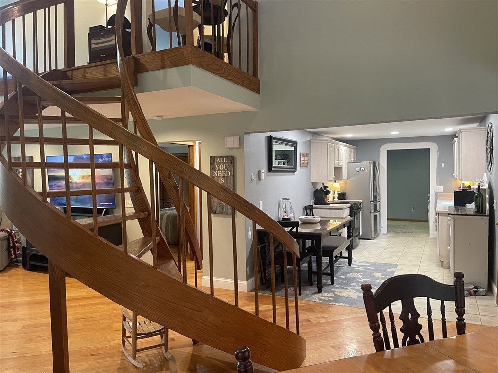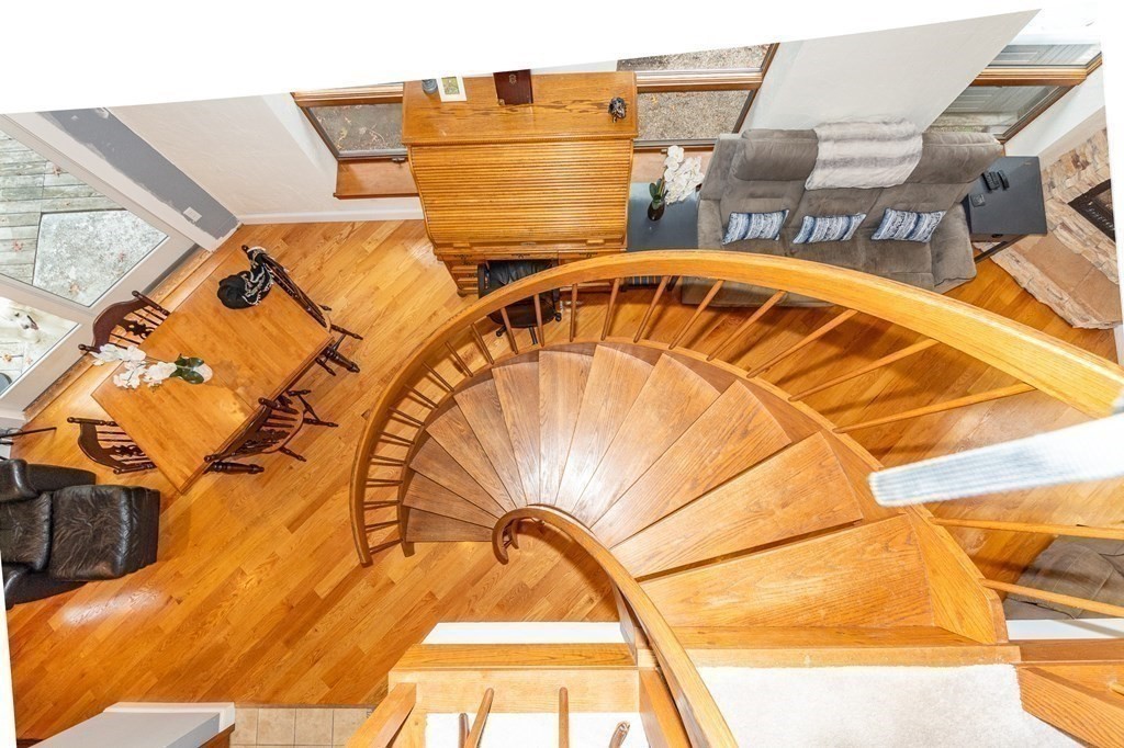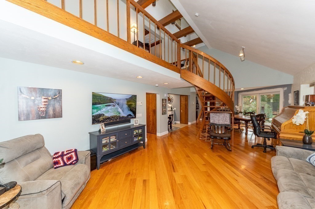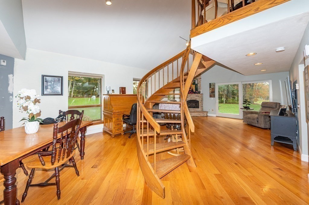 Introducing a breathtaking gem at 6 Leonard St-a harmonious blend of residential & commercial charm, nestled right on a golf course. First Floor Master. This splendid 3 bedroom, 2 full bath residence boasts elegance at every turn. Step inside & be greeted by the heart of this home, where modern design meets timeless allure. Ascend the exquisite spiral stairs that serve as both an architectural marvel & functional masterpiece. As you ascend, the spiraling glass balustrade provides a striking visual connection between levels, allowing natural light . The living area is a canvas of sophistication, with a view that stretches out onto the golf course. Imagine entertaining guests in this luminous space. The master bedroom suite offers private access to a balcony overlooking the lush fairways. For the creative soul or hobbyist, separate wood stove heated workshop is a haven of possibilities in a commercial zone.