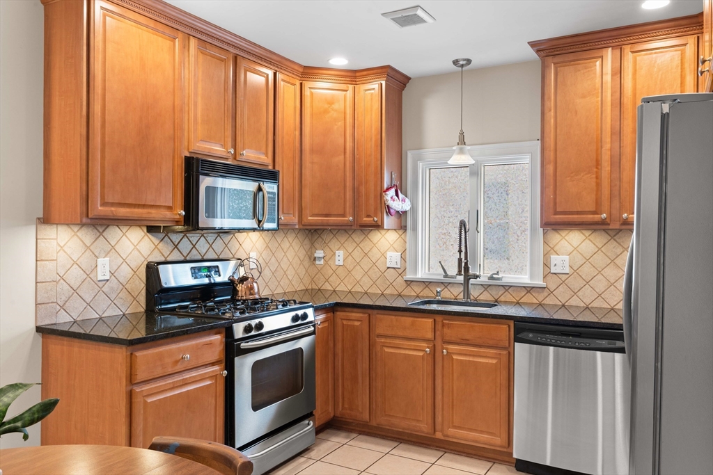 Welcome Home! Bright, Beautiful & Move-In Ready Condo with Ideal Location!! Step into this bright and sunny condo that perfectly blends comfort, style, and convenience. From the moment you enter, you’ll notice the warmth of the gleaming hardwood floors and the thoughtful touches throughout. The spacious bedrooms offer plenty of room to relax and unwind, while the living area is perfect for entertaining.The chef's kitchen is a true standout, featuring maple cabinets, granite countertops, stainless steel appliances, and recessed lighting. Enjoy your morning coffee or evening breeze on your 2 balconies, or step outside to the large shared backyard, perfect for outdoor dining, gardening, or soaking up the sun. Additional features include: New roof (2024), in-unit washer and dryer hookups, 1 deeded off-street parking space, extra storage space in the basement, fantastic commuter location just minutes from public transportation, shopping, restaurants, and with easy highway access.