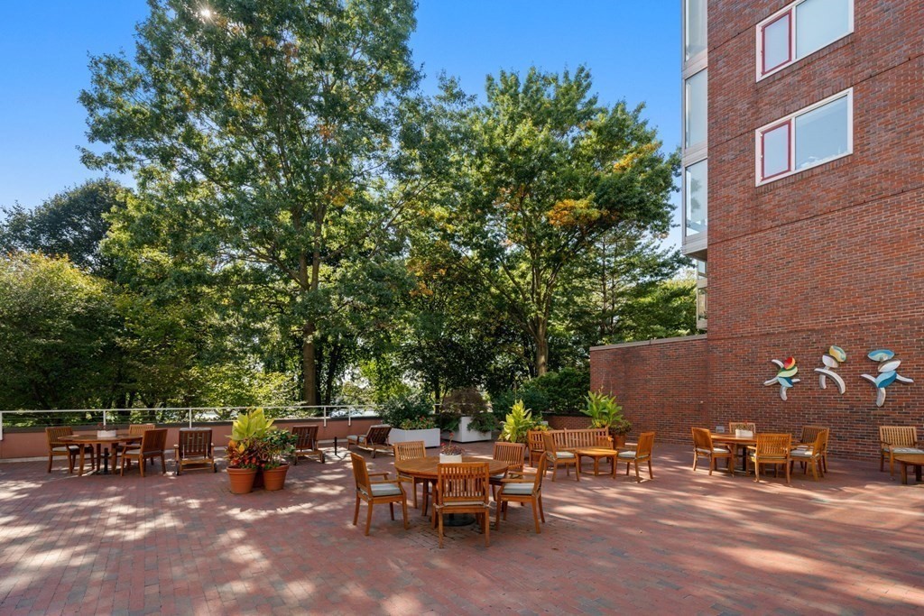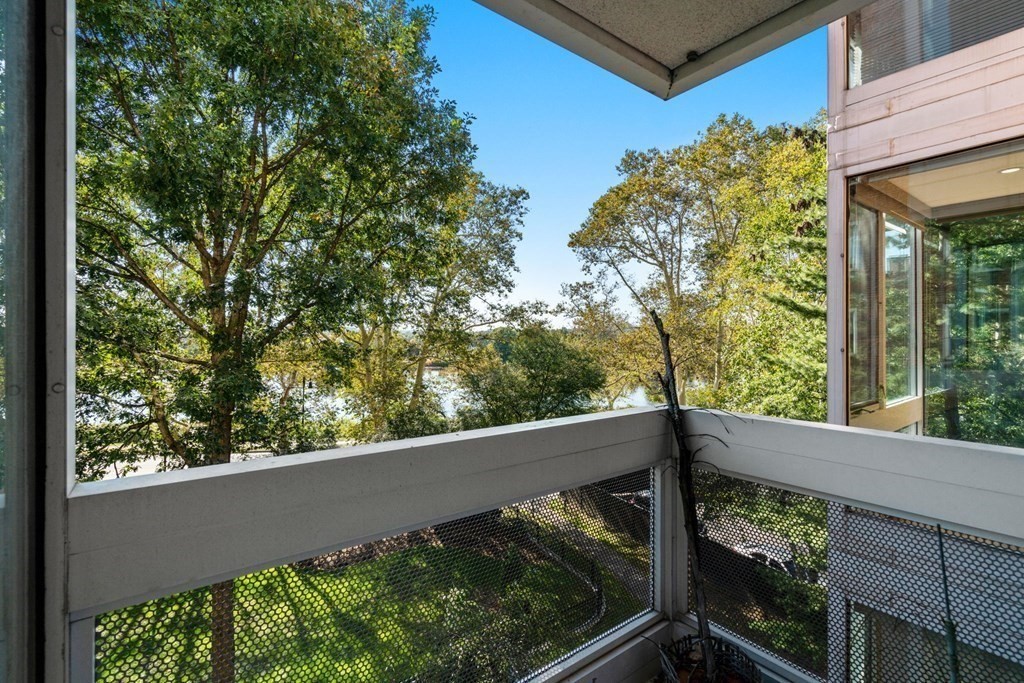 Beautifully renovated corner unit at the Charles residences with fabulous views of the river, JFK Park, monastery and Harvard athletics complex. Wonderful open floor plan with private balcony off the living room. Lovely hardwood floors in living, dining and hallways. Dimmed track lighting throughout. Renovated eat-in kitchen opened to the living room and view. Two large bedrooms, and two newly renovated full bathrooms. The primary en-suite bathroom has a gorgeous renovated ADA compliant bathroom. In-unit laundry with new washer & dryer. Deeded garage parking space close to elevator. One of the most desirable buildings in Cambridge, in the heart of Harvard Square, close to restaurants, coffee shops, boutiques, theaters and the university. 24 hour concierge, elevator, and beautiful common areas indoors and outdoors.