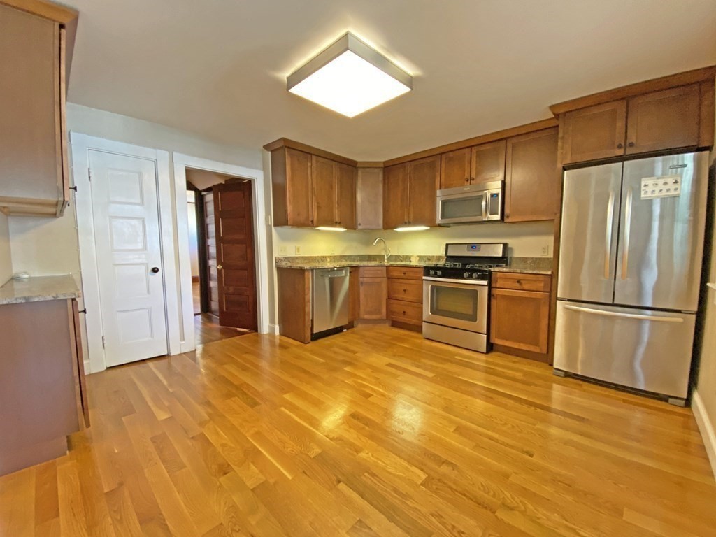 Available for 11/1/25. Sunny & warm single family Victorian in the heart of the Newton Highlands. Excellent 4+ BR, 2.5 bath featuring a sun-filled LR, formal DR w/ decorative FP & hardwood flooring throughout. Loads of detail, natural woodwork & charm of yesteryear. Spacious eat-in-kitchen w/ granite countertops & plenty of maple cabinets. Appliances include SS Fridge, range, dishwasher, disposal & microwave. Excellent 3 season porch off the kitchen overlooks a deep, fenced yard. Driveway parking for 3 cars. Central A/C & gas heating. Just a 5 minute walk to Green Line T stop & all the shops & restaurants of the Newton Highlands. Fall in love with one of the best neighborhoods in Newton!