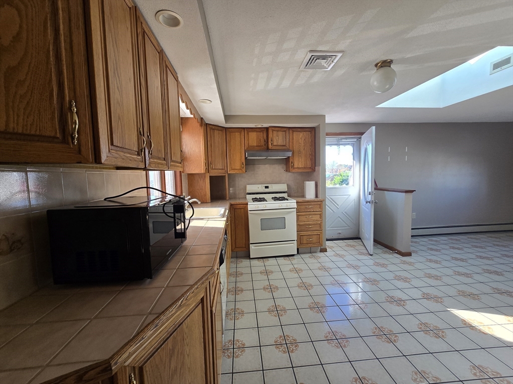 Move-in ready! 2nd-floor apartment with 3 spacious bedrooms, 1-1/2 generously sized bathrooms, living room with decorative fireplace, large dining area, spacious kitchen with plenty of cabinetry, in-unit washer and dryer, plenty of windows for natural light, and one parking space, in a very convenient location on Malden St in Revere. Close to Broadway and Northgate shopping. Eat in Kitchen, tile floors with hardwood in living rom and bedrooms.
