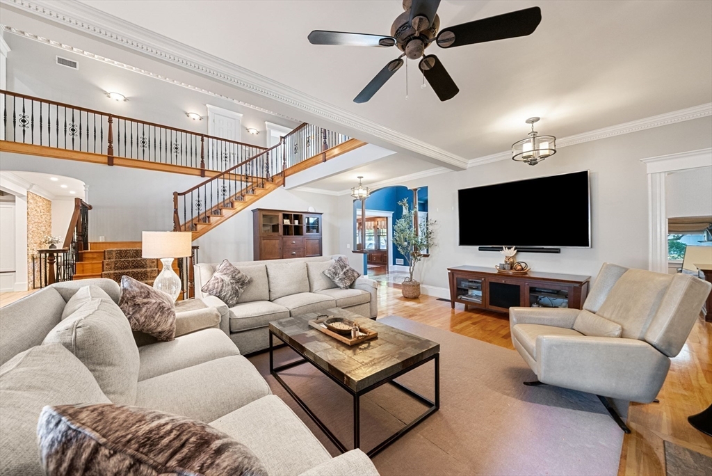 This extraordinary estate has been masterfully crafted with fastidious attention to detail! Three levels of bespoke living begin with a grand entryway illuminated by an opulent chandelier leading to soaring ceilings hosting a captivating hand drawn mural. A stunning recently renovated Chef's kitchen offers quartz countertops & island, Wolf double ovens & range, a Sub-Zero & Miele coffee bar. Two separate dining areas include a formal dining room that seats 14 & a cozy custom banquette area. Two additional fireplaced living spaces offer an elegant living room and a large Great room filled with light & charm. Upstairs hosts 4 bedrooms including the large Primary suite complete with gas fireplace, balcony & large bath with shower & spa tub. The backyard is a private oasis offering an outdoor kitchen, fire pit & pool with fountain & slide. A large lofted bonus space above the 2 car garage is a perfect Au Pair suite. A finished basement and meticulous curb appeal complete this treasure.