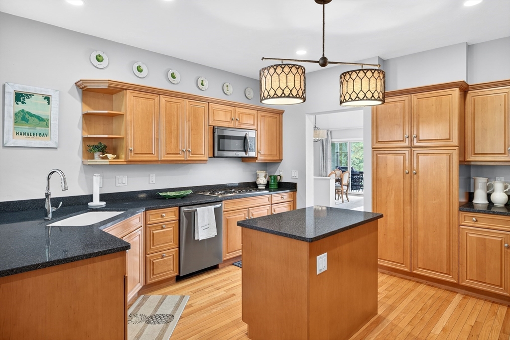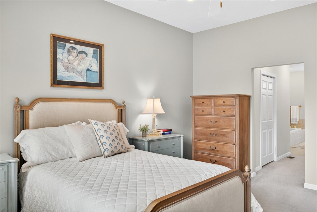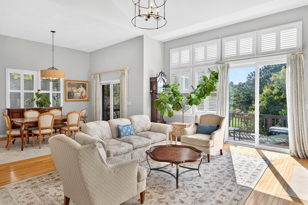 This lovely "B" style home in the Winslowe's View neighborhood at The Pinehills offers a private and peaceful environment and is a perfect blend of comfort and luxury in a serene setting, ideal for those seeking both convenience and nature. The layout of the home is spacious and inviting, with hardwood flooring throughout the living, dining, kitchen, and family rooms, which likely adds to the warm, welcoming ambiance .The cathedral ceilings, gas fireplace, and large deck with wooded views make the living areas feel expansive, while the custom kitchen, with stainless appliances and granite counters, is a chef’s dream. The updates in 2024, including new siding, windows, and sliders, make this home feel fresh and modern. Plus, the community amenities like the pools, tennis/pickleball courts, clubhouse, and more add to the lifestyle at this amazing community.