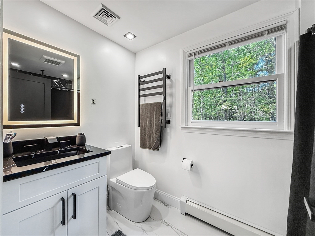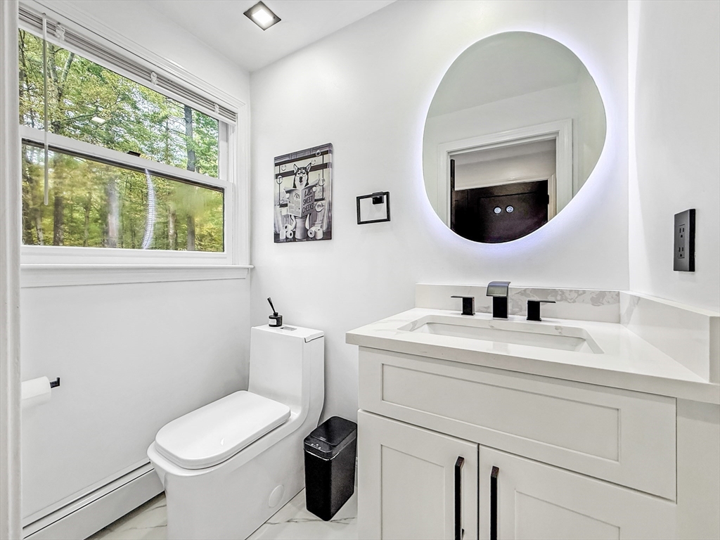 Welcome to 78 Walker Rd—an exquisitely renovated Colonial delivering modern, turn-key living on 1.95± acres. The open main level wows with a stunning kitchen featuring quartz countertops, sleek cabinetry, stainless appliances, and a built-in 4-speaker system with wall amplifier. Sunlit living and dining spaces flow seamlessly with luxury hardwoods, recessed lighting, and a convenient laundry room. Upstairs, the serene primary suite offers a walk-in closet and private bath, plus two generous bedrooms and a stylish full bath. Energy-efficient construction, central air, a two-car garage, and a full basement ready for future finish check every box. Enjoy room to play and entertain, close to parks, local amenities, and quick access to Route 2. Just move in and love it.