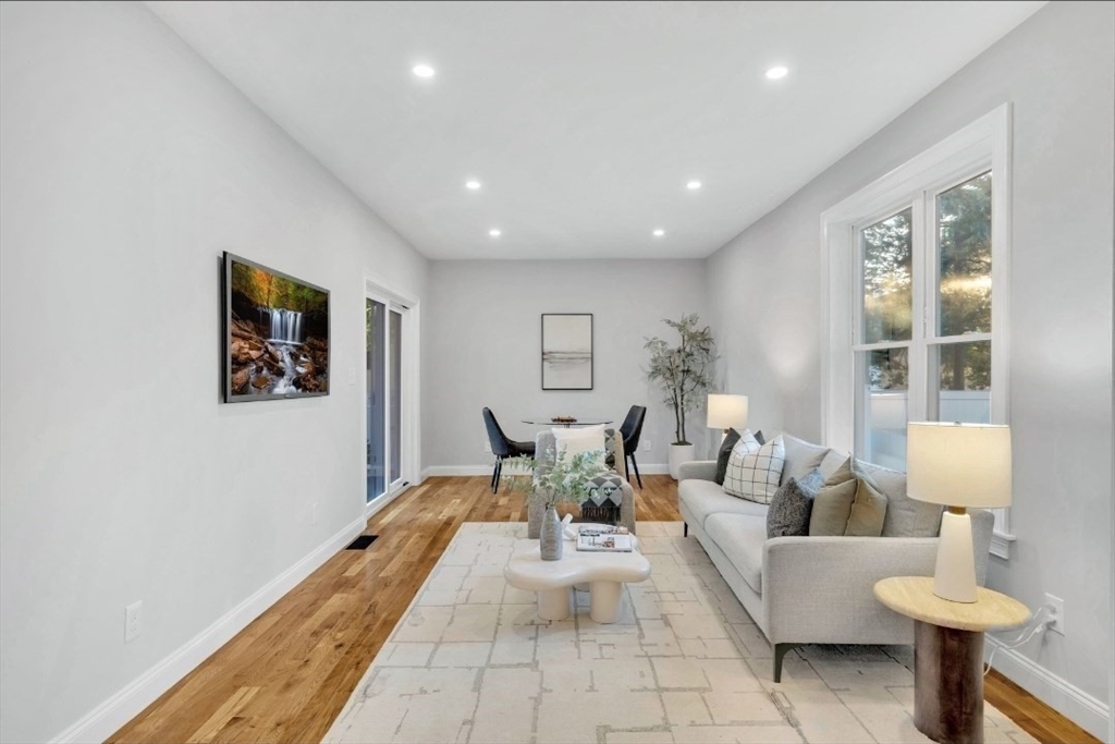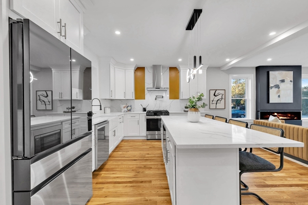 Looking for NEW CONSTRUCTION in a true neighborhood setting? Look no further and welcome to your dream home! Designed with the modern family in mind, this 2025 to the studs renovation & 2nd story addition, in highly desirable Greenlodge neighborhood, is a rare find! High ceilings and an open floor plan greet you to the main level. A dedicated mudroom makes for a seamless transition into the living room w/ fireplace and to the entertainer's delight a chef's kitchen equipped with large island, SS appliances, pot filler, sleek quartz countertops and backsplash! 1st floor bedroom & full bath are perfect for guests! Dedicated office and main level family room with sliders to a large deck, perfect for unwinding and entertaining family & friends! Primary bedroom features double walk in closets and a spa like bath with soaking tub, shower & double vanity! One car garage, EV charger ready, minutes to Legacy Place, University Station and less than 5 miles to Blue Hills!