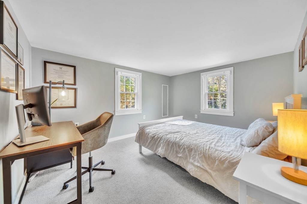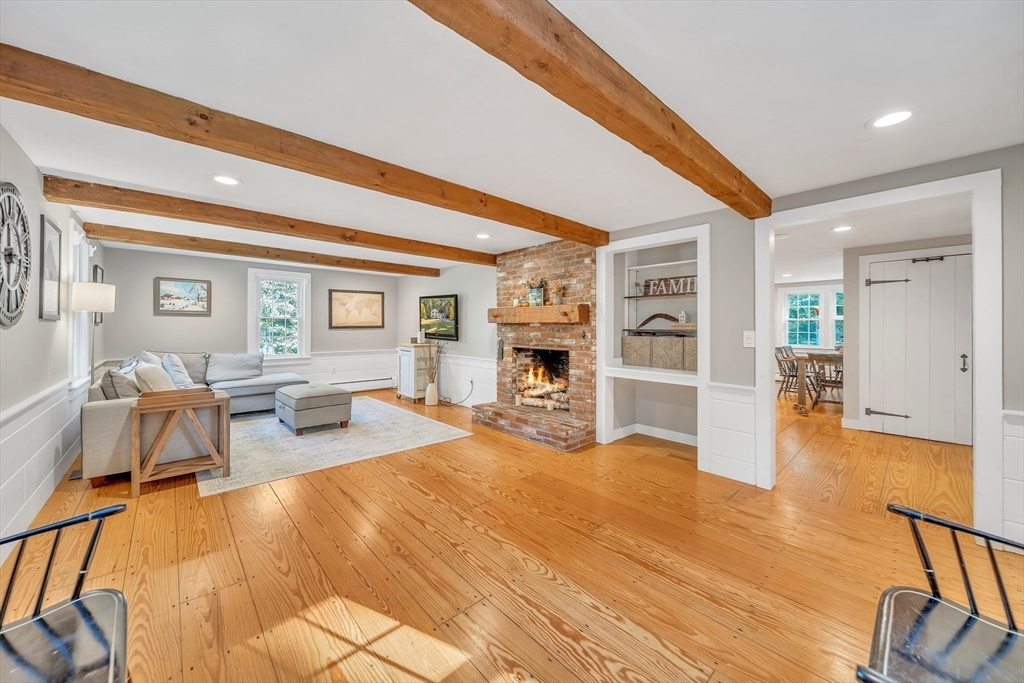 Nestled on a scenic lot surrounded by nature, this beautifully maintained Colonial offers an open-concept layout filled with natural light. Enjoy spacious living and dining areas, a gourmet kitchen with white cabinetry, quartz counters, stainless appliances, and a cozy breakfast nook. The family room features a fireplace and exposed beams, while a screened porch overlooks the peaceful backyard. A versatile main-level room serves as a home office or playroom. Upstairs you'll find 4 bedrooms, including a spacious primary suite with walk-in closet. Located near top-rated schools, conservation trails, orchards, and commuter routes, this home combines the charm of country living with everyday convenience.