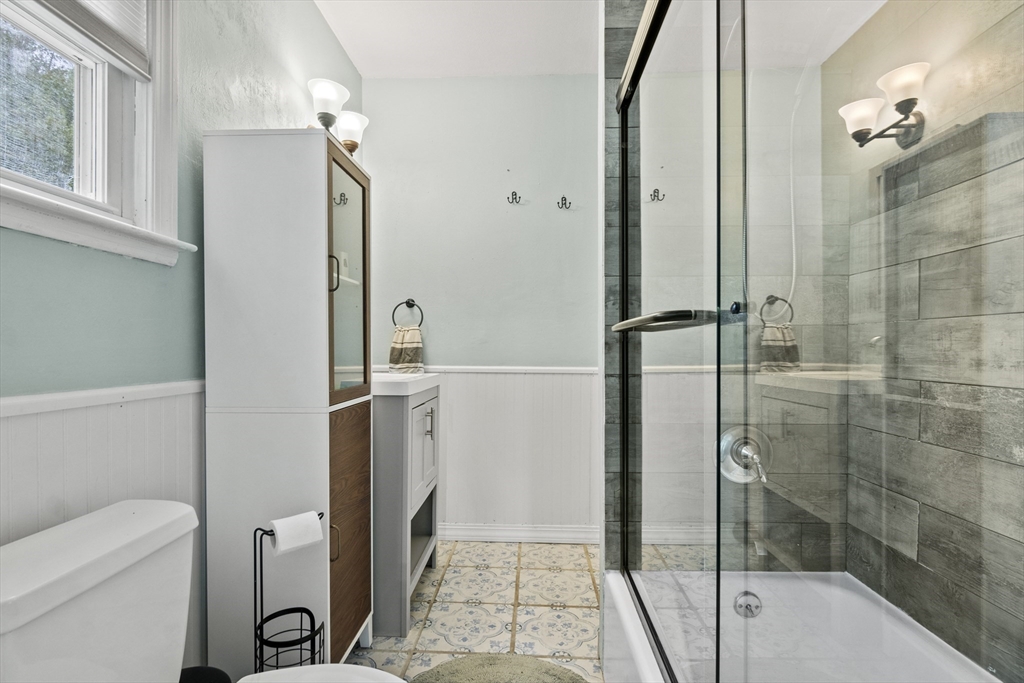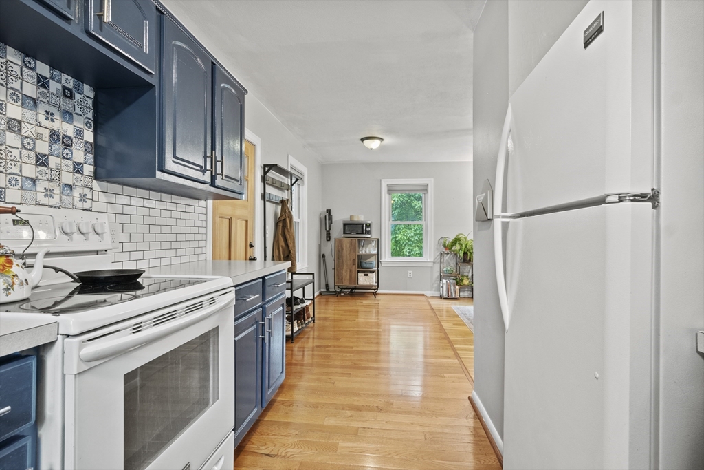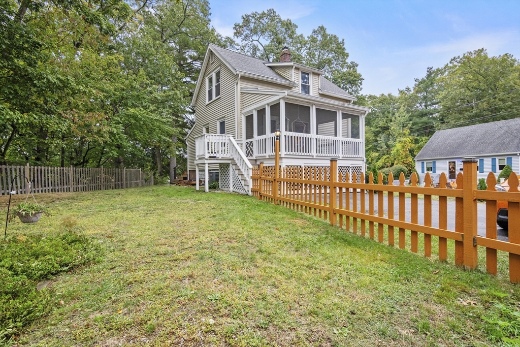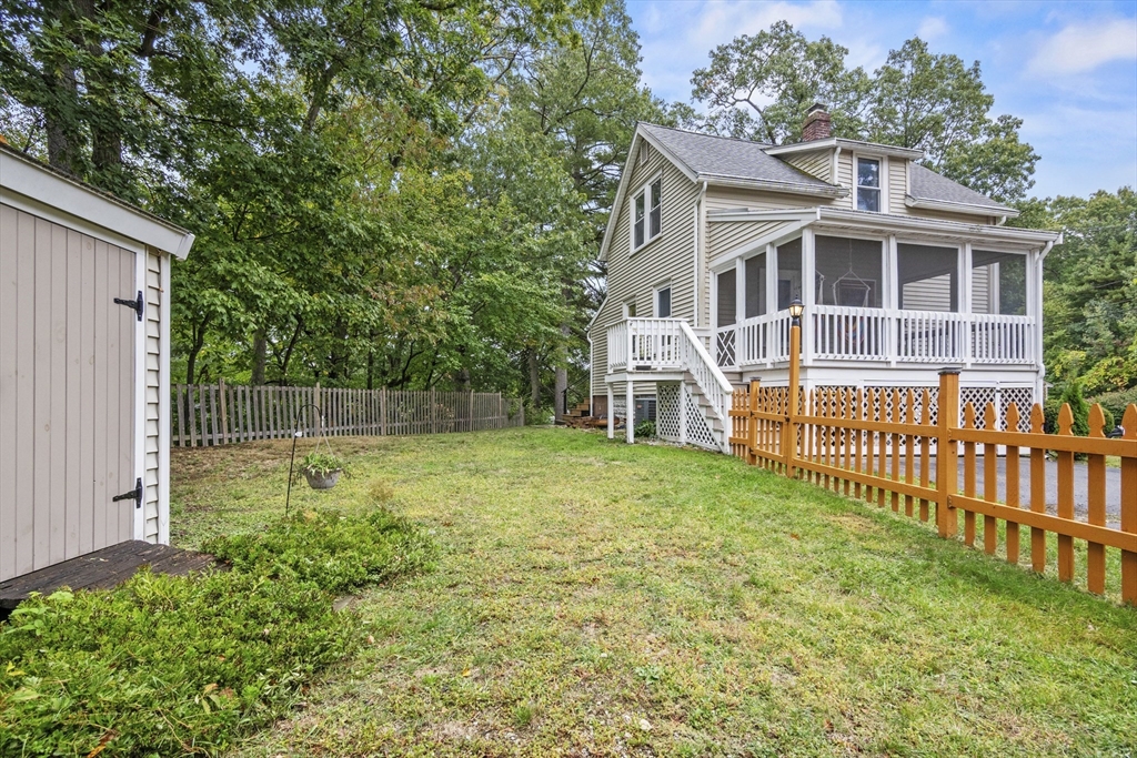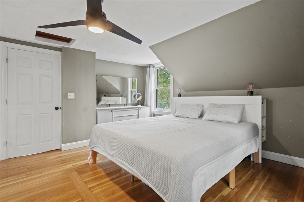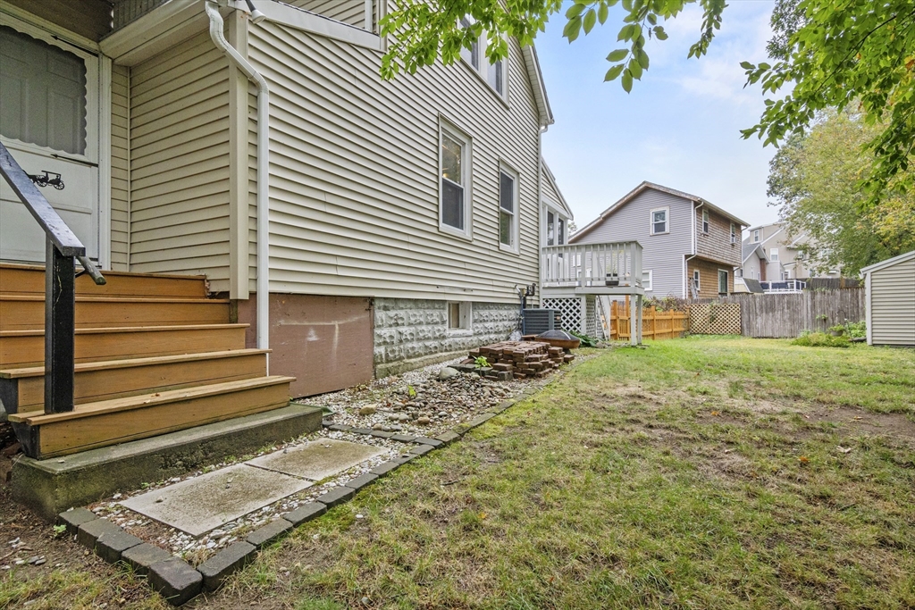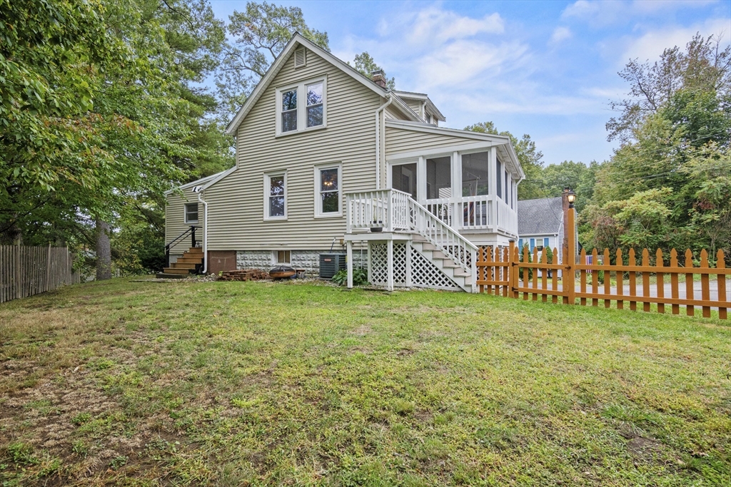 Charming Colonial in a quiet dead-end street setting with pond views. This 2-bedroom, 2-bath home offers over 1,300 sq ft of living space featuring hardwood floors throughout. The spacious living room is filled with natural light, accented by skylights, recessed lighting, and exterior access. An open dining area flows into the kitchen, perfect for entertaining. Upstairs, the oversized main bedroom includes custom built-ins, while the second bedroom provides comfort and versatility. A finished bath with shower is located in the walk-out basement, along with laundry hookups and plenty of storage potential. Enjoy relaxing on the screened porch, take in the fenced yard, or utilize the storage shed for convenience. With central air, off-street parking, and easy access to shopping, schools, transportation, and major routes, this home combines comfort, character, and convenience. No Showings Until the Open House!