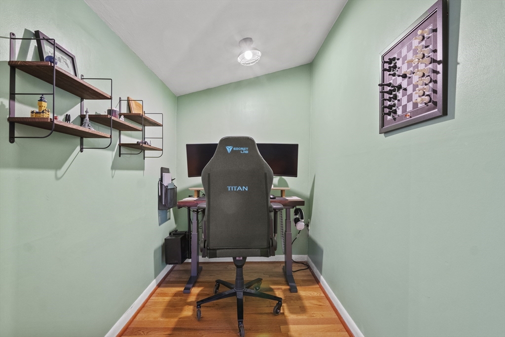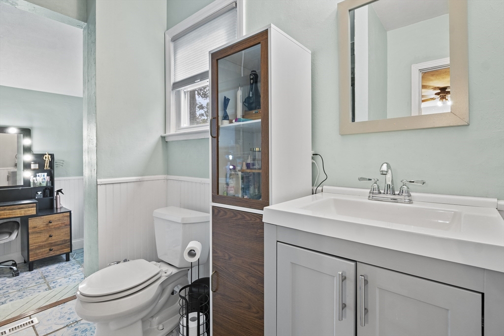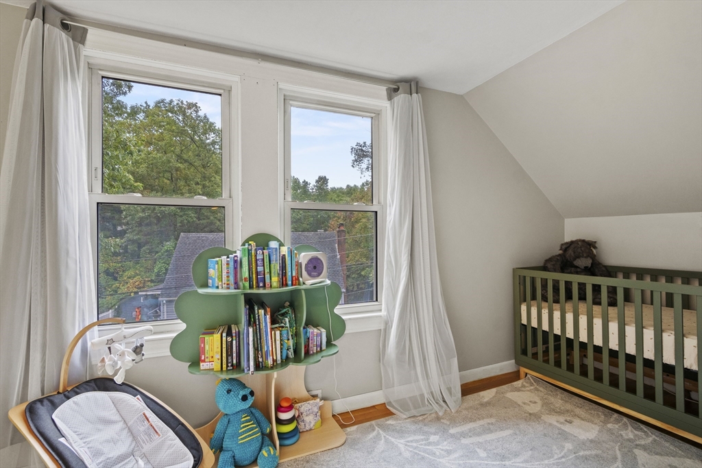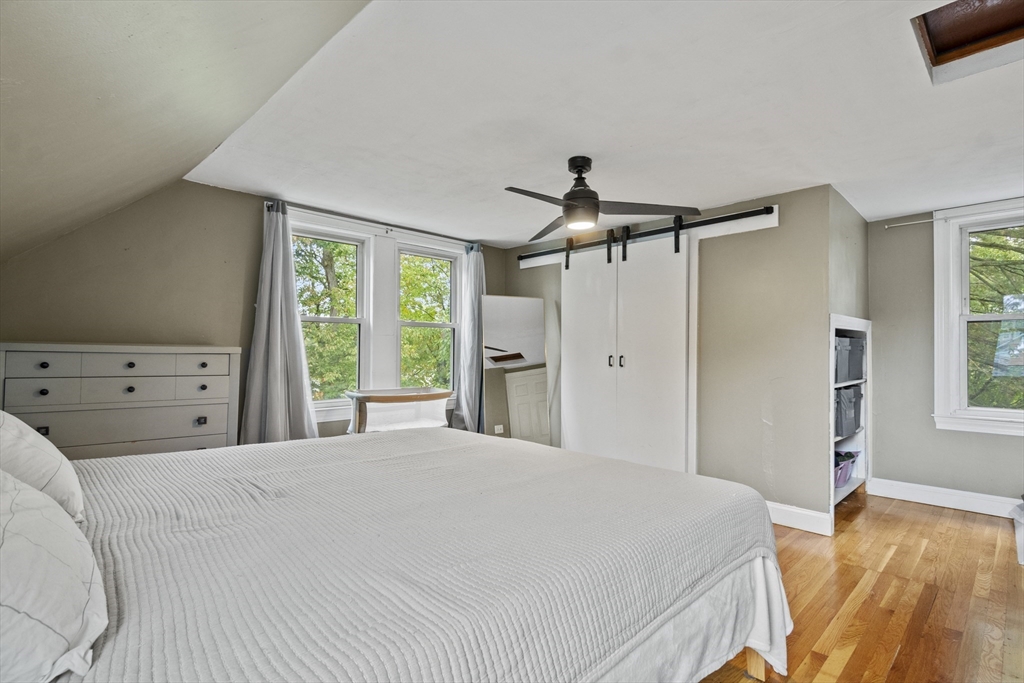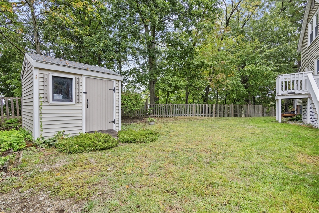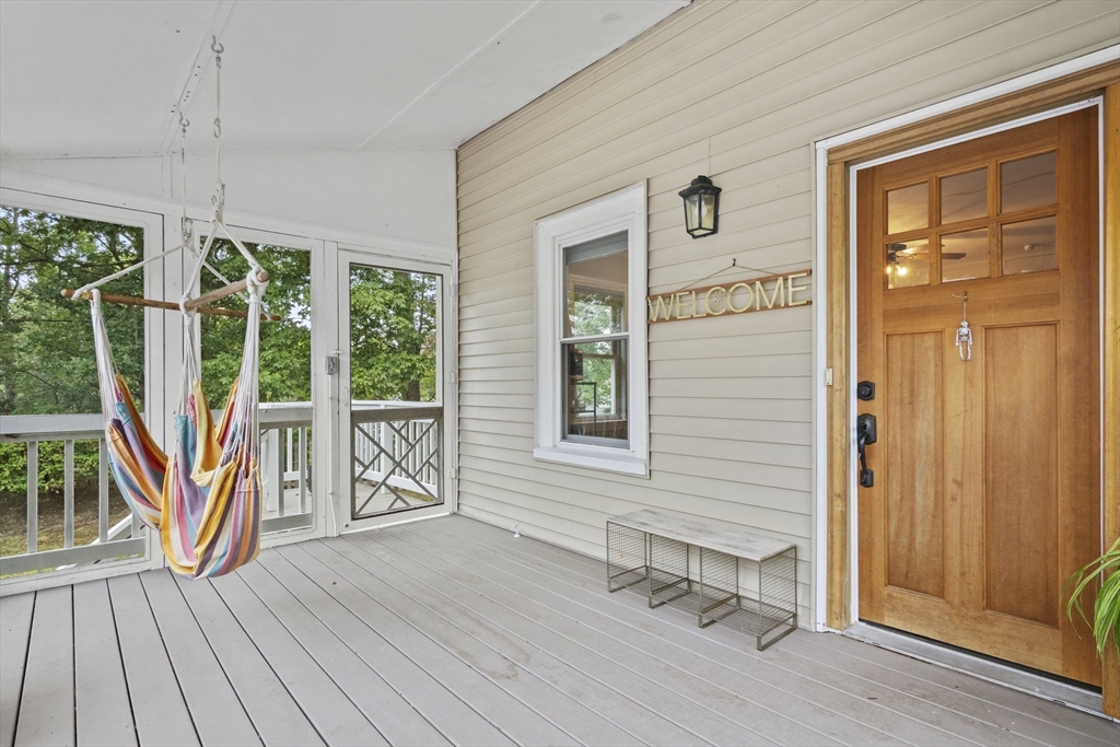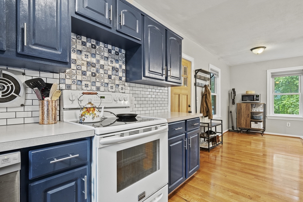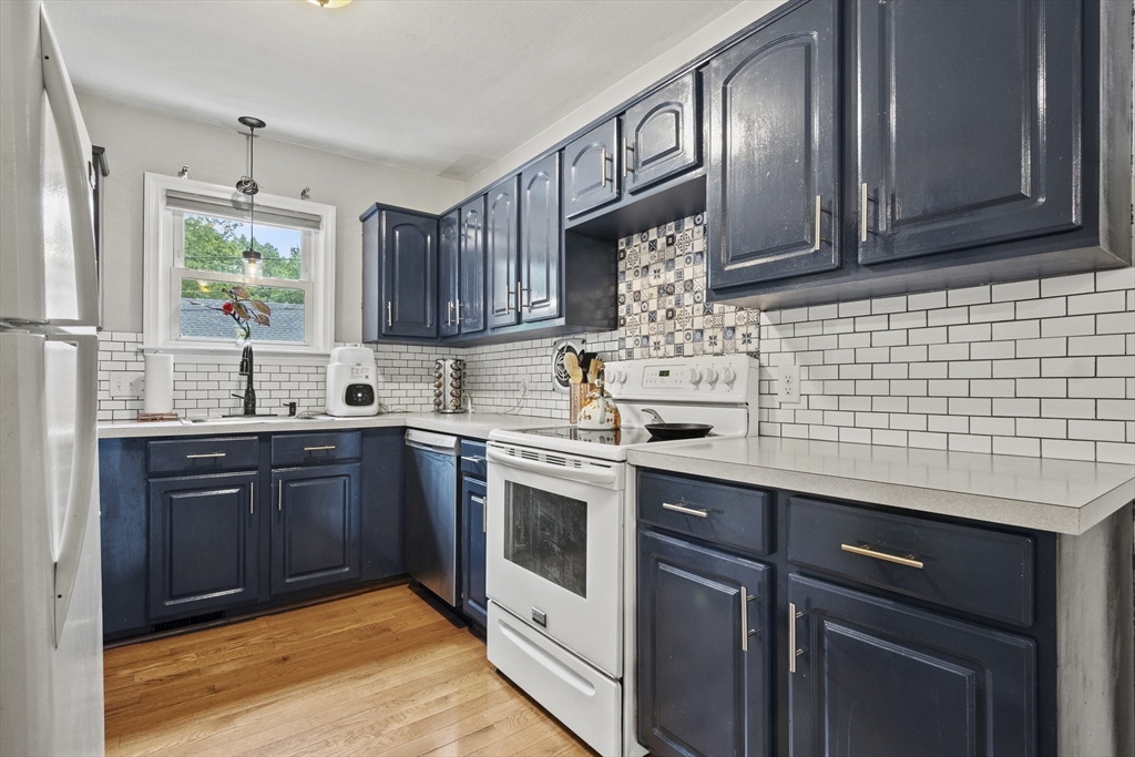 Charming Colonial in a quiet dead-end street setting with pond views. This 2-bedroom, 2-bath home offers over 1,300 sq ft of living space featuring hardwood floors throughout. The spacious living room is filled with natural light, accented by skylights, recessed lighting, and exterior access. An open dining area flows into the kitchen, perfect for entertaining. Upstairs, the oversized main bedroom includes custom built-ins, while the second bedroom provides comfort and versatility. A finished bath with shower is located in the walk-out basement, along with laundry hookups and plenty of storage potential. Enjoy relaxing on the screened porch, take in the fenced yard, or utilize the storage shed for convenience. With central air, off-street parking, and easy access to shopping, schools, transportation, and major routes, this home combines comfort, character, and convenience. No Showings Until the Open House!