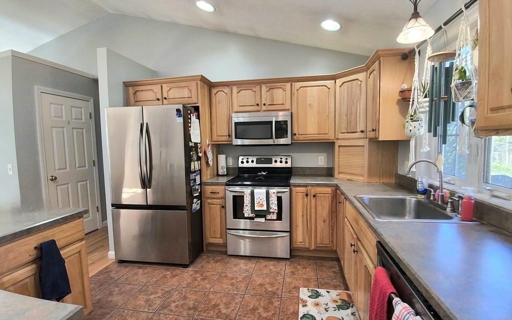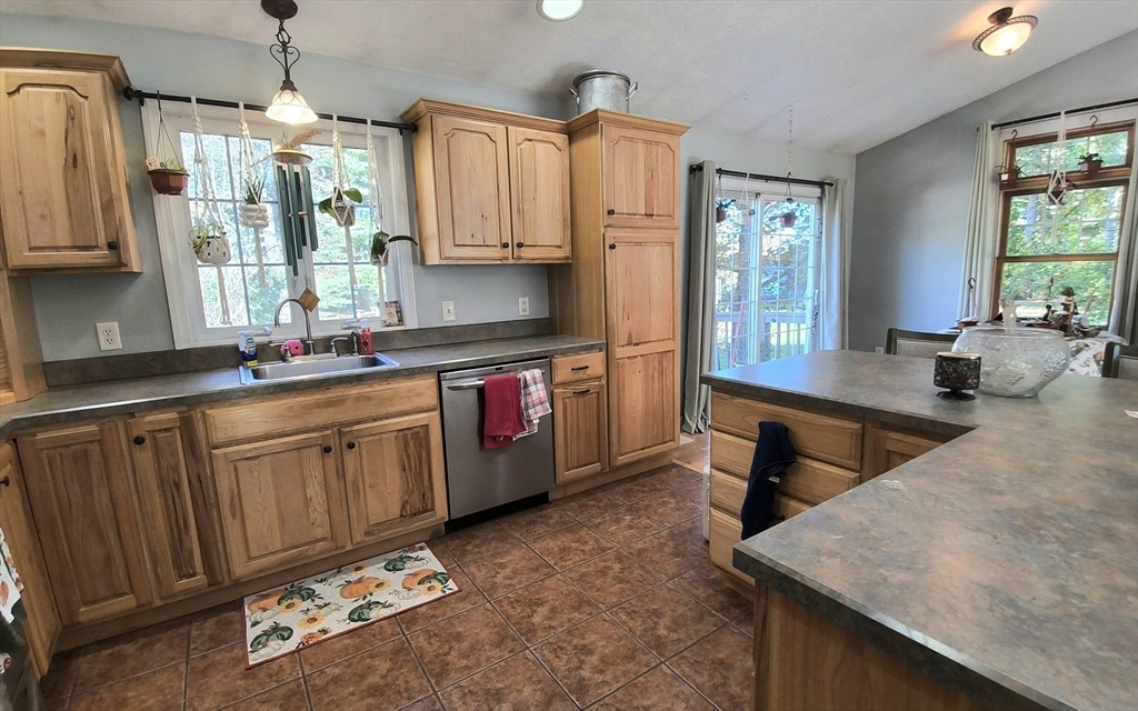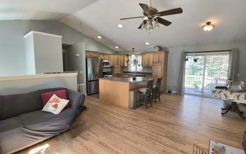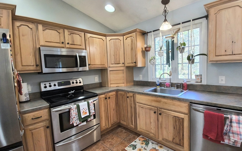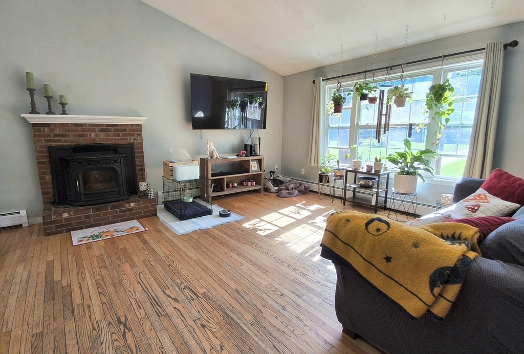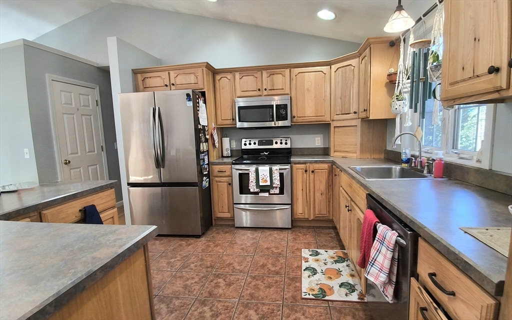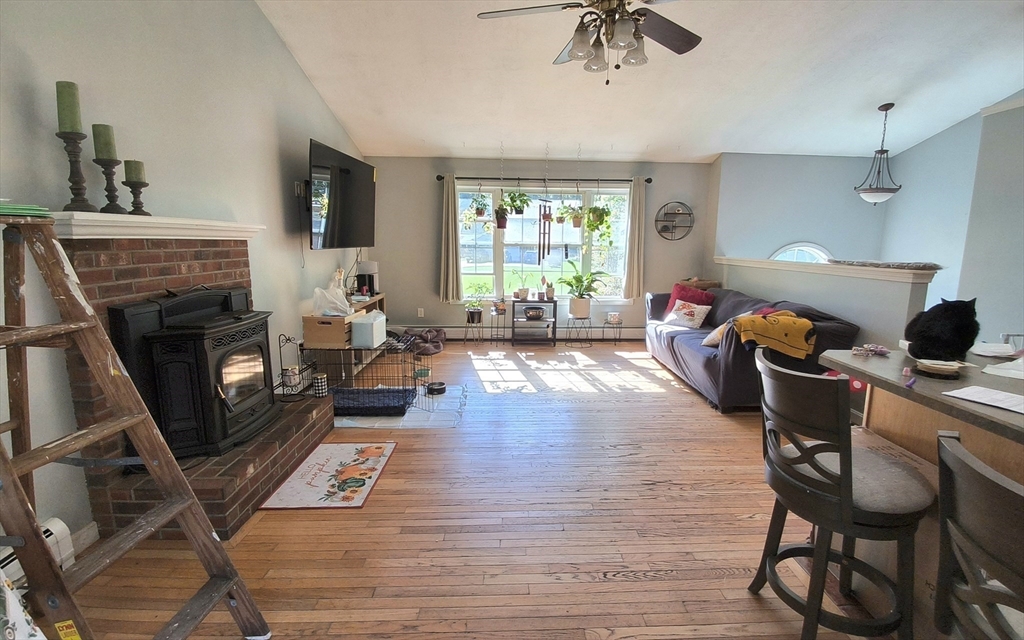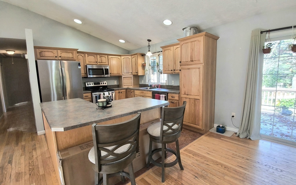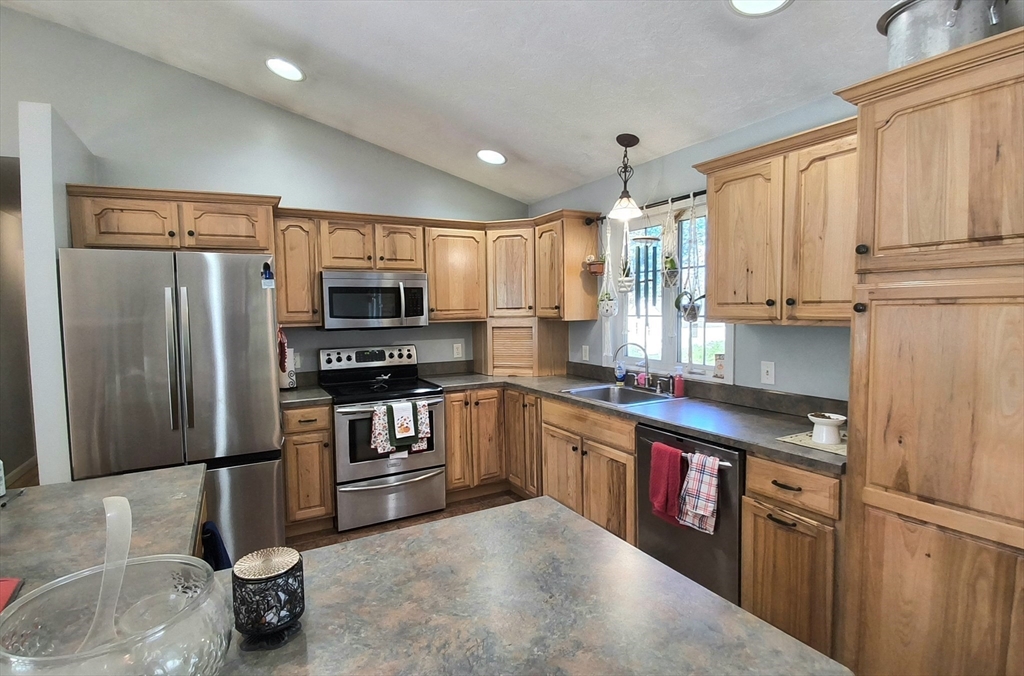 Welcome Home to This Move-In Ready Raised Ranch in North Brookfield!Step inside this beautifully maintained 3-bedroom,1.5-bath home,perfectly nestled just steps from Lake Lashaway.Featuring an open-concept living room and kitchen, you'll immediately notice the soaring vaulted ceilings & cozy fireplace with pellet insert—ideal for those crisp New England nightsThe spacious eat-in kitchen boasts a large center island,hickory cabinets,& an open dining area—perfect for casual meals or entertaining with ease. Sliding doors lead to a back deck,extending your living space outdoors for relaxing or hosting guests.Down the hall, you'll find three generously sized bedrooms, including a primary bedroom with an ensuite half bath for added convenience.Need more room? The unfinished lower level offers endless possibilities—create a home office,bonus room,or additional bedroom!Plus, enjoy the practicality of a two-car garage.Set on a large, private backyard complete with a storage shed & room to grow!