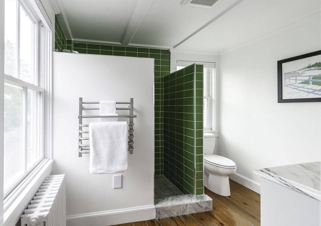 Located in the heart of Manchester Village, this beautifully updated 3-bedroom, 3-bath Colonial blends classic New England charm with modern comfort-just minutes from Singing Beach, the MBTA, the harbor, and the town’s shops and restaurants. Sunlit interiors highlight an open kitchen and dining area with stainless steel appliances and a gas range that flows directly to a private back deck and fenced yard. Upstairs, the primary suite features an ensuite bath, walk-in closet & laundry, while the second bedroom includes a full bath. A third bedroom on the main level adds flexibility for guests, a den, or creative space. Spring 2025 updates include a new roof, exterior carpentry, paint and chimney repair, refreshed interiors, and enhanced landscaping. A detached, climate-controlled cabana with outdoor shower offers bonus space for guests, a gym, or a dedicated office. Additional guest parking on Norwood Ave. A turnkey coastal home offering comfort, function, and village living.