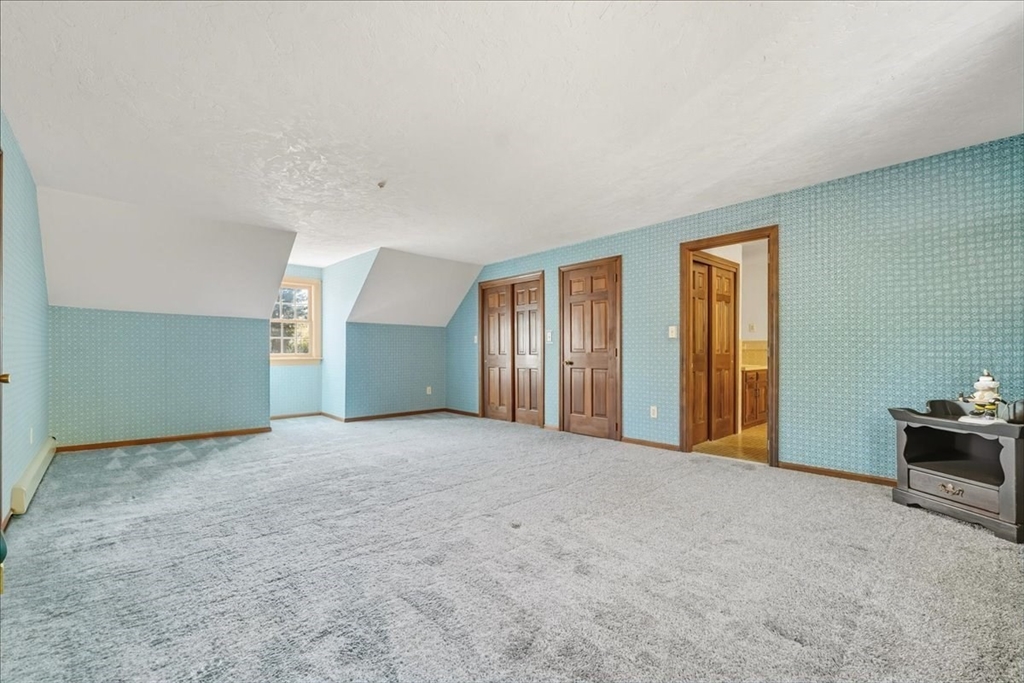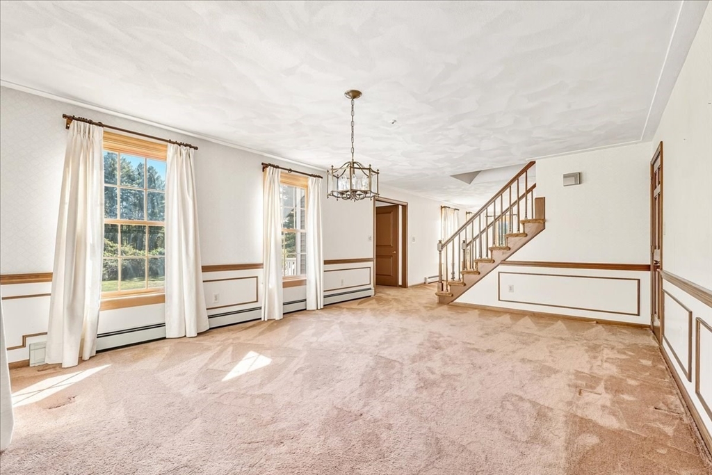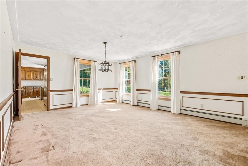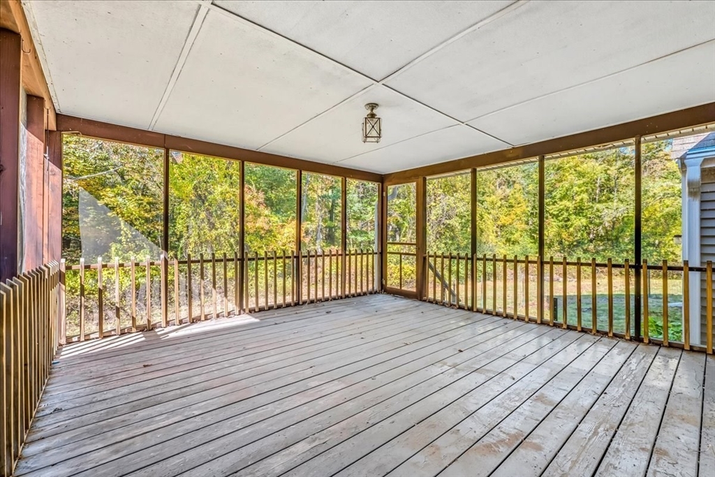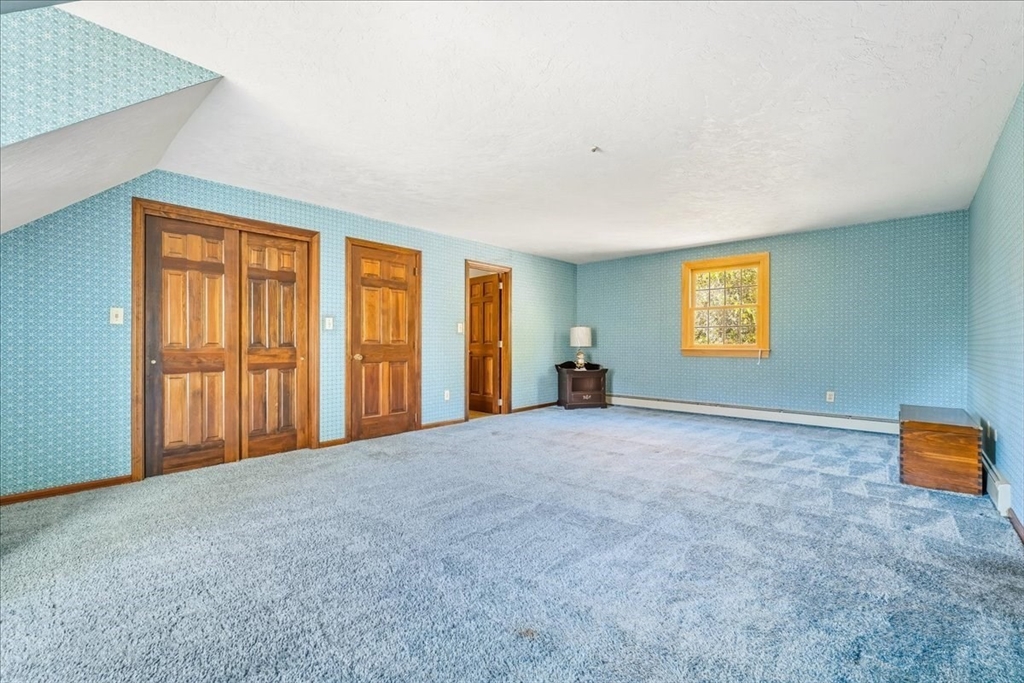Custom Cape set on a picturesque 2.61-acre lot along a scenic country road with 474 feet of frontage. The first-floor primary suite offers hardwood floors and private bath with tiled flooring. A formal living room with fireplace and brick hearth offers abundant natural light opening to a large formal dining room. The family room features cherry hardwood flooring, a brick fireplace, beamed ceiling, and wainscoting. The spacious kitchen boasts a fireplace, center island, walk-in pantry, laundry area, and slider to a screened porch overlooking a private wooded lot. Upstairs features two generous bedrooms with a Jack & Jill full bath. The huge unfinished lower level includes a versatile additional room, once a professional woodshop. Relax with your morning coffee on the front farmer’s porch with fabulous views of towering pines. Two car attached garage. Town Water. Award-winning school district with language immersion. Close to Oak Grove Farm and ~4 miles to the commuter rail.