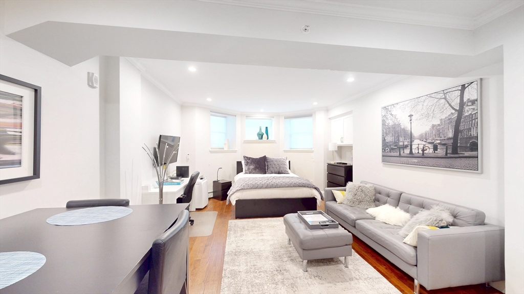 Welcome to this beautifully designed FULLY FURNISHED studio apartment nestled in a quiet, sought-after neighborhood on Beacon Street. This thoughtfully planned home offers an exceptional blend of charm and efficient use of space, perfect for comfortable city living. Equipped with all the high end furnishings you see in the photos as well as a TV, outdoor vented AC, fully loaded kitchen with cups, plates, silverware, pots, pans, etc and all the toiletries you need. This unit also boasts its own thermostat to control the flow of the included heat. Step into a bright and spacious living area with high ceilings and a warm wooden floor finish that adds a touch of elegance. The open layout seamlessly connects to a modern kitchen featuring stainless steel appliances, including a refrigerator, designed to meet your everyday needs with style and functionality. Don’t miss the opportunity to make this inviting studio your new home. Reach out to learn more and schedule your private tour today!