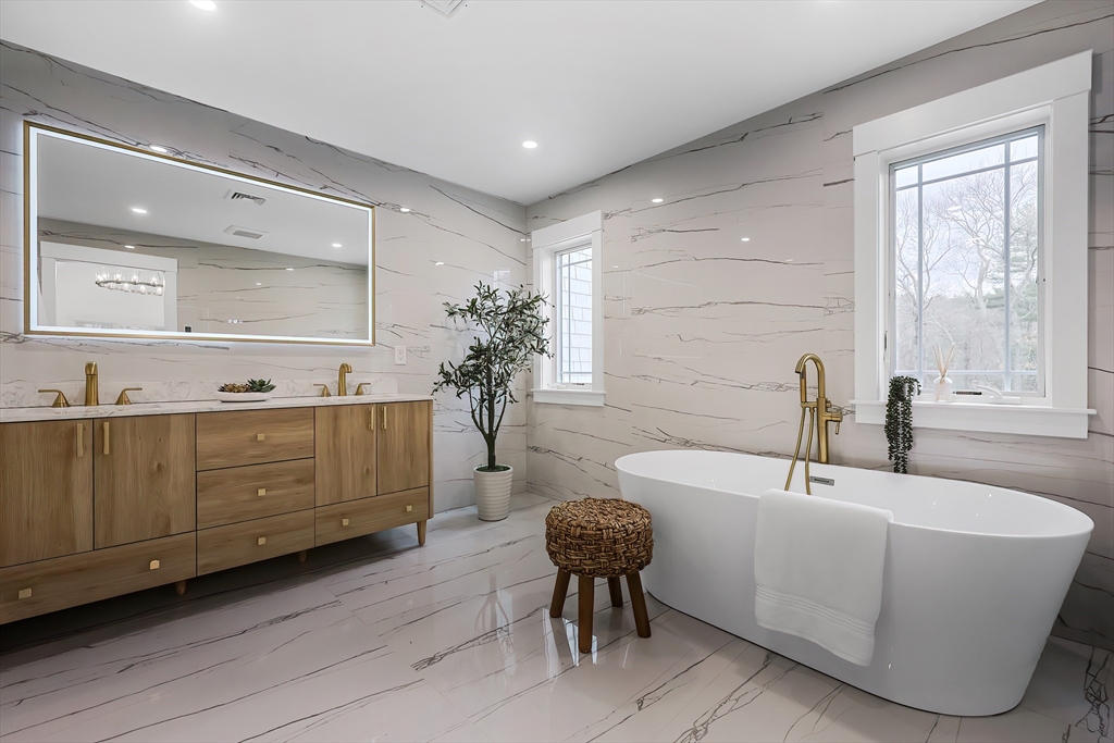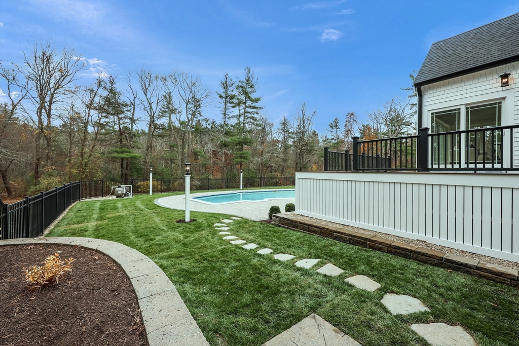 Like new construction located on a deadend rd on 3 acres in desirable Sherborn. No expense was spared in this LIGHT & BRIGHT, custom rebuild. When you arrive you will notice the board & batten throughout the 2 story foyer that continues along the completely open first floor. In the formal living room, is a wood fireplace for those chilly winter nights. In the kitch you will find monogram applcs incldg a dbl wall oven and induction cooktop. As you continue along the 1st flr from the kitch to the informal lvg room you will notice the cath clg with expansive views of your lrg deck and ingrnd pool. A lrg, bright home ofc or 1st floor br completes the 1st flr. The finished basement has lrg rooms with kitch and wine frg for easy access during those pool parties in the hot new england summers. Upstairs is sure to delight as the primary suite features a lrg clst & pvt bthrm with soaking tub, custom tile shower & separate vanities. Ldry, anthr full bth and 3 more bdrms complete the floorplan.
