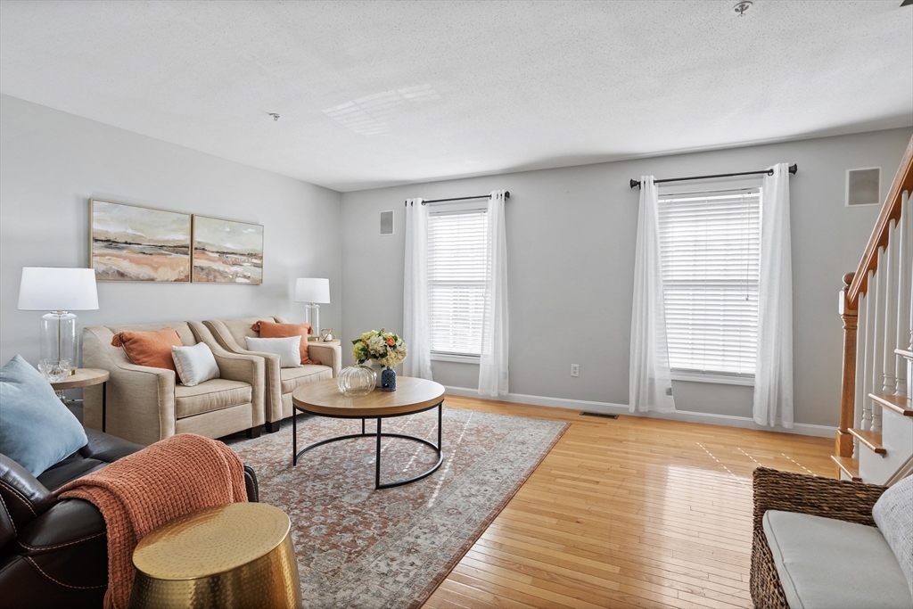 LOCATION, LOCATION, LOCATION! Great 2-bed 1.5-bath Townhouse with a one-car garage located on the Tyngsborough town line, features spacious bedrooms and a large sun-drenched living room with hardwood floors. The kitchen and spacious dining area walk out onto the deck, and a half bath completes the first floor. The 2nd level has two large bedrooms; the main bedroom has two closets and stairs that lead up to a loft that doubles as an office/guest room. The laundry is in the second-floor bath. There is extra storage in the basement behind the garage. This home is located near all major commuter routes and shopping! The unit is easy to show. Call today and be home for the Holidays.