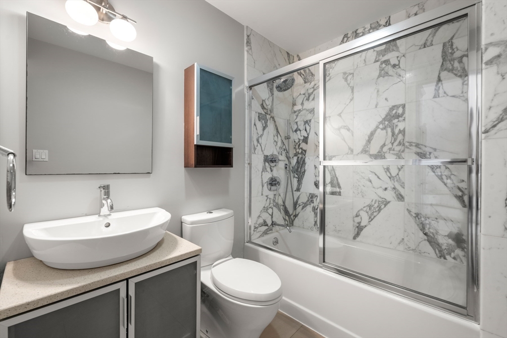 Amazing one bedroom penthouse located in the heart of the South End! Open floor plan kitchen dining and living room with a wall of windows providing amazing light and views. Enjoy entertaining on your private roof-deck with full staircase access. Cook's kitchen with all stainless appliances (gas cooking), custom cabinets and stone counter-tops. Spa like bath with beautiful stone finishes and deep soaking tub. Bedroom has a cozy window seat, great closet space and additional storage areas. In unit laundry, central a/c, hardwood floors throughout and more. Seller will consider earlier move in.
