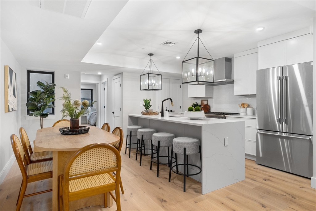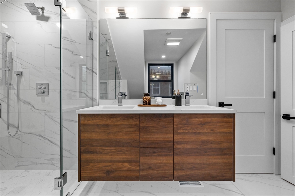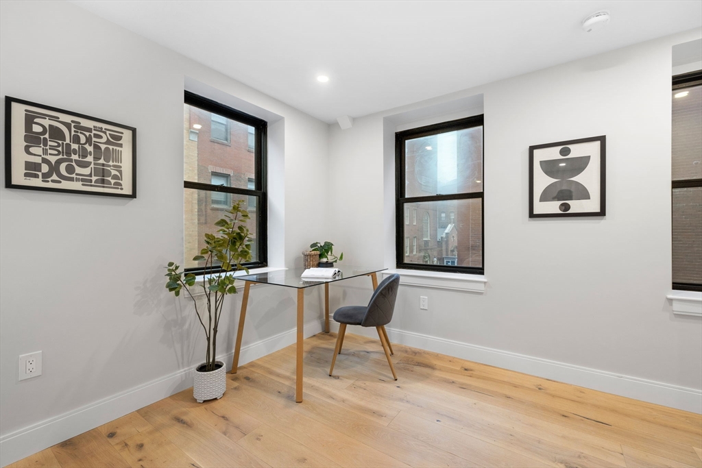 Rare offering, two unit new construction package spanning the top 3 levels of one of the most architecturally striking homes in the North end with 4 Decks. The stunning federal townhouse has been brings a seamless blend of modern luxury/amenities with timeless historic charm to this stunning luxury home. With windows abound, The interior gets amazing light offering a dramatic wide open feel to the sprawling living kitchen dining area. The sharp designer finish package caters to the most discerning buyer. Beautiful kitchens w thermador appliances & custom cabinetry. Boasting 4 Decks, nearly 30 windows & beautiful views of city skyline, North end, & Old north church. 1 rental parking transferable at sale. The two units have a private entrance & can combine to make one enormous penthouse typically unobtainable in North End or a Great hands free rental asset for under $1,000/ft