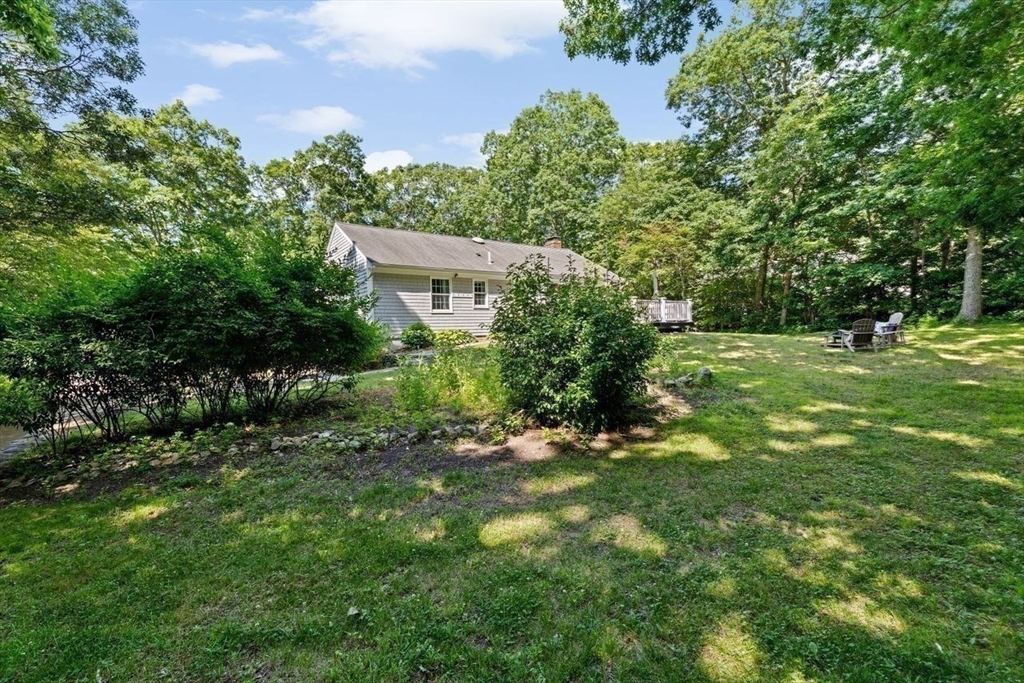 Top Rated Schools ! 12 month lease ! This updated ranch has a lot to offer. Located just south of Route 6A in Galloping Hills close to historic Sandwich Village. The 1/2 acre lot is located on a very private road. New windows and siding in 2024. Central air for those steamy Cape Cod nights. Walking trails will take you to the Thornton Burgess Conservation and Nature Center as well as to the Sandwich High School and Middle School. The main floor offers an open living room with wood burning Stove, dining room, kitchen. A large glass slider leads to an expansive deck & large flat back yard with oversized shed and an amazing outdoor shower with changing room. The spacious , private yard provides great space for entertaining. The primary bedroom has lots of space, built in custom cabinetry and en-suite bath. Two other generous sized bedrooms complete the main level. The lower level is heated and offers approx 500Sq ft. The oversized garage offers incredible storage,generator connection