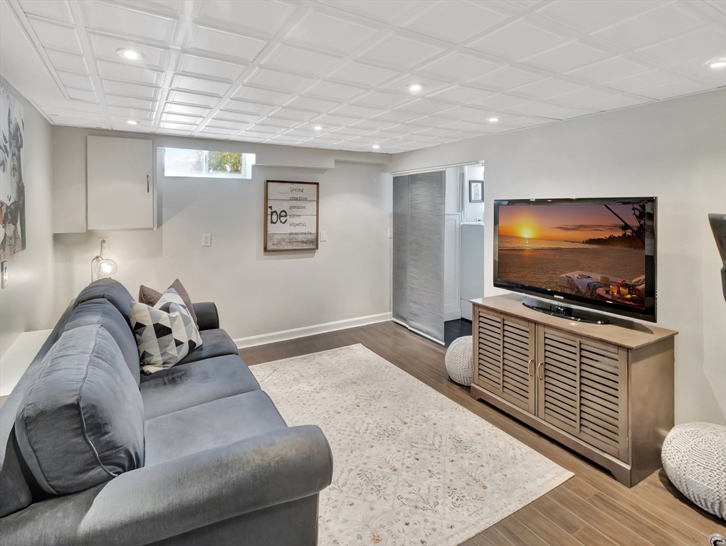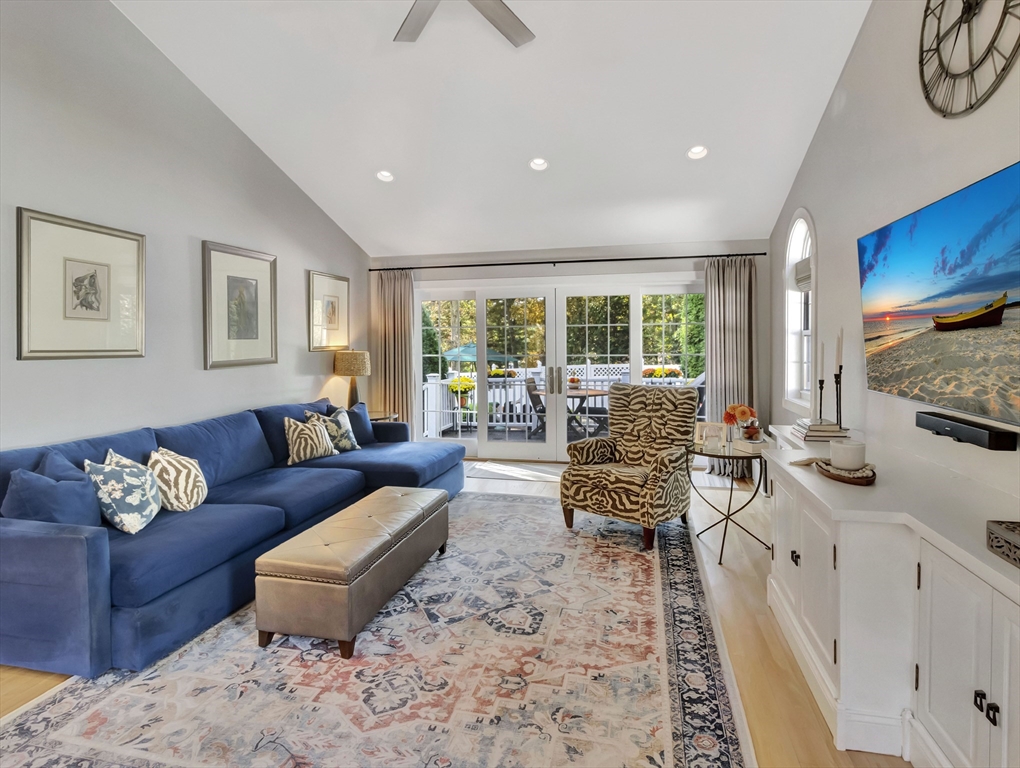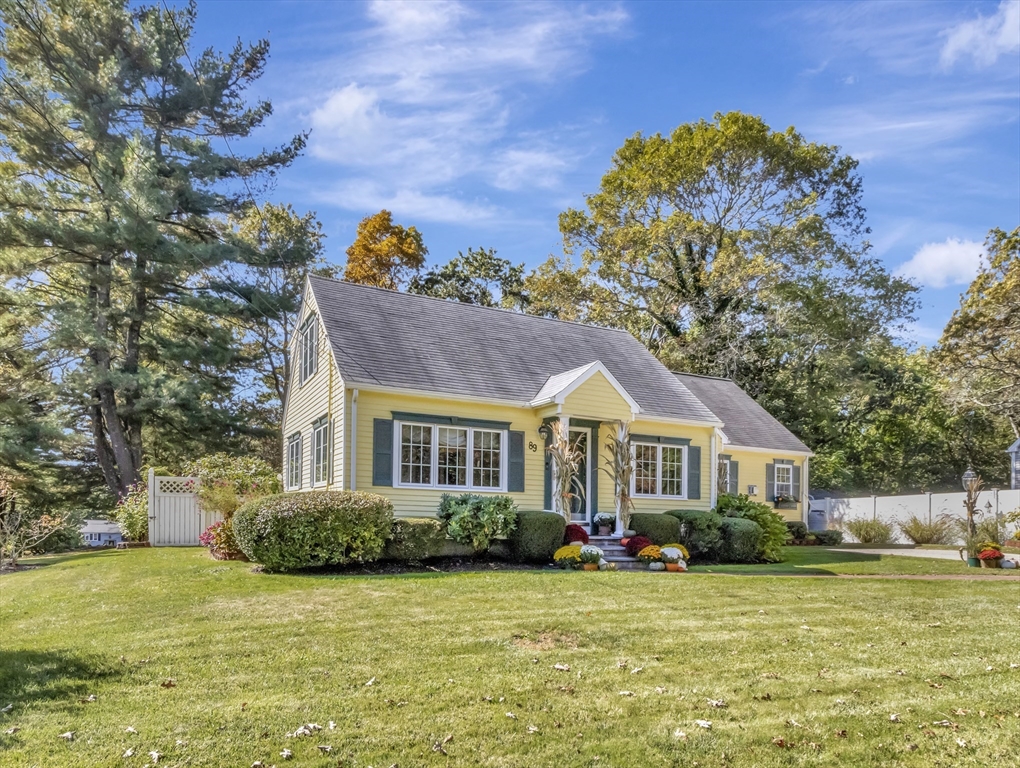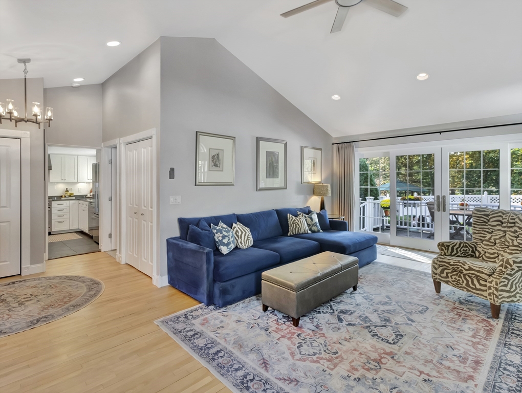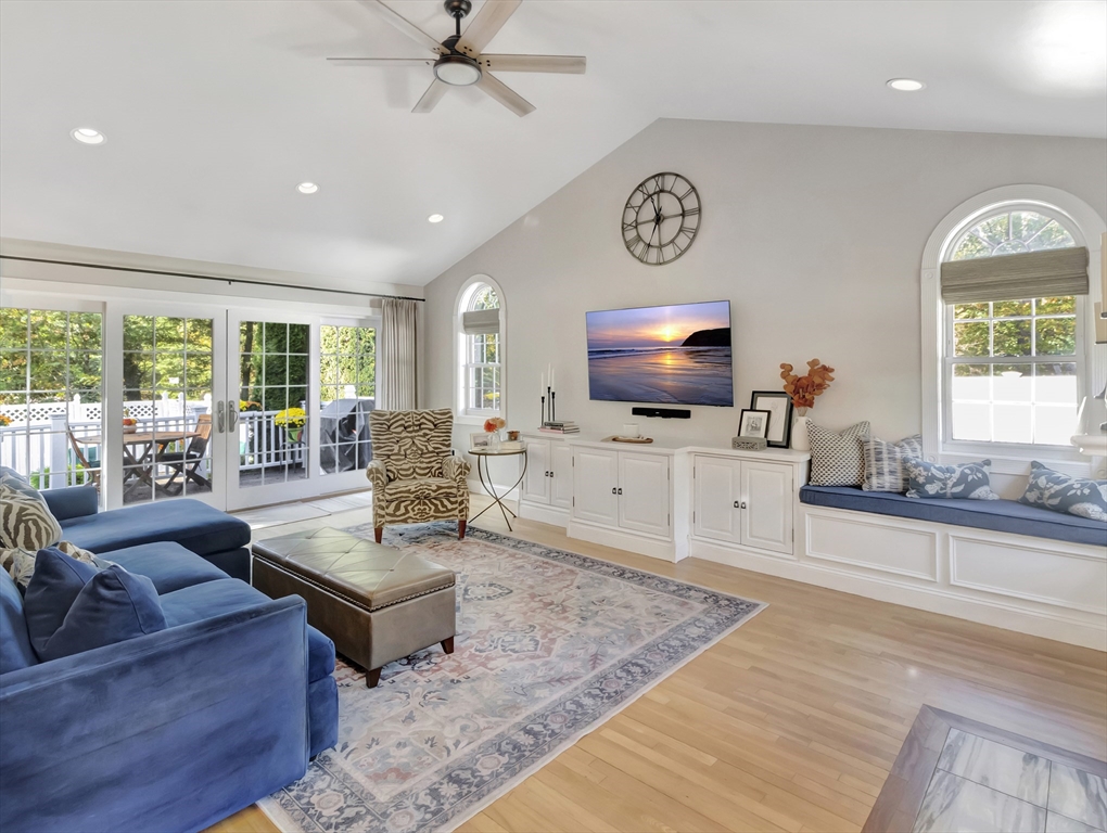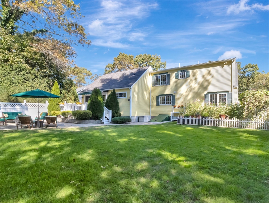Quintessential New England Cape! This charming home blends timeless character with stylish updates throughout. Enjoy a stunning upgraded kitchen and beautifully renovated bathrooms, gleaming hardwood floors, and a gorgeous family room addition featuring a cathedral ceiling and gas fireplace. The room opens to a picturesque, fenced backyard adorned with a spacious deck, lush flower beds, and patio - perfect for relaxing or entertaining. A brand-new 3-bedroom septic system offers peace of mind. The original first-floor bedroom has been converted into a dining room but can easily be repurposed as a third bedroom with the reinstallation of a wall and door.The finished basement provides additional flexible space, ideal for a playroom, home gym, or office. Perfectly situated close to shopping, major routes, and Patriot Place for dining and shopping.This home is picture-perfect in every way—beautifully maintained and truly move-in ready.