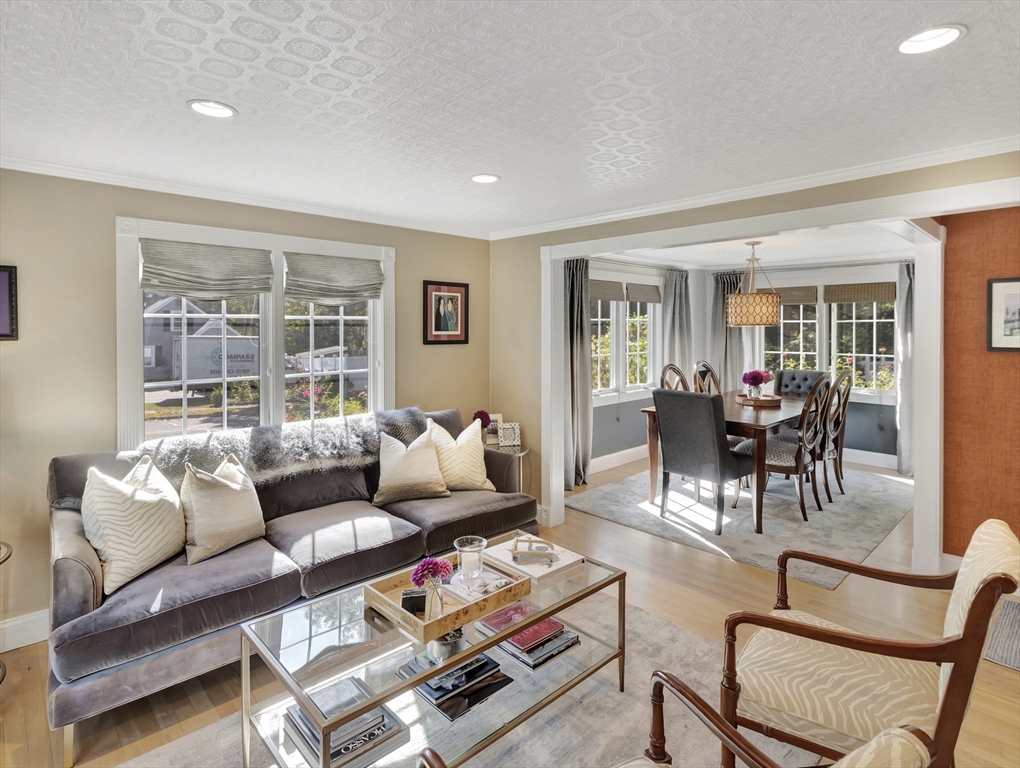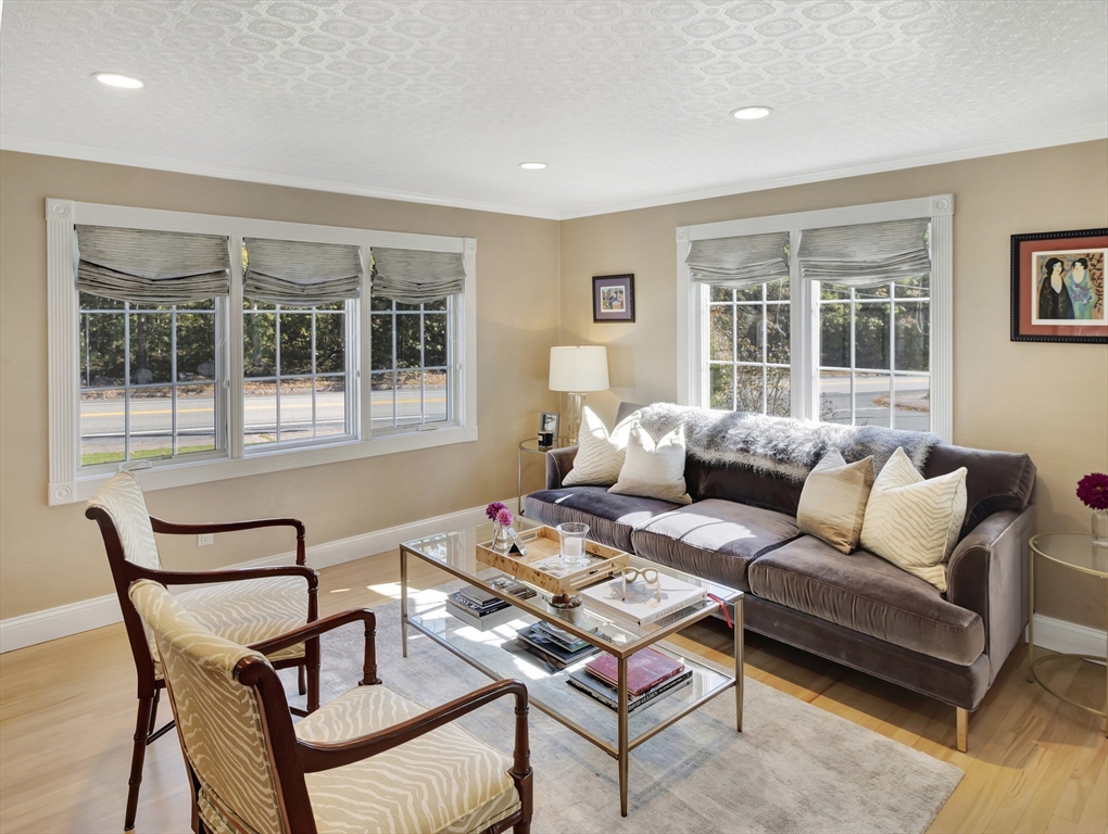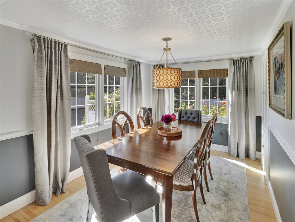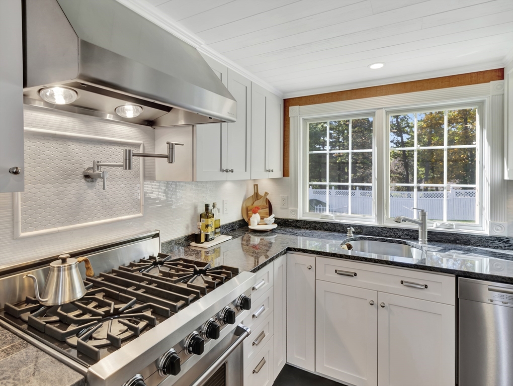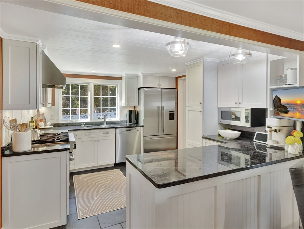 Quintessential New England Cape! This charming home blends timeless character with stylish updates throughout. Enjoy a stunning upgraded kitchen and beautifully renovated bathrooms, gleaming hardwood floors, and a gorgeous family room addition featuring a cathedral ceiling and gas fireplace. The room opens to a picturesque, fenced backyard adorned with a spacious deck, lush flower beds, and patio - perfect for relaxing or entertaining. A brand-new 3-bedroom septic system offers peace of mind. The original first-floor bedroom has been converted into a dining room but can easily be repurposed as a third bedroom with the reinstallation of a wall and door.The finished basement provides additional flexible space, ideal for a playroom, home gym, or office. Perfectly situated close to shopping, major routes, and Patriot Place for dining and shopping.This home is picture-perfect in every way—beautifully maintained and truly move-in ready.