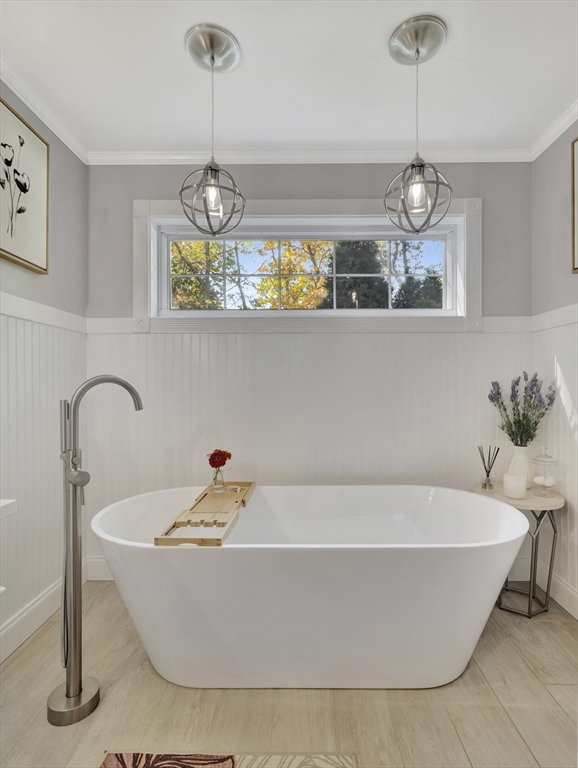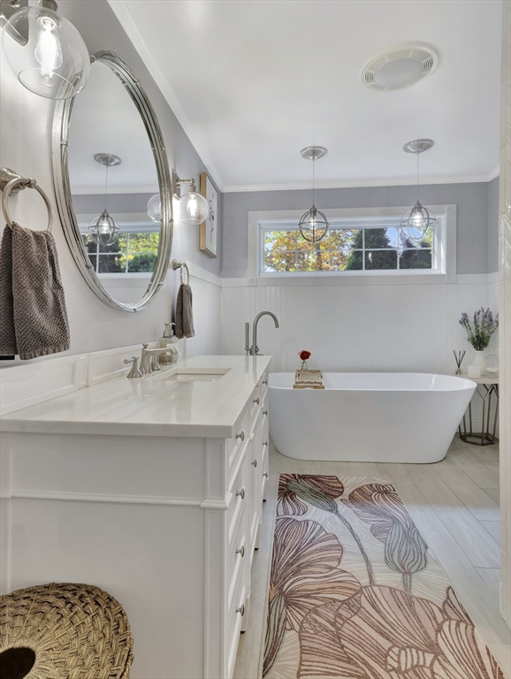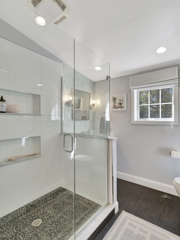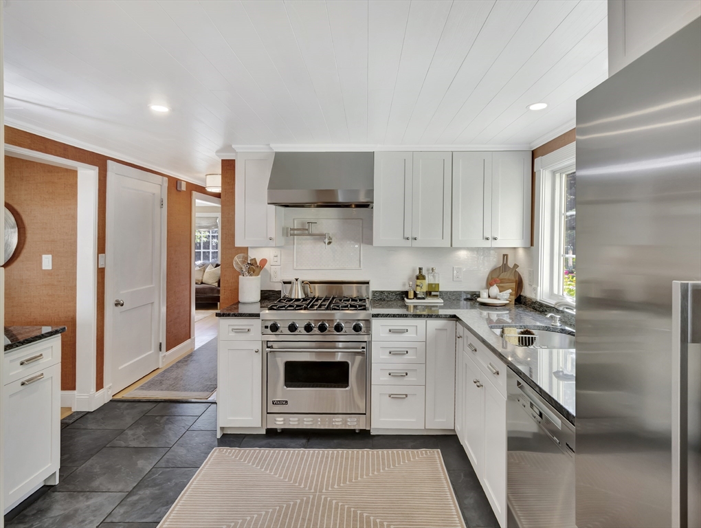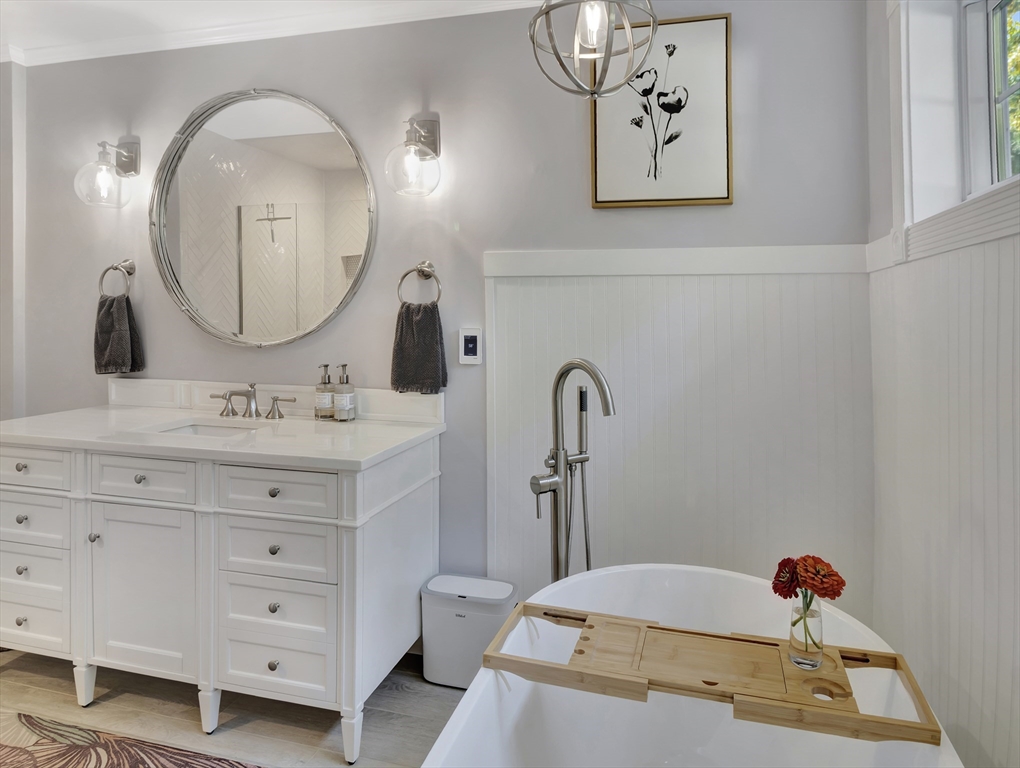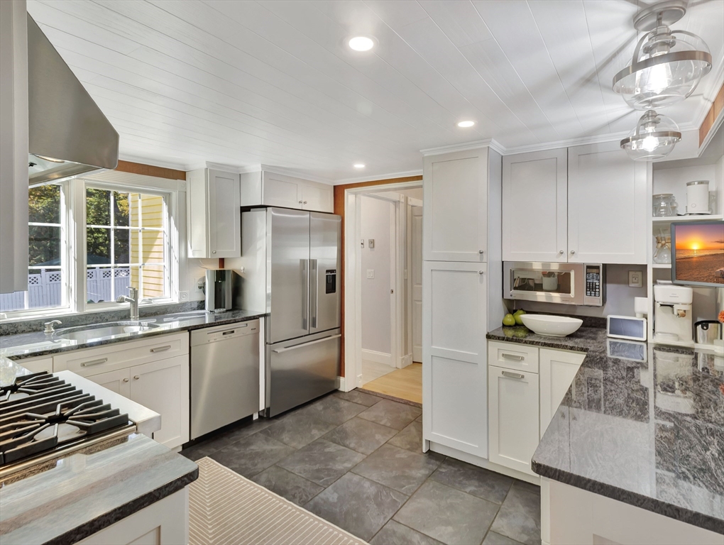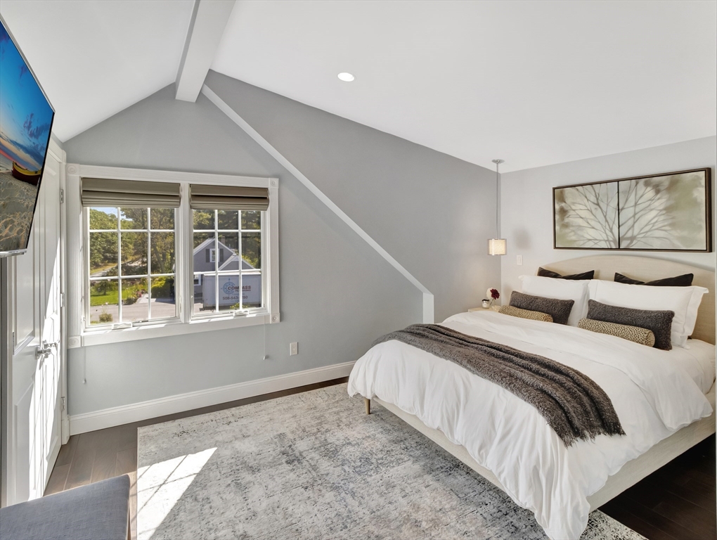 Quintessential New England Cape! This charming home blends timeless character with stylish updates throughout. Enjoy a stunning upgraded kitchen and beautifully renovated bathrooms, gleaming hardwood floors, and a gorgeous family room addition featuring a cathedral ceiling and gas fireplace. The room opens to a picturesque, fenced backyard adorned with a spacious deck, lush flower beds, and patio - perfect for relaxing or entertaining. A brand-new 3-bedroom septic system offers peace of mind. The original first-floor bedroom has been converted into a dining room but can easily be repurposed as a third bedroom with the reinstallation of a wall and door.The finished basement provides additional flexible space, ideal for a playroom, home gym, or office. Perfectly situated close to shopping, major routes, and Patriot Place for dining and shopping.This home is picture-perfect in every way—beautifully maintained and truly move-in ready.