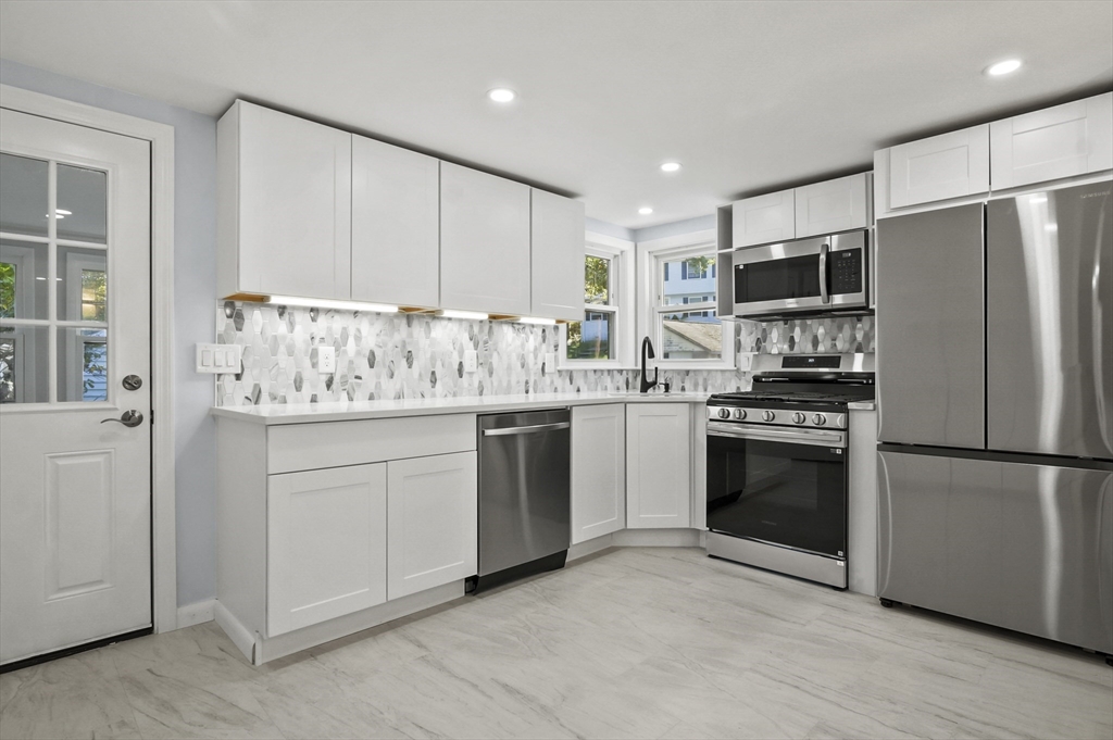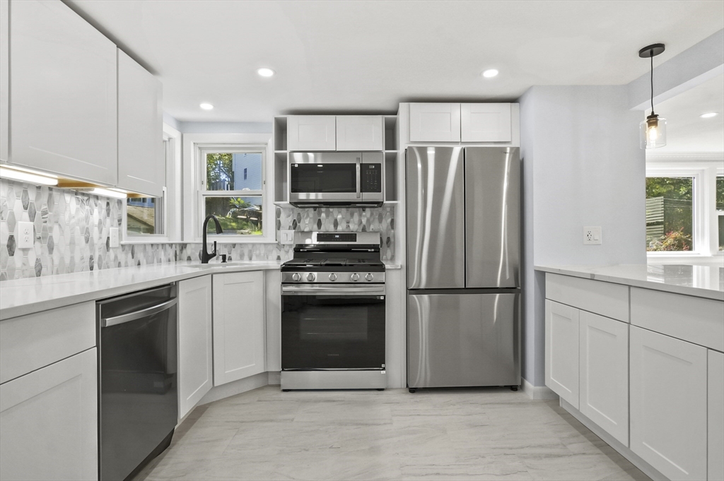 This thoughtfully updated ranch combines style, comfort, and convenience on a desirable dead-end street in North Waltham. Sun-filled living room with picture window flows to the dining area and a sleek kitchen with quartz counters, under-cabinet lighting, touch-to-open cabinetry, and smart, fingerprint-resistant appliances, plus a cozy breakfast nook. Year-round comfort with central air, new electrical & plumbing, and recessed lighting. Two bedrooms and a tiled full bath complete the main level. The finished lower level adds a family room, office/flex space, a new second full bath, and laundry. Outside, a new composite deck and low-maintenance yard invite easy entertaining. Walkable to the neighborhood school, playground, basketball courts, and local favorite Pizzi Farm. Super convenient to Rt 128/95 and minutes to shops, dining, parks, and transit. Enjoy bustling Waltham’s recreation, splash pads, and new universal playground. Make your appointment today!
