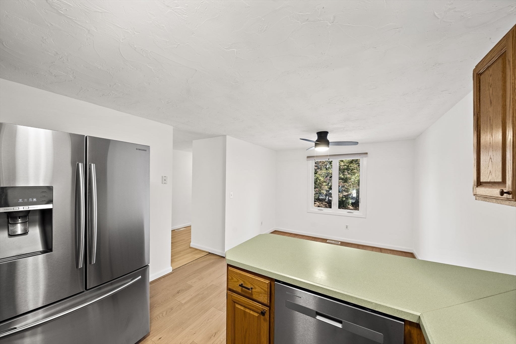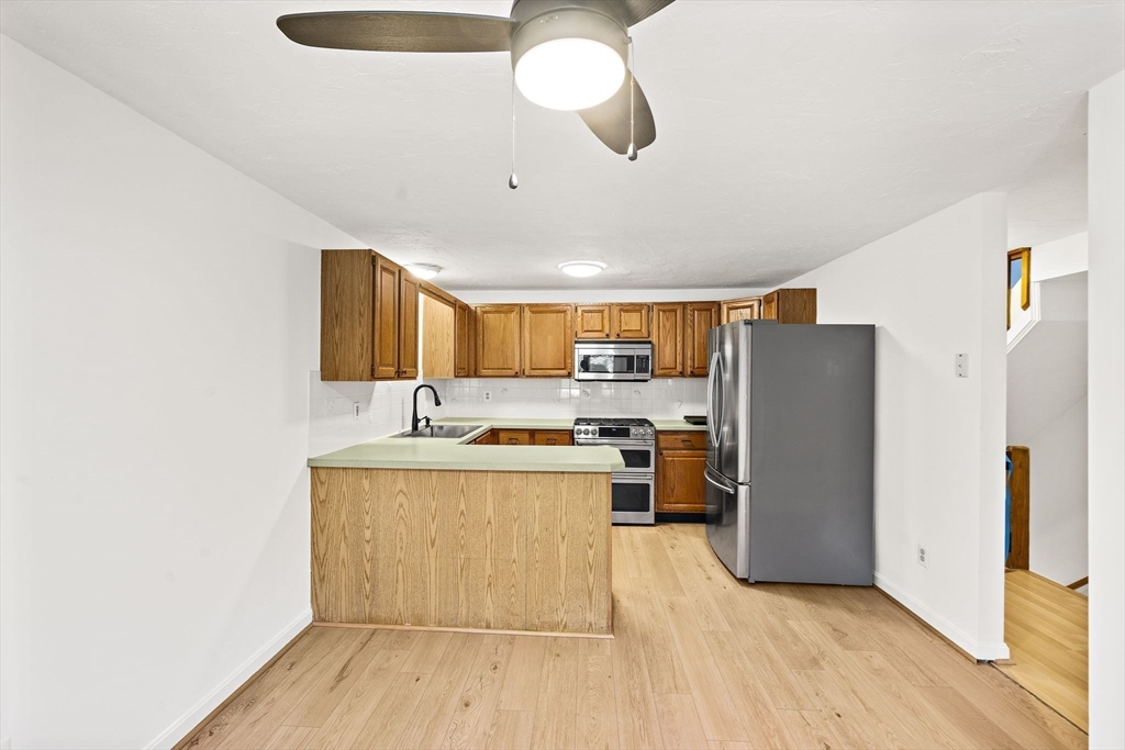 Welcome to the Village at Hager Meadows! A stunning 2 bed, 2.5 bath rental featuring an open living area with large windows, sliding glass doors, and a cozy fireplace. The light wood floors and neutral palette create a modern, airy feel throughout. Enjoy a bright eat-in area in the kitchen with stainless steel appliances included an upgraded Cafe double oven, gas range 6 burner. Upstairs you'll find two spacious bedrooms, each with a full en-suite bath, plus a full loft area with skylight for extra living or work space. The lower level includes a one-car garage, a laundry room, and a bonus utility room. Outside, enjoy peaceful wooded views from your deck. Unit is freshly painted and has central AC. Snow removal, trash and landscaping are included. Convenient drive to 495, 90, 290 and Route 9. Close to groceries, restaurants, Callahan State park, and Williams Lake Boardwalk. Schedule a viewing today!