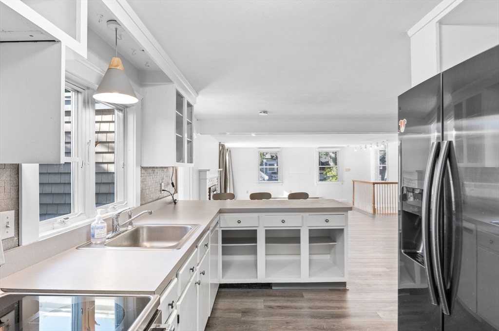 Experience the best of Marblehead living in this inviting 3BR, 2 bath home perfectly situated near Old Town on a quiet side street near the harbor, beaches, shops, & restaurants. Boasting over 2,000 s.f. of flexible living space, this home blends comfort, versatility, & coastal charm. The main level offers a bright, open layout featuring a spacious living room with a wood-burning fireplace & sliding doors to a sunny deck overlooking the fenced yard—ideal for entertaining or relaxing outdoors. The living room connects seamlessly to a flexible room that can serve as a dining room, den, home office, or 4th bedroom, along with 2 additional bedrooms & a full bath. The property offers a third bedroom with a walk-in closet & patio access, a second full bath with laundry, & a bonus room perfect for guests or a home workspace. A rare two-car garage & prime location near Redd’s Pond complete this exceptional opportunity to enjoy Marblehead's quintessential coastal lifestyle.