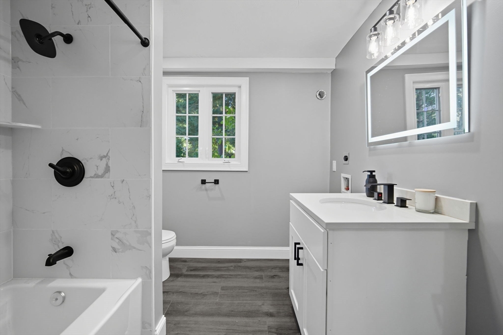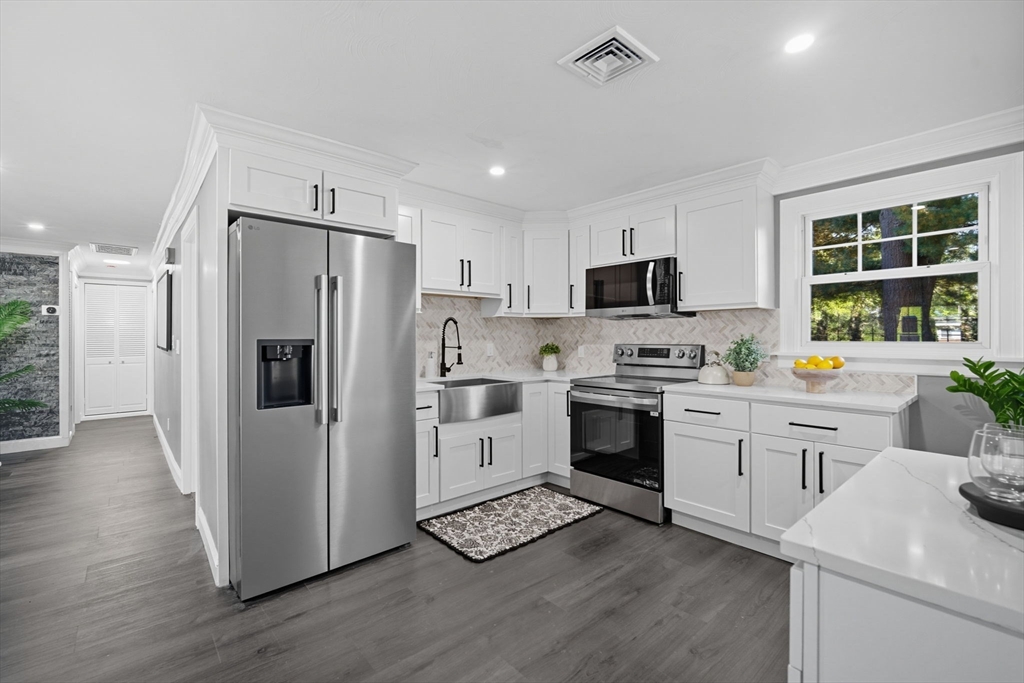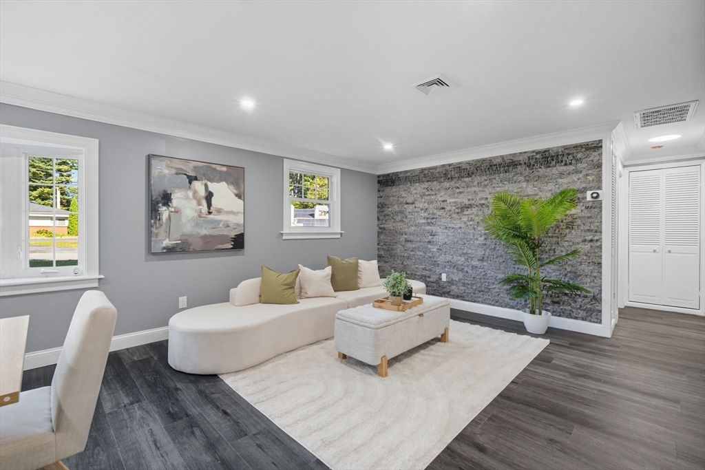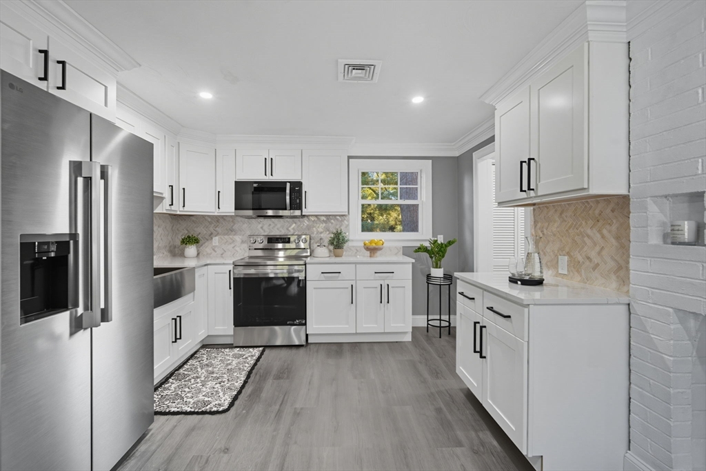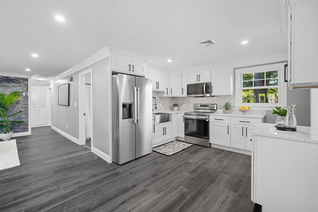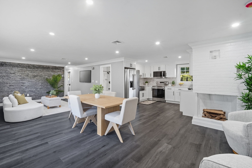 A wonderful ranch home, fully renovated and tucked away at the far west end of Brockton. This is the kind of home that makes you cancel every other showing. Bright, open spaces, modern finishes, and that cozy comfort that reminds you what home should feel like. Step inside to discover an open-concept layout filled with natural light, featuring a spacious living and dining area centered around a charming fireplace that adds warmth and character to every gathering. This stylish home features three bedrooms, including a flexible bonus space perfect for an office, playroom, or guest suite, plus two beautifully updated bathrooms and a sunroom that invites relaxation year-round. Enjoy peace of mind with all-new electrical and plumbing systems, ensuring modern comfort and efficiency. Outside, you’ll find a one-car garage plus three spaces, a nice large lot, and a cozy backyard sitting area ideal for quiet mornings or evening get-togethers. This isn’t just a house — it could be your next level