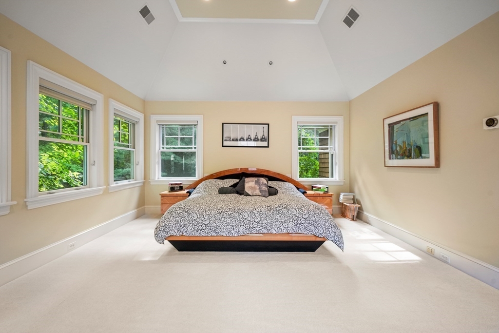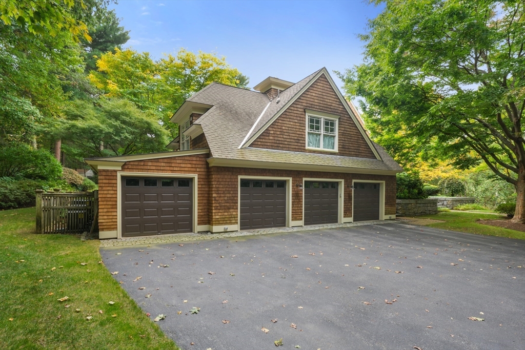 Custom-built and architecturally designed, this Shingle-style home is tucked away on a quiet cul-de-sac in one of Weston’s premier south side neighborhoods. Set on 1.34 acres with mature trees, a koi pond, and nearby path to Weston’s schools, the home offers both beauty and convenience. A dramatic foyer leads to elegant living and dining rooms. The sunlit chef’s kitchen features high-end appliances, a large center island, and a breakfast area that opens to a family room with custom built-ins and fireplace. French doors lead to a spacious bluestone patio for seamless indoor-outdoor living. The second floor includes a luxurious primary suite with dual walk-in closets and spa-like bath, plus two additional bedrooms with shared bath. The third floor offers a private suite with home office; a separate fourth bedroom is ideal for guests or in-laws. A 4-car garage adds to the home’s functionality. Throughout, exquisite millwork and hardwood floors reflect true craftsmanship.