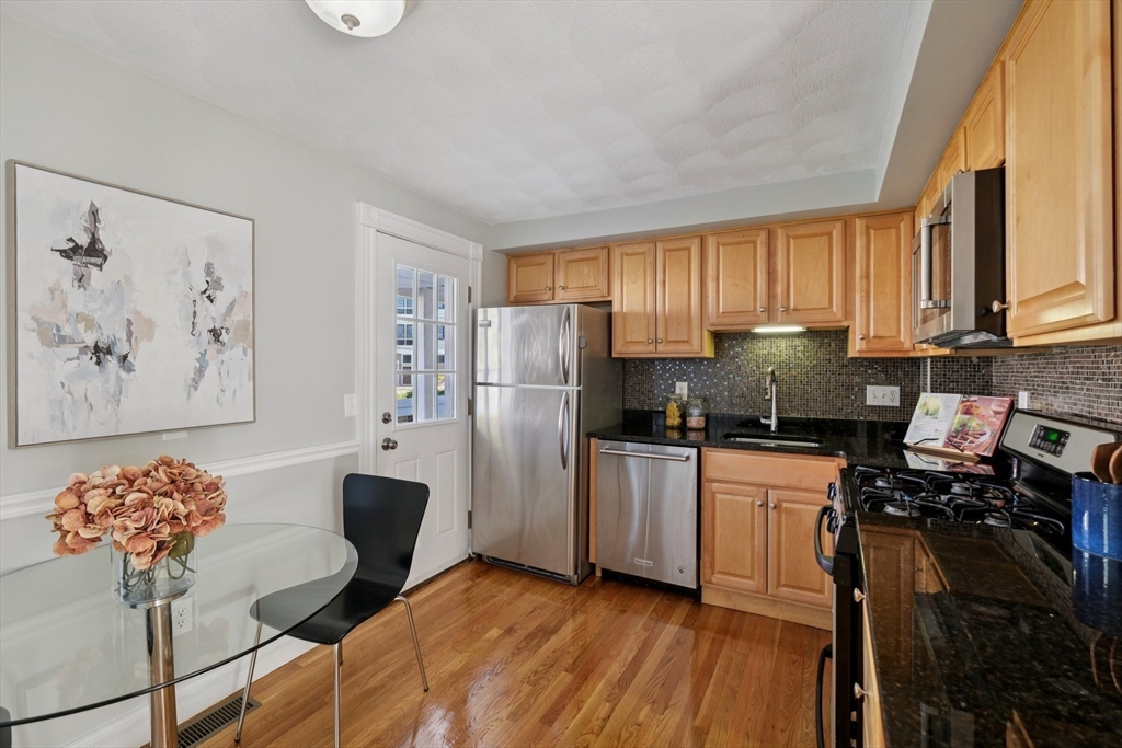 Welcome home to this nicely maintained townhome in an unbeatable location. Situated right on the Cambridge line, you are steps away from Union Square (Green Line MBTA) in one direction and Inman Square in the other. The main level features a great layout for living and entertaining, complete with gleaming hardwood floors. The eat-in kitchen offers granite countertops, stainless steel appliances, and ample storage. Sliding doors lead to your private outdoor patio. Upstairs, you'll find two large bedrooms, one with a full en suite bath, vaulted ceilings, and brand new carpet. The entire unit has been freshly painted. A full, private basement provides excellent extra storage or potential for future expansion. This comfortable home is part of an association that is primarily owner-occupied. Don't wait to call this terrific place home!