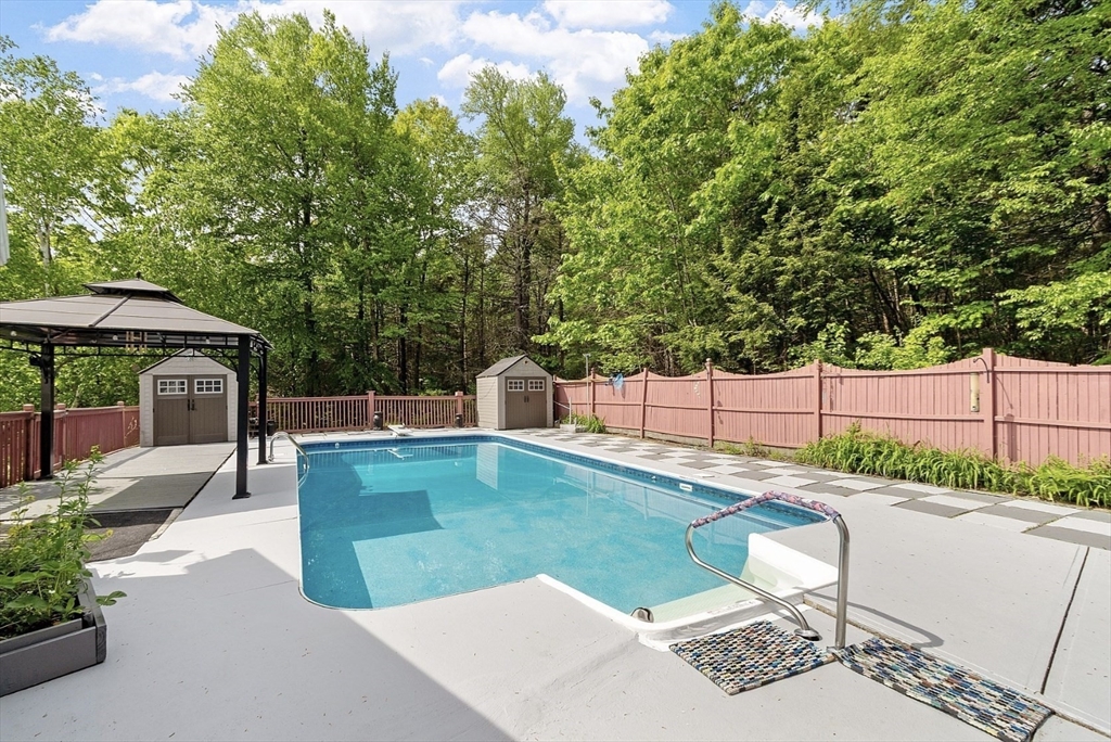 Follow the long, picturesque driveway and discover a world of privacy, luxury, and calm complete with a pool, outdoor jacuzzi, encompassed in 24 acres of land. Spanning approximately 2,289 square feet, this home features 3 bedrooms, 2 full baths, an office, a family room and a generous 2 car garage. Step inside to a beautiful open concept living area featuring vaulted ceilings and a seamless flow between the kitchen and living room. The living area extends into a stunning sunroom filled with natural light from multiple windows and skylights, a perfect space for year round relaxation. Designed with privacy in mind, the primary suite occupies its own wing of the home, featuring a en-suite bath, a spacious walk in closet and a versatile office space. The backyard oasis features a in-ground pool surrounded by mature trees for privacy, with a spacious deck and gazebo perfect for entertaining. Every detail of this home was designed to offer the perfect blend of comfort and privacy.