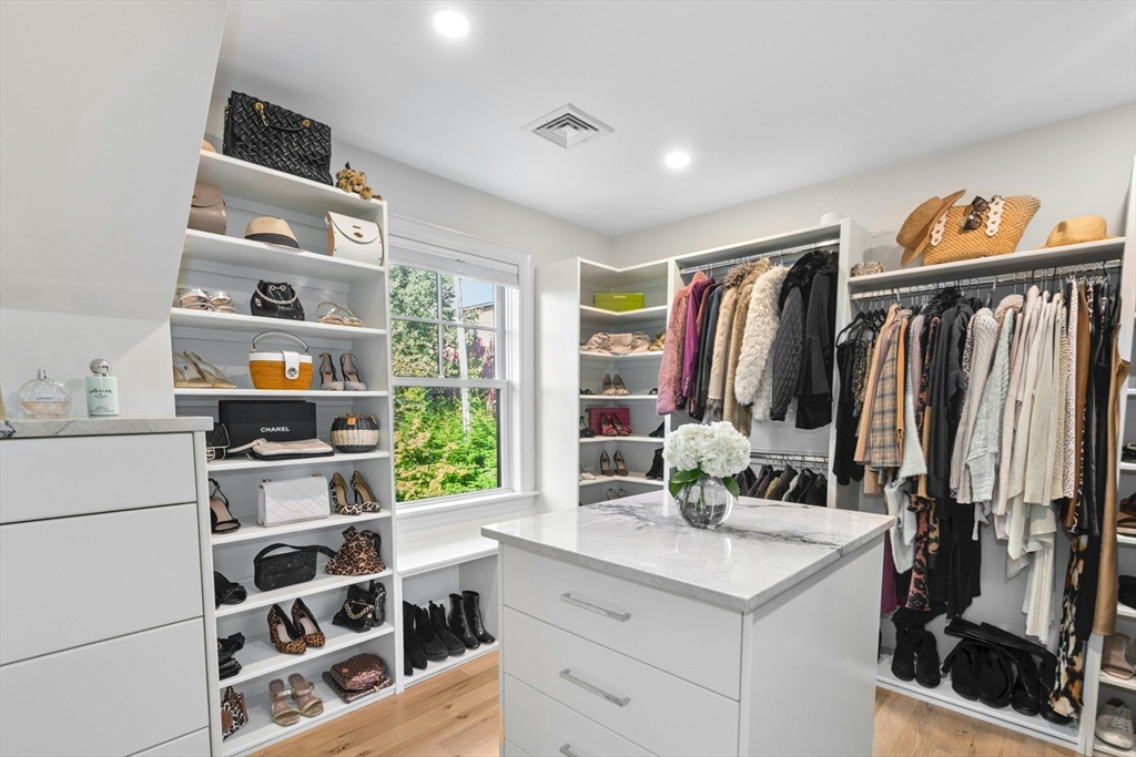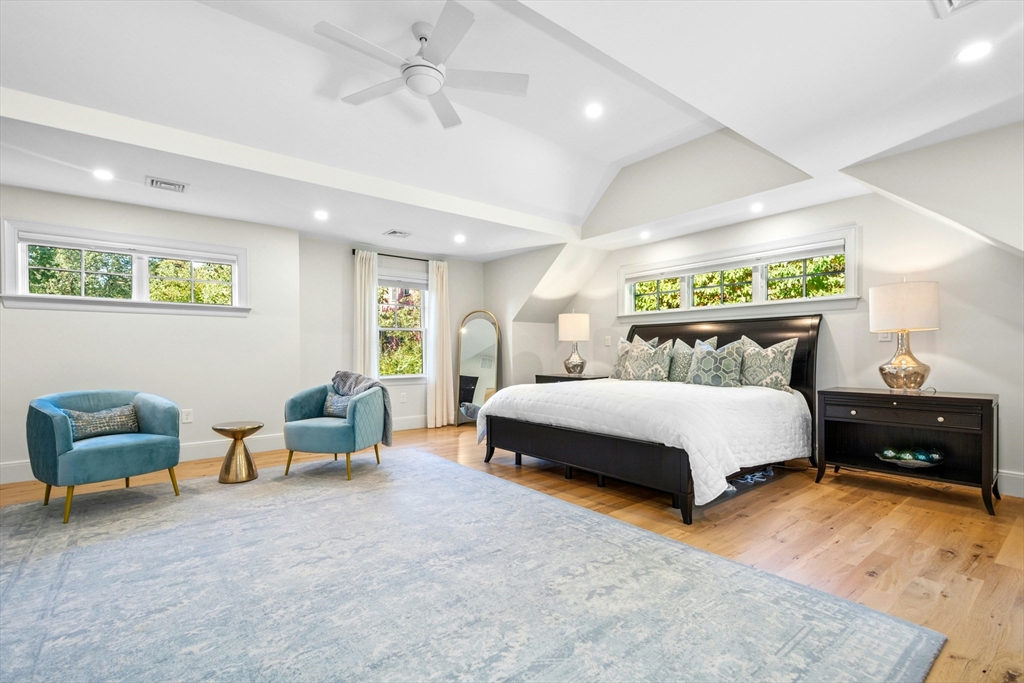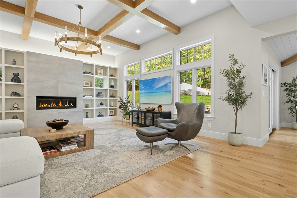 Luxurious builder’s own 3 year young Contemporary Colonial features 7,634 sq. living area on a private 22,626 sq. ft. lot, just steps from conservation. Custom designed home showcases exceptional craftsmanship and modern amenities throughout. Trend setting kitchen with an oversized island, quartzite countertops, high end appliances w/48” gas range, warming drawer, dual dishwashers, beverage fridge, walk-in pantry. Kitchen opens to a vaulted sunroom w/wall of windows overlooking a private yard and spacious family room with custom built-ins, gas FP, surround sound. First floor includes office/guest suite w/full bath. Upstairs features 4 BRS w/stunning main suite w/vaulted ceiling, gas FP, sitting area, custom closets, spa-like bath. Third floor offers 5th BR, full bath, playroom. Enjoy the finished lower level with game room w/wet bar, home theater, gym, full bath and wine cellar. Whole house generator. Don't miss this rare opportunity for luxury, comfort and style in a premier location!