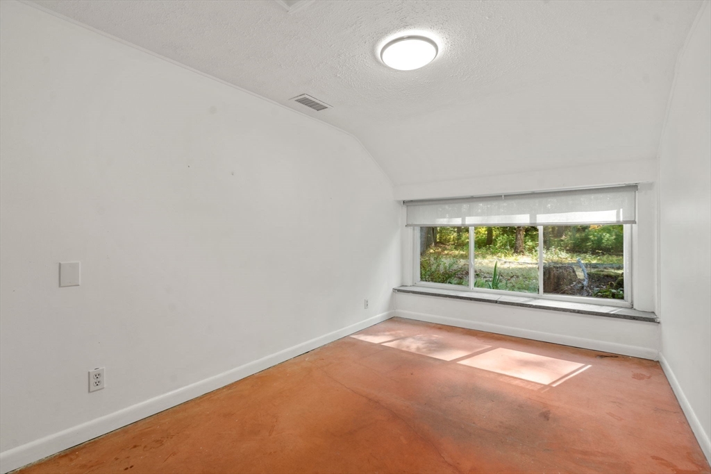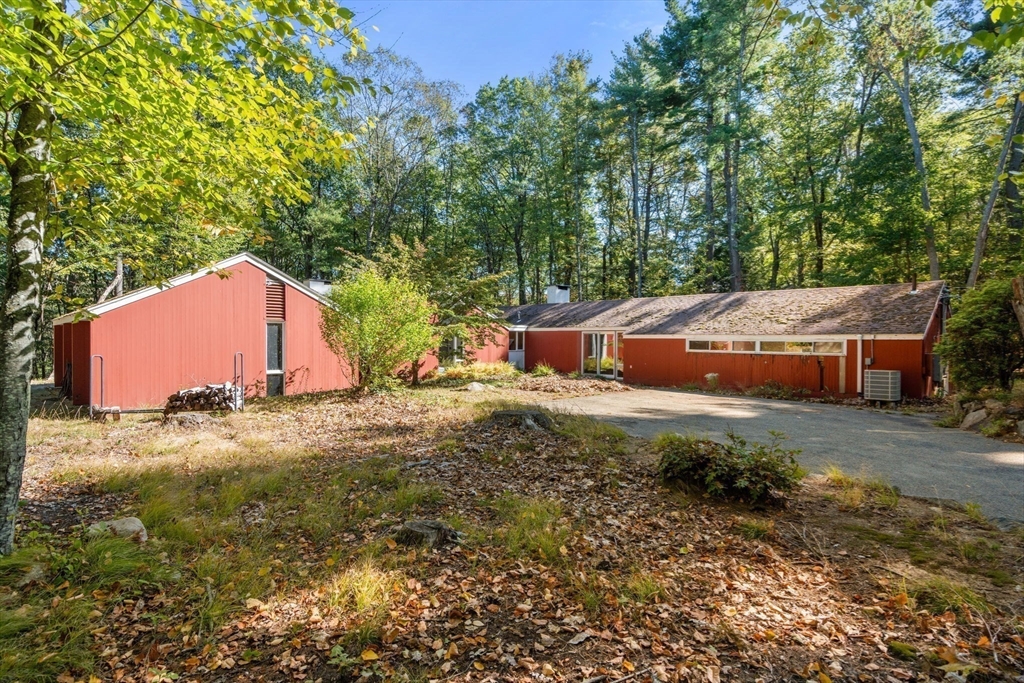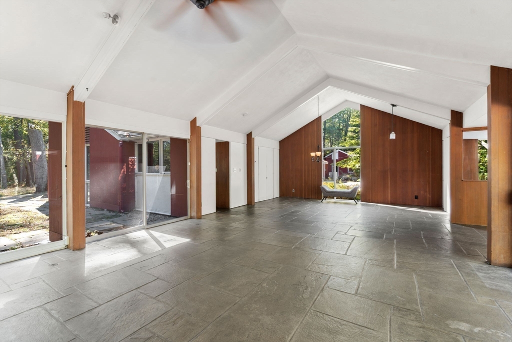 Quintessential Hoover & Hill-designed mid-century modern on an unspoiled five-acre lot. A perfect ecosystem of natural stone, trees, and open land – look for glacial erratics. The thoughtful 4-bedroom, 3-bath layout offers endless flexibility and is ideal for multi-generational families or an ADU. The courtyard layout allows each room a unique natural view. It has cathedral ceilings, stone floors, two fireplaces and copious built-in storage. Detached, oversized two-car garage/shop with electricity features two extra rooms, a storage loft, and potential for heating. Your separate office or studio? Located near the Gropius house, Carroll School, and DeCordova, it is a leisurely amble to Walden. This Mid-Century Modern residence maintains its integrity to the original architecture; however, this is a major project and is being offered as is, and is not in move-in condition. Title V to be provided by buyer. The drive is shared with the neighbor.