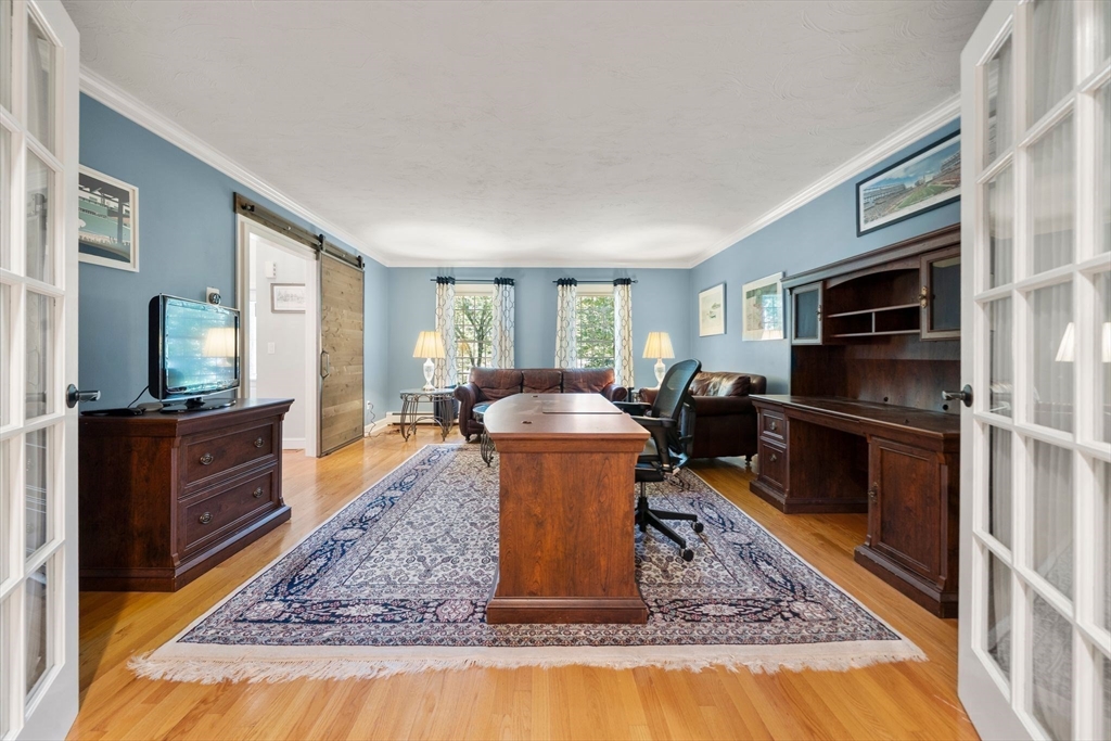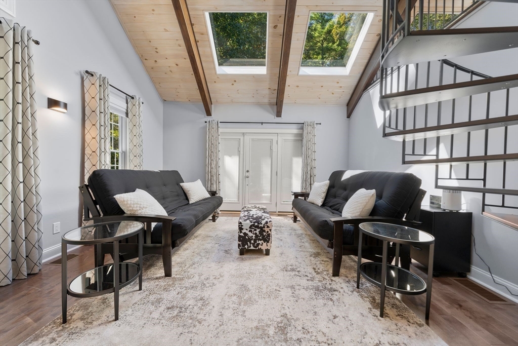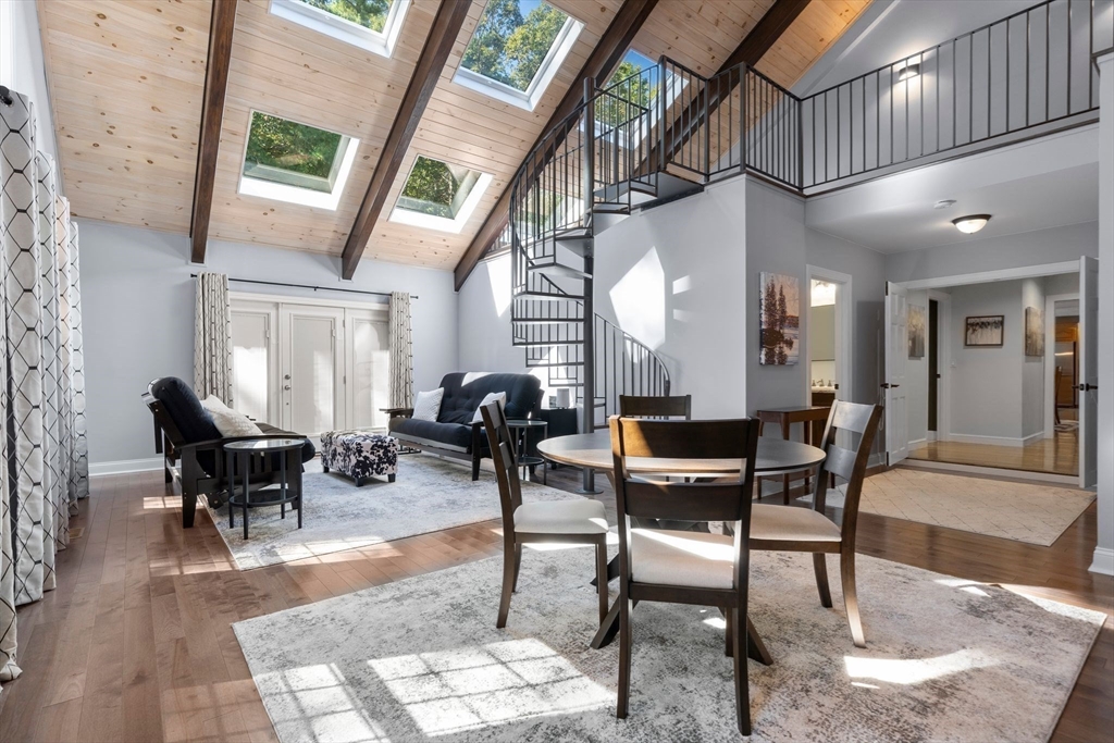 Welcome to 12 Dutton Park Drive — a modern retreat set on 3.5 acres of private, tree-lined land in one of Walpole’s most desirable neighborhoods. This stunning 5-bed, 5-bath home blends design, functionality, and comfort. The main level features a sun-filled open layout with a custom kitchen, high-end appliances, and spacious dining and living areas for effortless entertaining. A second great room with loft offers flexible living — ideal as a main-floor primary suite, au pair suite, or family room. Upstairs, the serene primary suite includes a spa-like bath and walk-in closet, with additional bedrooms for family or guests. The finished lower level adds bonus space for a gym, media room, or play area. Enjoy your expansive yard and deck surrounded by natural beauty, plus central air, an attached garage, and proximity to Walpole Center, schools, and major routes.