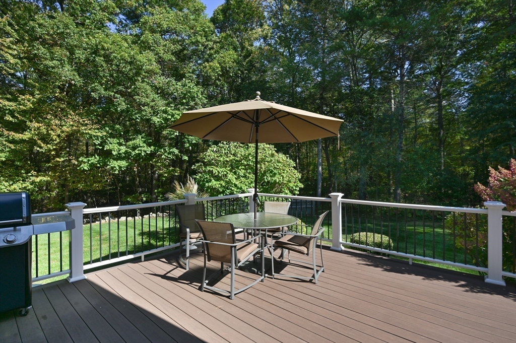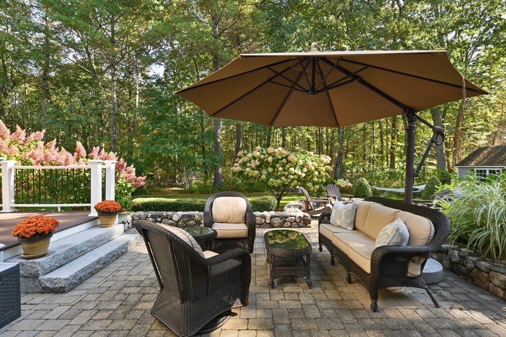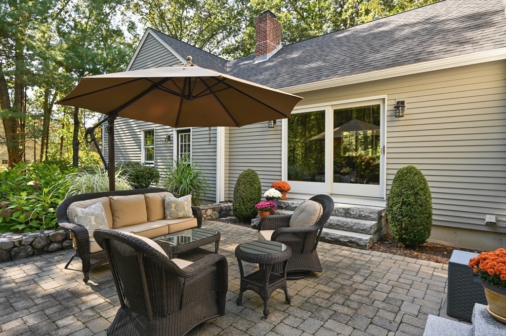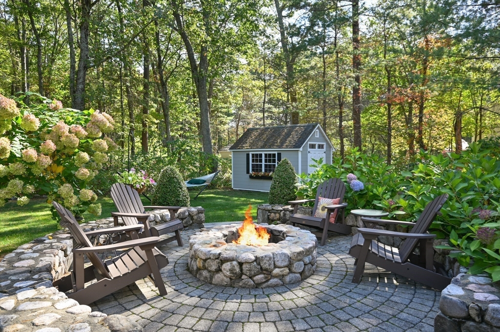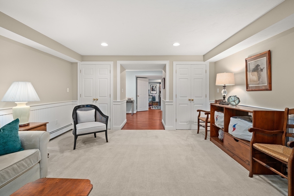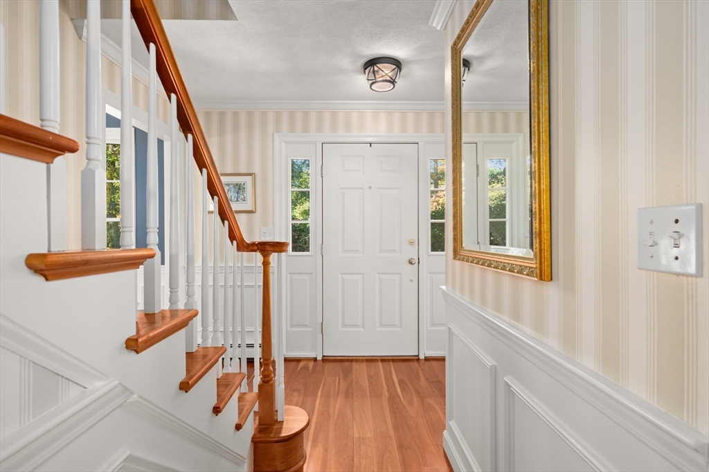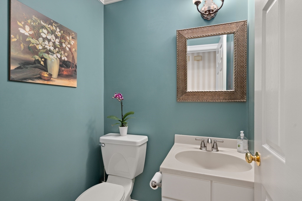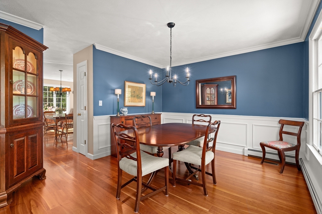 A rare offering in Castle Estates! This meticulously maintained center-entrance Colonial has been proudly cared for by its original owners. With over 3,400 sq. ft. of living space, this home offers 4 bedrooms plus a private au pair/guest bedroom and 3.5 baths. The sun-filled, oversize eat-in kitchen opens to a cathedral-ceiling family room with fireplace and views of the professionally landscaped private backyard. Formal dining room and living room with custom built-ins and 2nd fireplace. Cherry hardwood throughout first and second floors. Upstairs has 4 spacious bedrooms including a serene primary suite, a 2nd floor study and more of those beautiful cherry floors! The lower level adds versatility with a full bath, recreation room, and additional office. Timeless design, modern functionality, and exceptional care in one of North Reading’s most sought-after neighborhoods. Newer roof, boiler, HVAC and stainless appliances! A true gem!