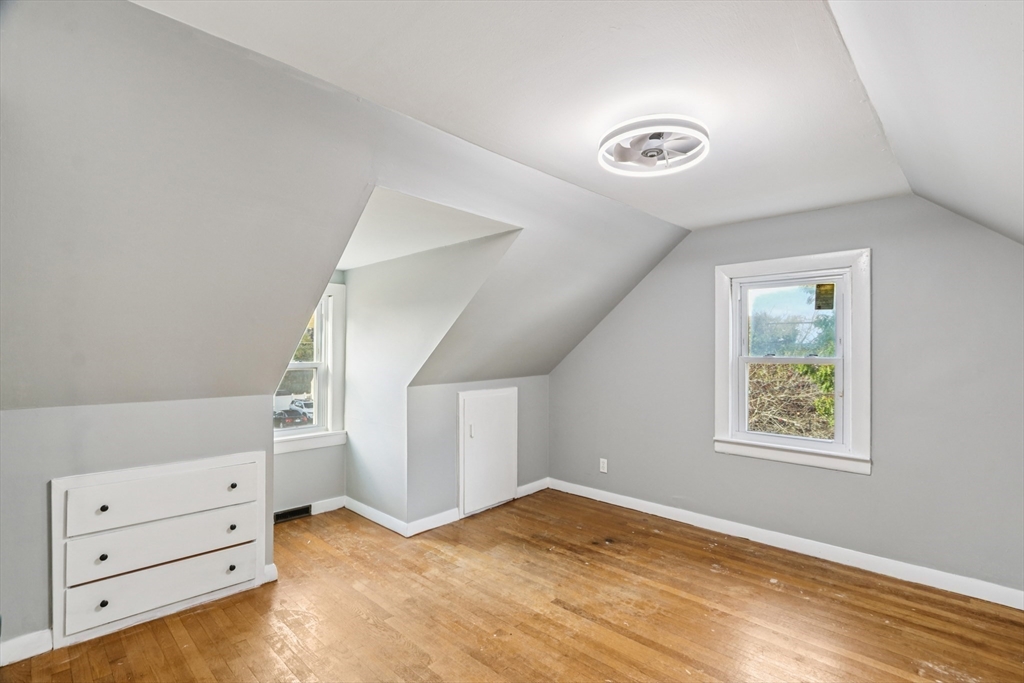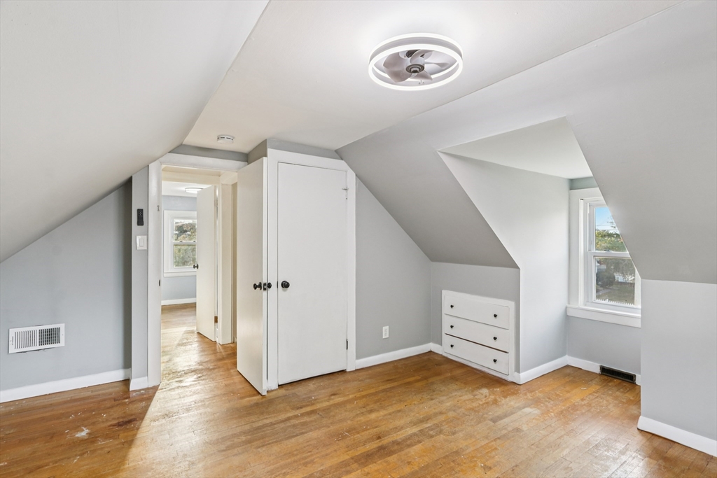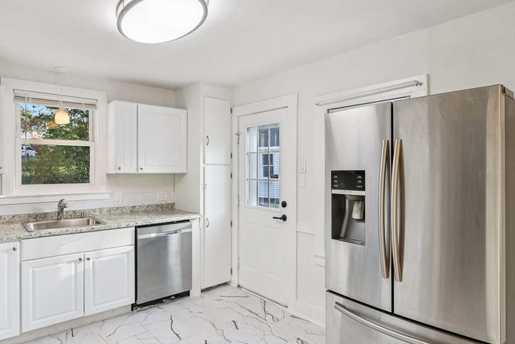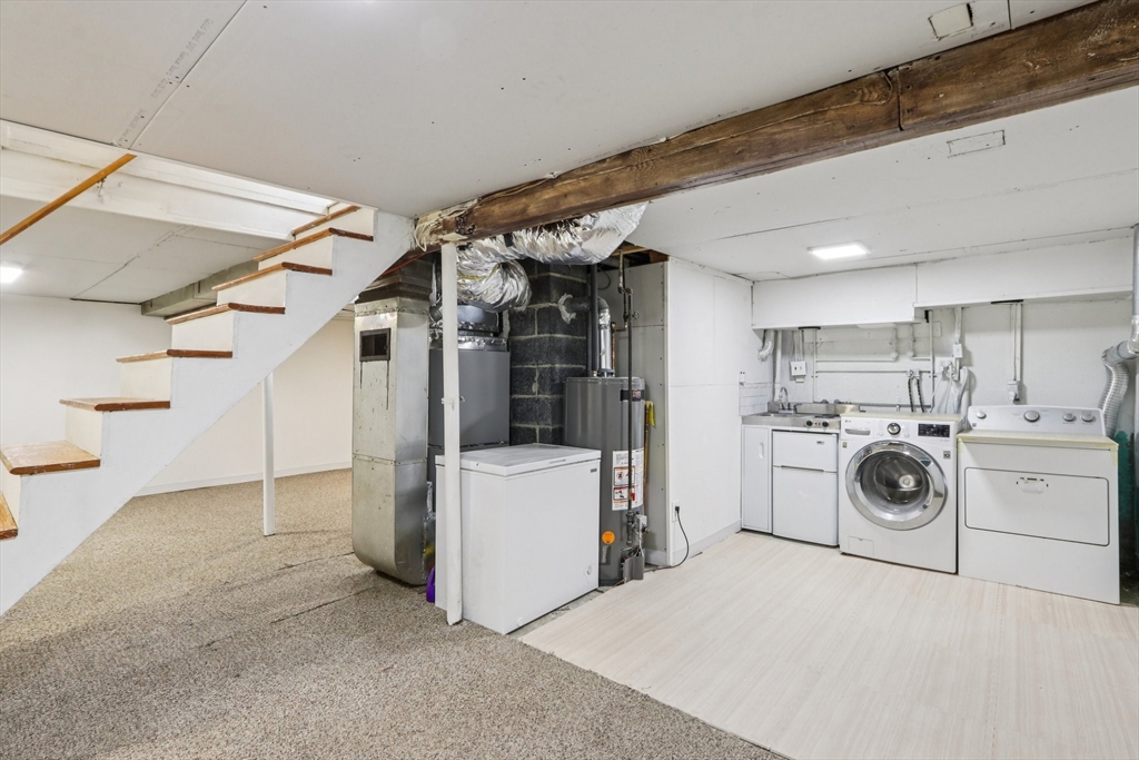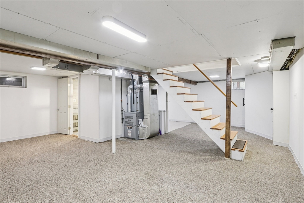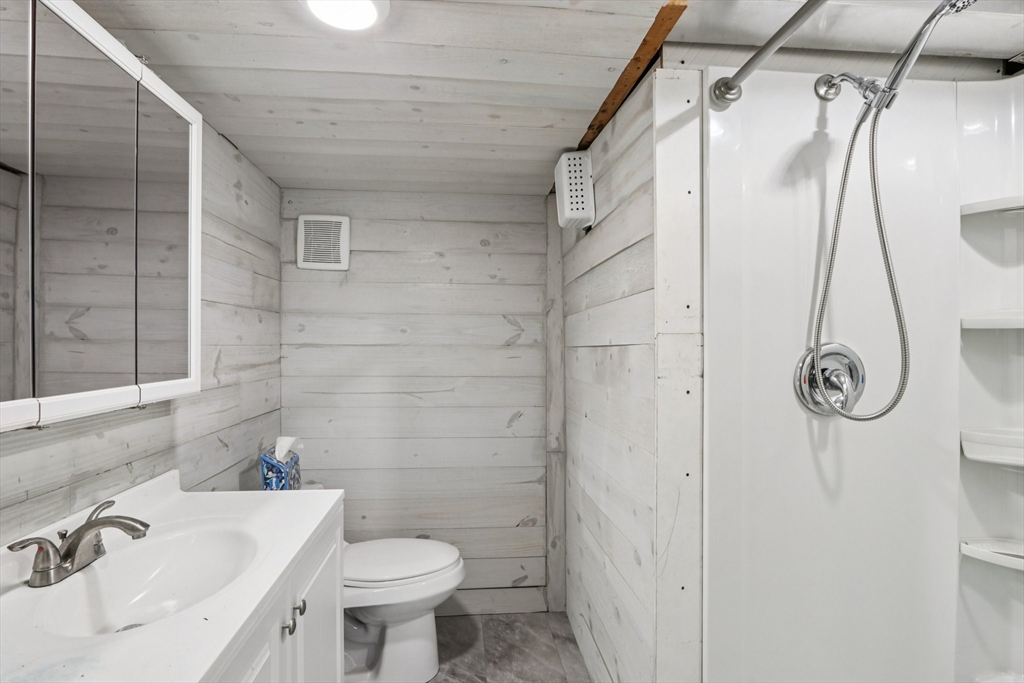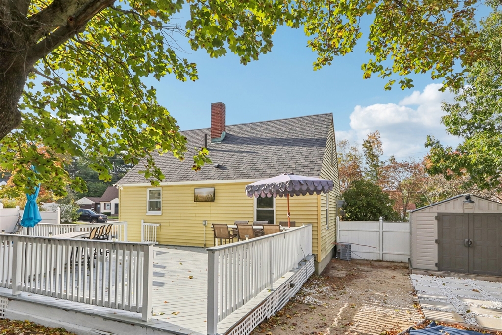 Look no further than this delightful 3 bedroom Cape nestled on an oversized corner lot in sought-after S. Lawrence! Step into the recently renovated kitchen featuring stainless steel appliances and matte finish tile flooring. The living & dining rooms boast hardwood floors, plenty of sunlight, creating a warm and inviting atmosphere. This house offers so much for so many potential buyers. The finished basement includes a newly added bathroom w/ oversized shower. Basement includes kitchenette and washer dryer unit making it ideal spot for an in-law guest suite or giant master. Plenty of privacy in backyard w/ expansive deck—ideal for relaxing or entertaining. Plenty of parking & storage. A large shed outfitted with electricity, cable, and lighting offers endless possibilities, whether it's a workshop, studio, or outdoor retreat man cave connected to an additional she shed for more storage and in back you’ll find a large shed and condenser for just installed central air con.
