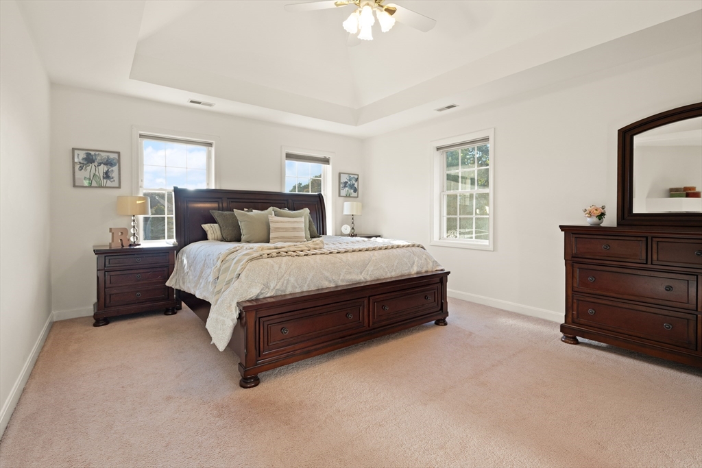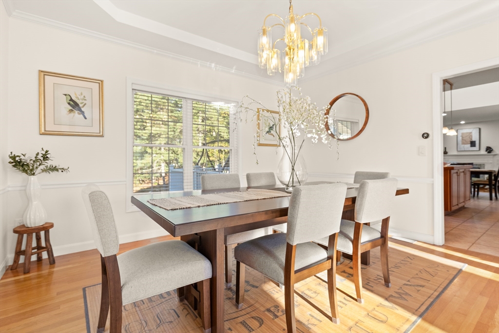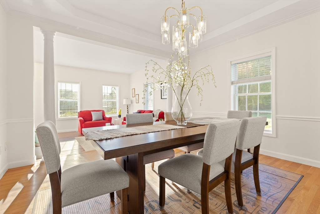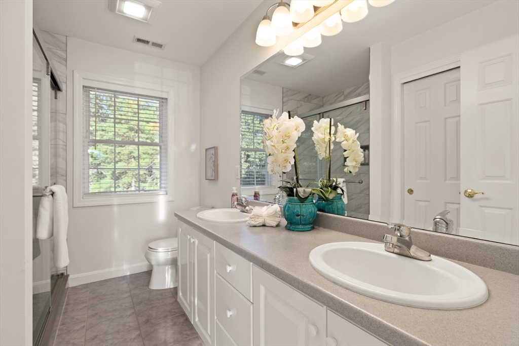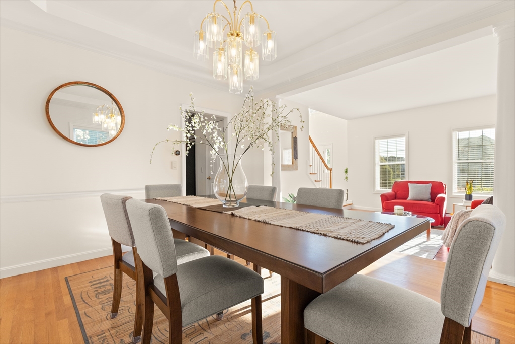 Elegant Living in Lakeside Meadows! This exceptional 4-bed, 3.5-bath Colonial offers timeless style & refined comfort in one of Westford’s premier neighborhoods. A dramatic two-story foyer welcomes you w/sunlight and soaring ceilings, leading to beautifully proportioned living spaces ideal for entertaining & everyday living. A 2nd staircase from family room to bonus room above garage. The expansive kitchen features rich wood cabinetry, center island, & generous workspace opening to a stunning family room w/fireplace and oversized windows framing tranquil views. Upstairs, the luxurious primary suite impresses w/9ft tray ceiling, spa-inspired bath, & spacious walk-in closet. The finished lower level provides flexible space for a home office, gym, or media area. Enjoy outdoor living on the composite deck & stone patio surrounded by landscaped grounds & conservation land. Sophisticated, serene, and impeccably maintained — Welcome to 3 Loon Way near walking trails & 5 minutes from Route 3.