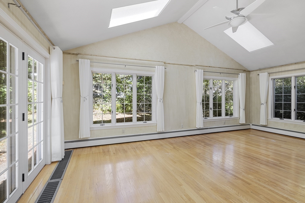 A grand home with a perfect mix of serenity and entertaining spaces. The main level has endless possibilities with its ability to provide cozy living areas and also an open concept with great flow. Fully equipped modern kitchen with tons of storage and island, Formal dining room with custom built ins, french doors to seperate or open up spaces, front to back fireplace between the massive family room and home office/reading room with floor to ceiling windows and skylights - perfect place to enjoy the ever changing seasons while cuddled up to the fireplace. The multiple french doors open to the secluded patio space surrounded by a beautiful wooded tree line conjoining the 2 spaces into a perfect summer oasis. Upstairs has 4 large bedrooms, a main bath and an en suite. The main bedroom has custom built ins, hardwood floors thru out, expansive lower level that seems to never end, wet bar, pool table, 3/4 bath storage closets and small bonus room, This is a must see home!