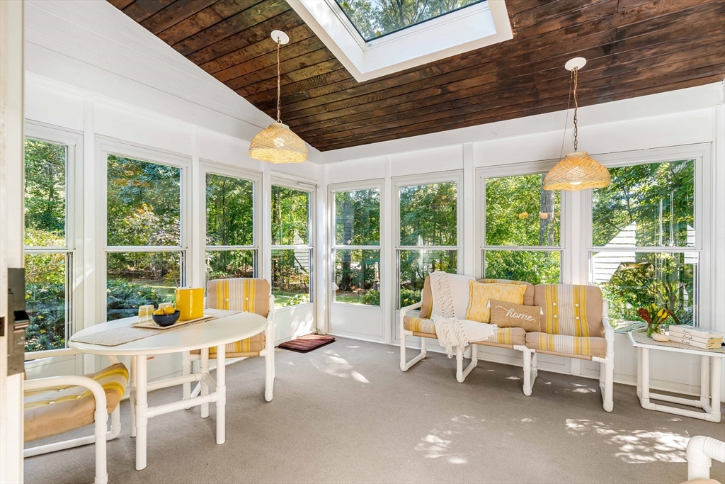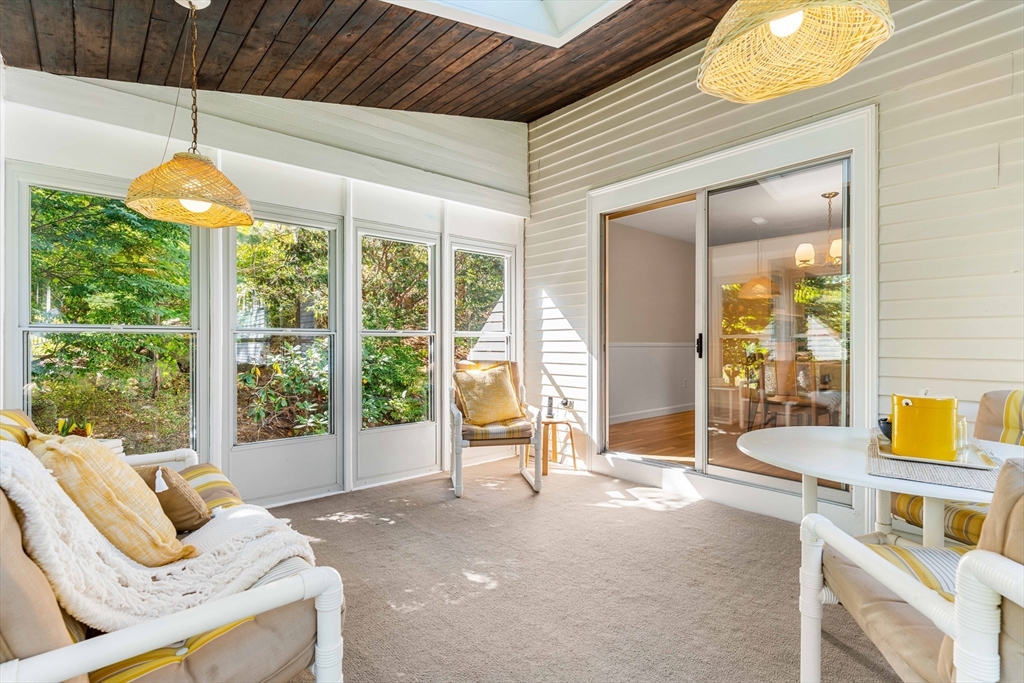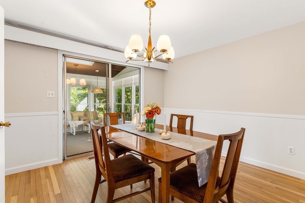 Beautifully updated and maintained by the original owner, this 4 bedroom, 2.5 bath home is ideally located in one of Andovers most desirable neighborhoods...close to town center, highways, schools and all things Andover! The minute you enter you will know that you are home! The open concept, light filled layout features a large living room with a huge picture window, gas fireplace & custom built-ins, a dining room and 3 season sun room overlooking the private, landscaped yard. Steps away is the eat-in kitchen with access to the backyard, making this the perfect space for entertaining family and friends. Upstairs you will find a primary with 3/4 bath, 3 additional bedrooms- all with hardwood, and a full bath. The lower level boasts a walk-out family room with wood fireplace, half bath and laundry room with access to the 2 car garage oversized garage. Central air, newer roof and heating systems, mature plantings, privacy and so much more make this a home you don't want to miss!