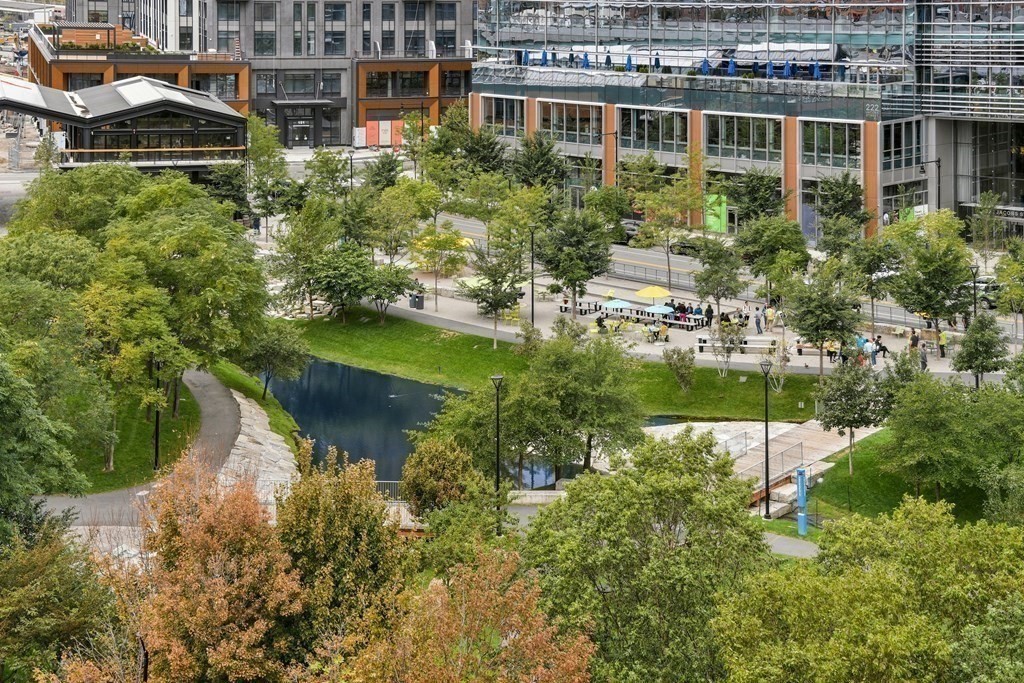 Experience modern top flr loft-style living in this stunning oversized 1 BR+den/office, 1.5 BA overlooking the lush landscaped parks of Cambridge Crossing. Bright, contemporary duplex w/soaring ceilings, flr-to-ceiling windows w/automated shades, sleek bamboo flrs & open layout ideal for entertaining/remote work. Highlights: CA Closet Wall System w/Murphy Bed, Bar w/Lighted Glass Display, ELFA entry closet + pantry & LED HD projector w/100" retractable screen. Chef's kitchen: Aiko cabinetry w/metal backsplash, Bosch appl, crystal pendants, dual H2O filtration. Serene upper BR suite showcases full BA, ELFA closets, new W/D & Home Office w/Integrated desk, cabinetry, lighting. Smart HVAC + fans keep you comfortable year round. Full-size deeded garage prkg w/ Level II EV charging. C/A, Elevator + 24/7 Concierge. Steps to T (Green/Orange/Red), Kendall Sq, MGH, restaurants, Boston Harbor/Navy Yard & Charles River. Pet-friendly, prof managed bldg. surrounded by green spaces + walking paths.