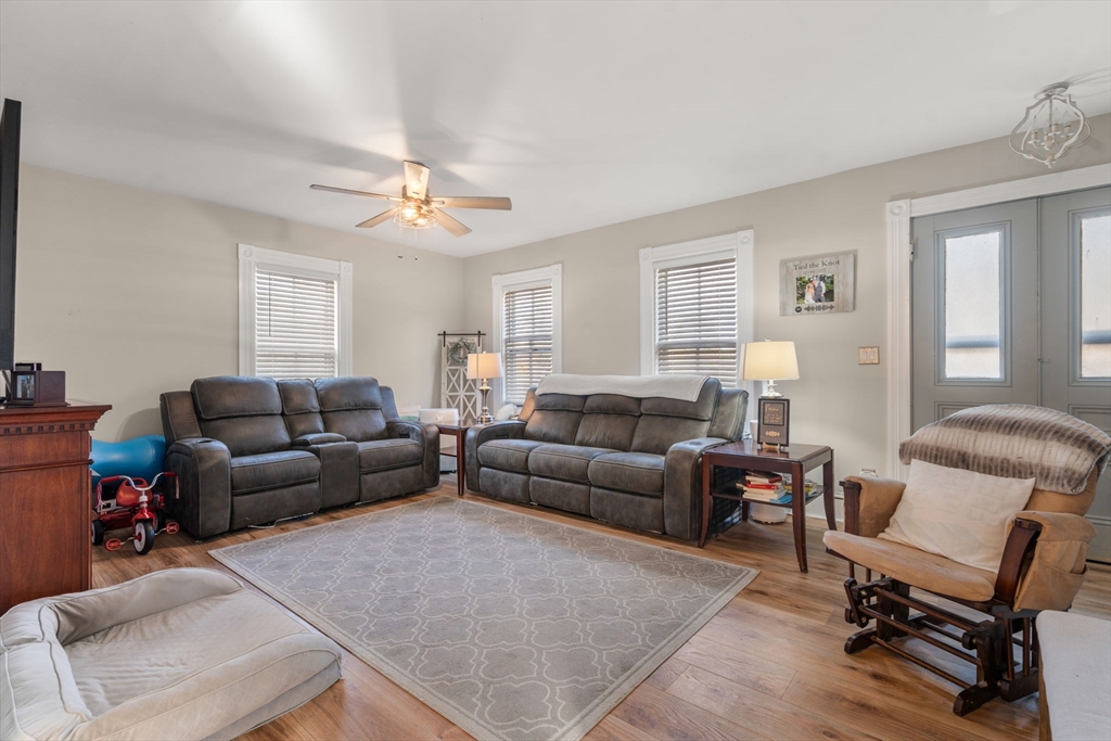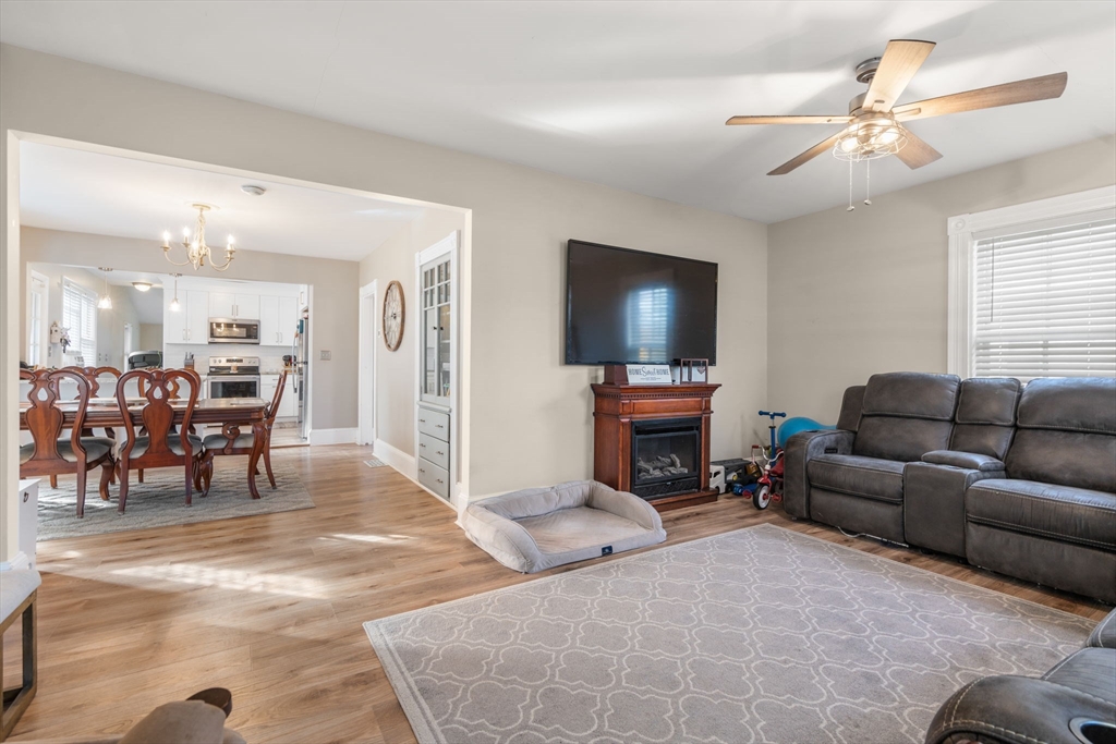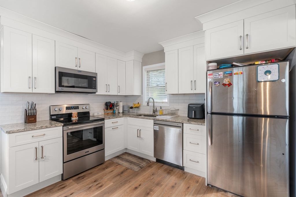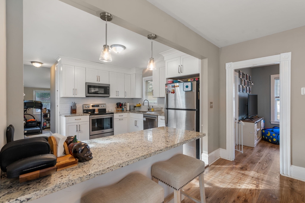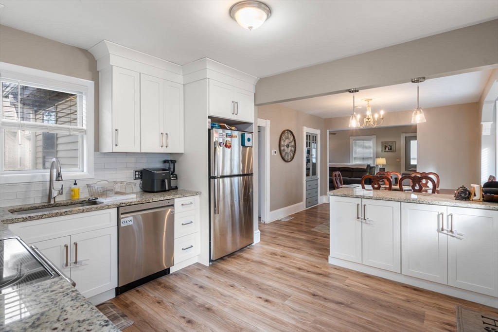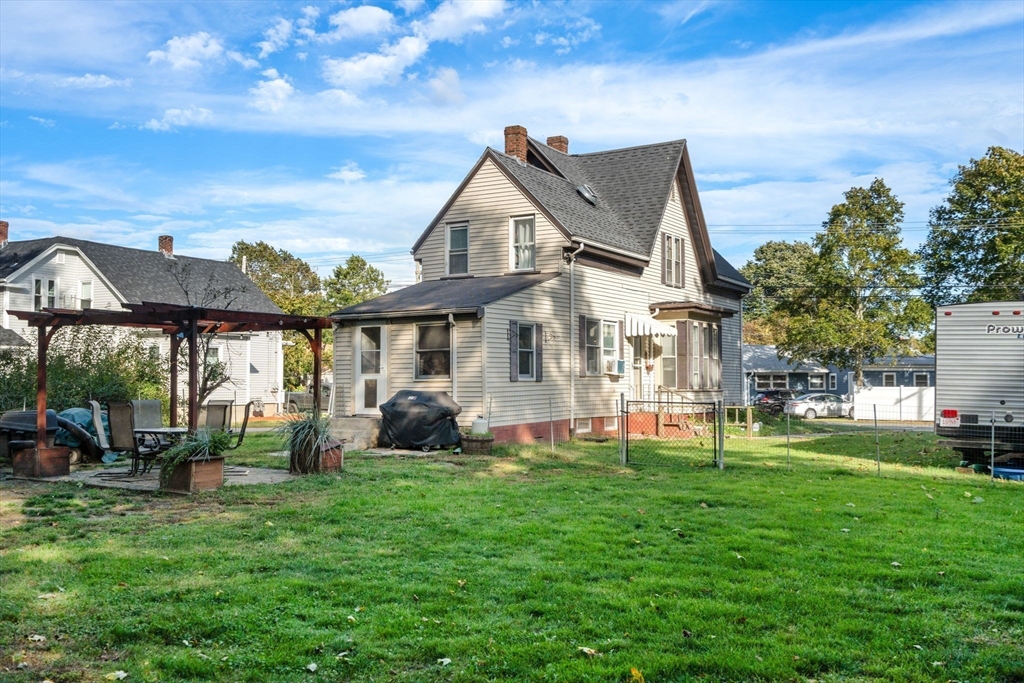 Colonial offering 3 bedrooms and 2 full bathrooms. New kitchen with granite, stainless steel appliances and new flooring all throughout. Open floor plan with updated lighting. Hot water heater and furnace replaced in 2023. Fenced backyard with pergola and a fire pit for entertaining. Easy highway access, five minutes from the commuter rail or a five-minute walk to do downtown.