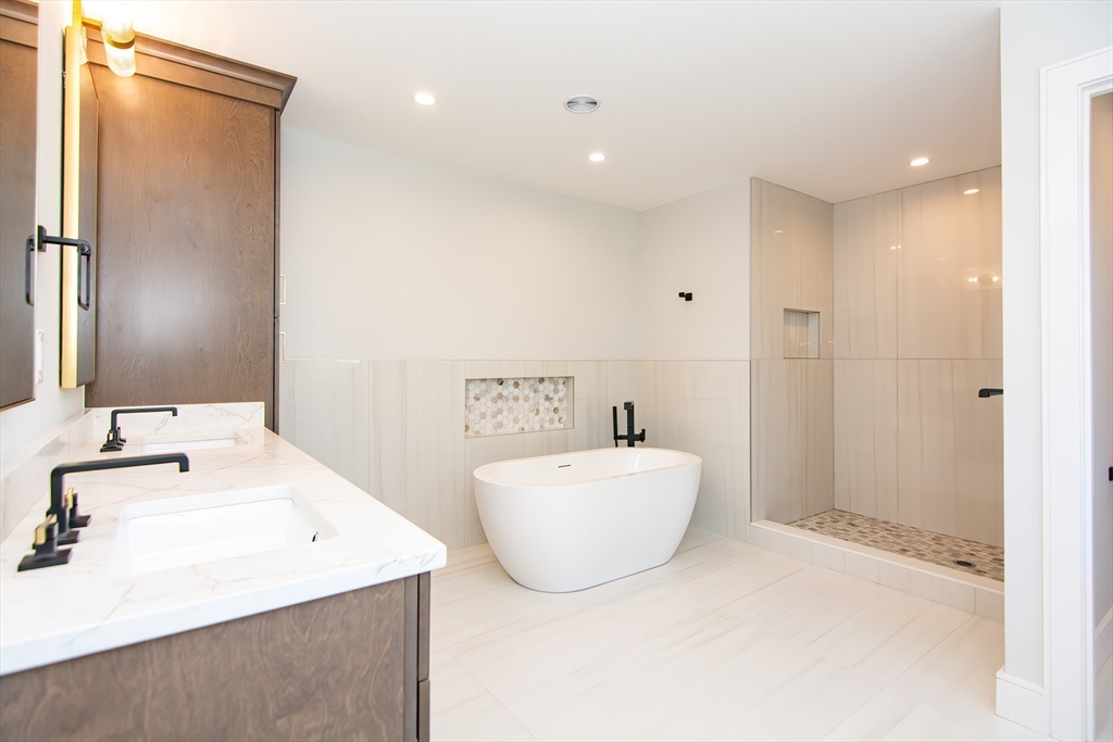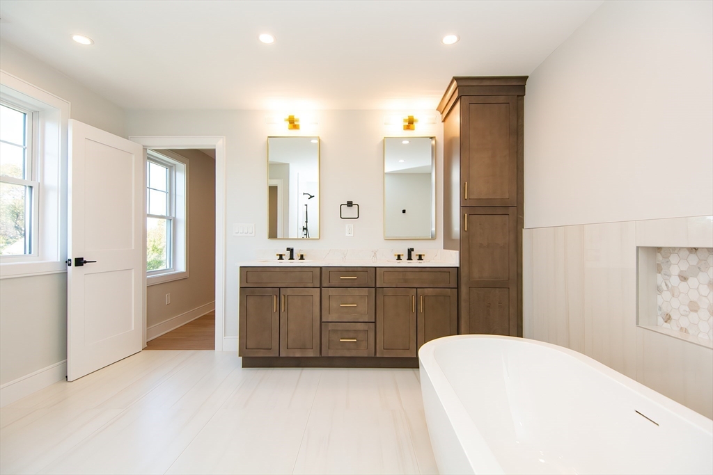 This exceptional 4-bedroom, 4.5-bath residence redefines new construction with its refined craftsmanship, designer finishes, & thoughtful floor plan. The main level includes a color-drenched office/sitting room, open concept design with chef’s kitchen, dining area and family room w cathedral ceiling & gas fireplace, and a slider to a deck overlooking a fenced yard. Half bath is just off the kitchen, plus mudroom & access to an oversized 2 car garage. 4 bedrooms upstairs, including a guest suite with full bath, & primary suite with spa bath & huge walk-in closet/dressing room. A full bath with tub and 2 bright bedrooms with enormous double closets complete this level. The lower level surprises with a large flex space, additional room for a potential 5th bedroom, gym or office, full bath, and separate entry with private sunken patio. Open House on Saturday, 10/18 from 12:30-2:00 PM.