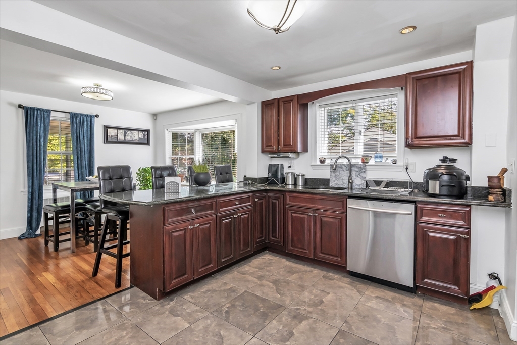 Welcome home to this charming Cape nestled in a sought-after neighborhood where comfort and convenience meet. This inviting home offers a warm, welcoming atmosphere perfect for making memories. The spacious fireplaced living room is ideal for cozy nights or family gatherings, while the bright kitchen opens to a dining area that makes every meal special. Kitchen boasts granite countertops, ceramic floors and stainless steel appliances. With well-sized bedrooms and plenty of natural light throughout, the home feels both comfortable and cheerful. Step outside to a lovely yard—perfect for summer barbecues, or relaxing weekends. Located near parks, schools, shopping, and restaurants, this home combines small-town charm with everyday convenience. Whether you’re starting out or looking for your forever home, this delightful Cape offers a perfect blend of warmth, community, and classic New England style.