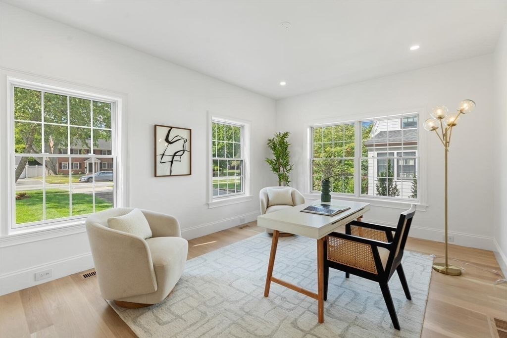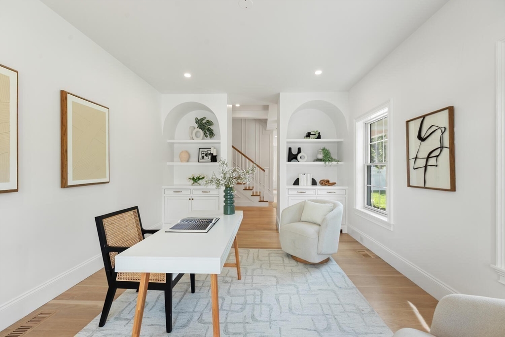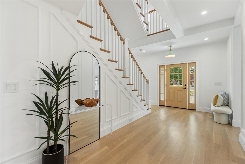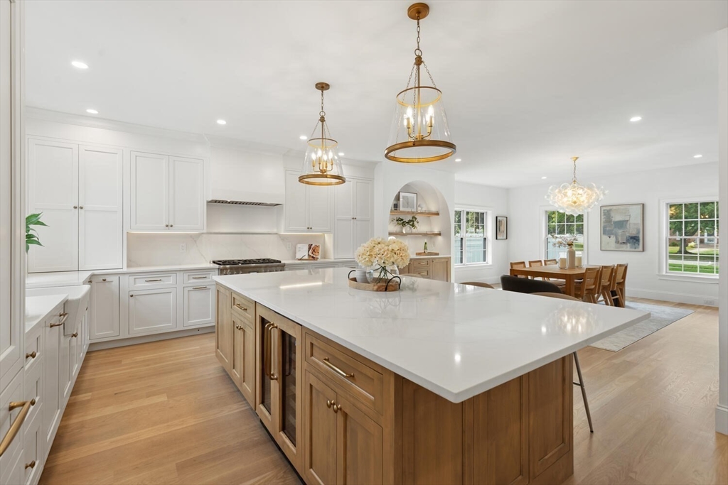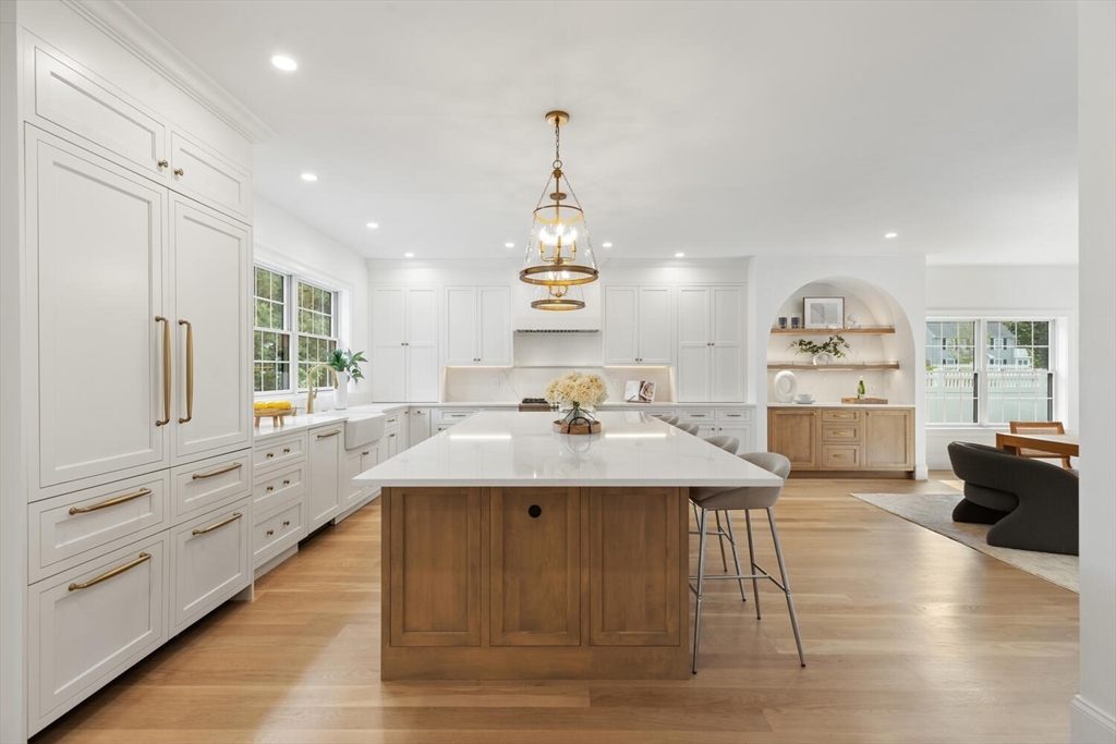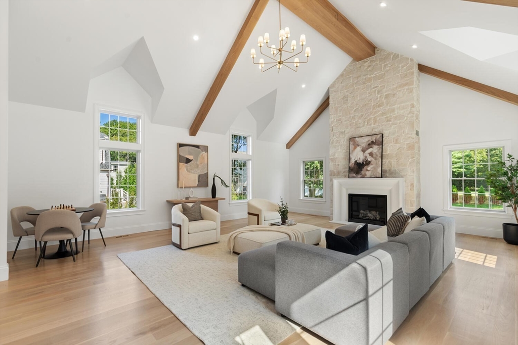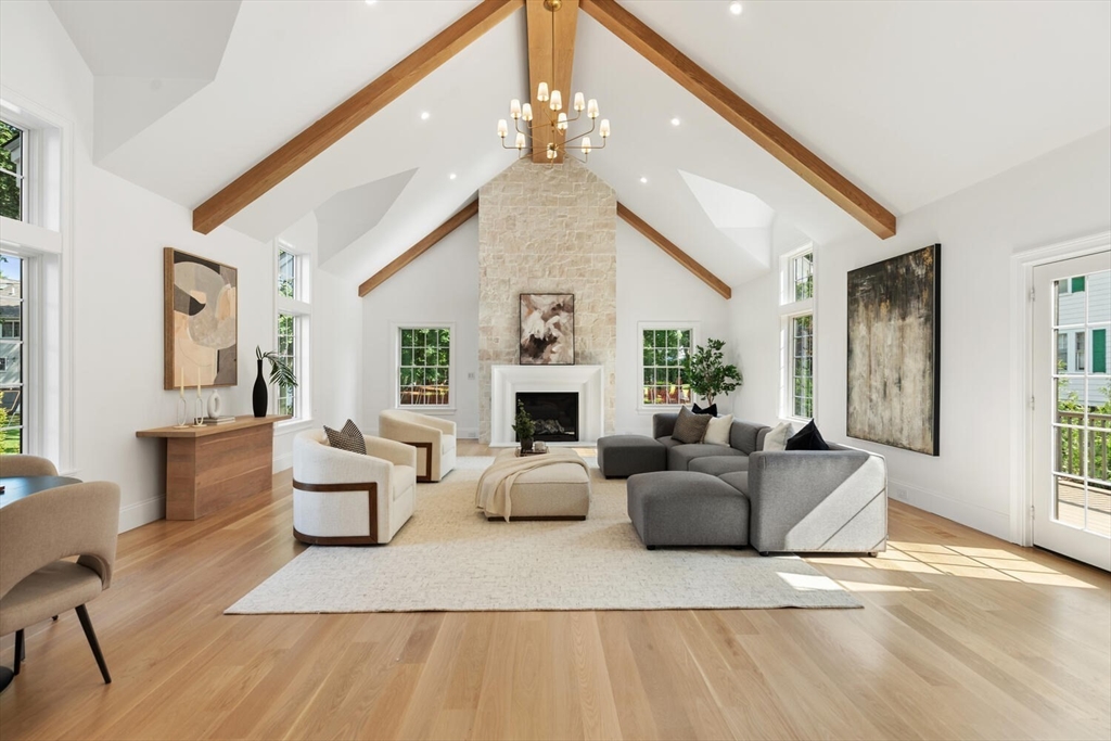 An extremely rare new construction in the Flats, this stunning 6BD/4.5BA home is a ground-up rebuild blending modern luxury with timeless warmth in one of Winchester’s most coveted neighborhoods. Designed for elevated living, it features a chef’s kitchen with quartz counters, custom cabinetry, a large island, and built-in bar, opening to a sunlit dining area ideal for both casual meals and elegant entertaining. The soaring family room stuns with cathedral ceilings, exposed beams, and a floor-to-ceiling stone fireplace—perfect for cozy evenings or lively gatherings. The serene primary suite offers a wood-accented ceiling, sitting area, and spa bath with dual vanities and a walk-in shower. Wide-plank oak floors, curated finishes, and thoughtful design details enrich every corner of the home. Located just moments from Winchester Center, commuter rail, top-rated schools, and scenic parks, this is a once-in-a-generation opportunity to own a truly exceptional home in the heart of the Flats.