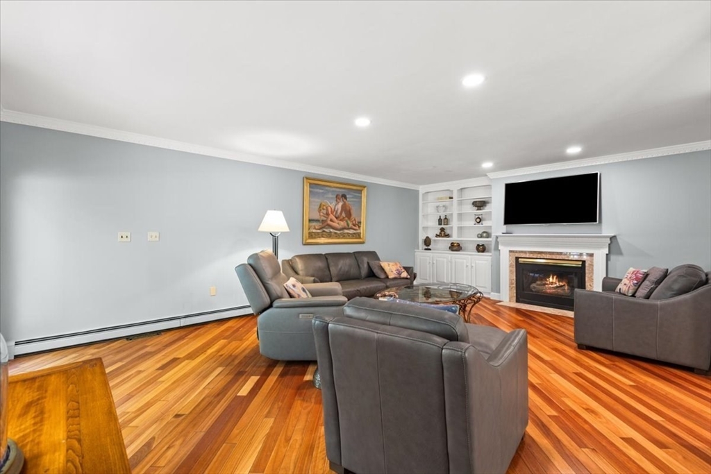 Welcome to luxury living at its finest in this beautifully 3 level 3 bed, 3.5 bath townhouse. This move-in ready home offers the perfect blend of style and comfort. Step through your private entrance into an inviting open-concept main floor showcasing hardwood floors throughout and a spacious living room with a cozy gas fireplace and access to a private deck perfect for entertaining or relaxing. The kitchen is a true standout, complete with stainless steel appliances, quartz countertops, a large kitchen island with built-in microwave, beverage cooler, and dining area. Each bedroom is a private retreat featuring en-suite bathrooms and walk-in closets, offering ample space and privacy. The primary suite is a show stopper with a luxurious bathroom boasting heated tile floors, double vanity sinks, a bidet, and a walk-in closet. The finished lower features a large family and the third bedroom with its own separate entrance perfect for extended family, guests, or a private home office setup.